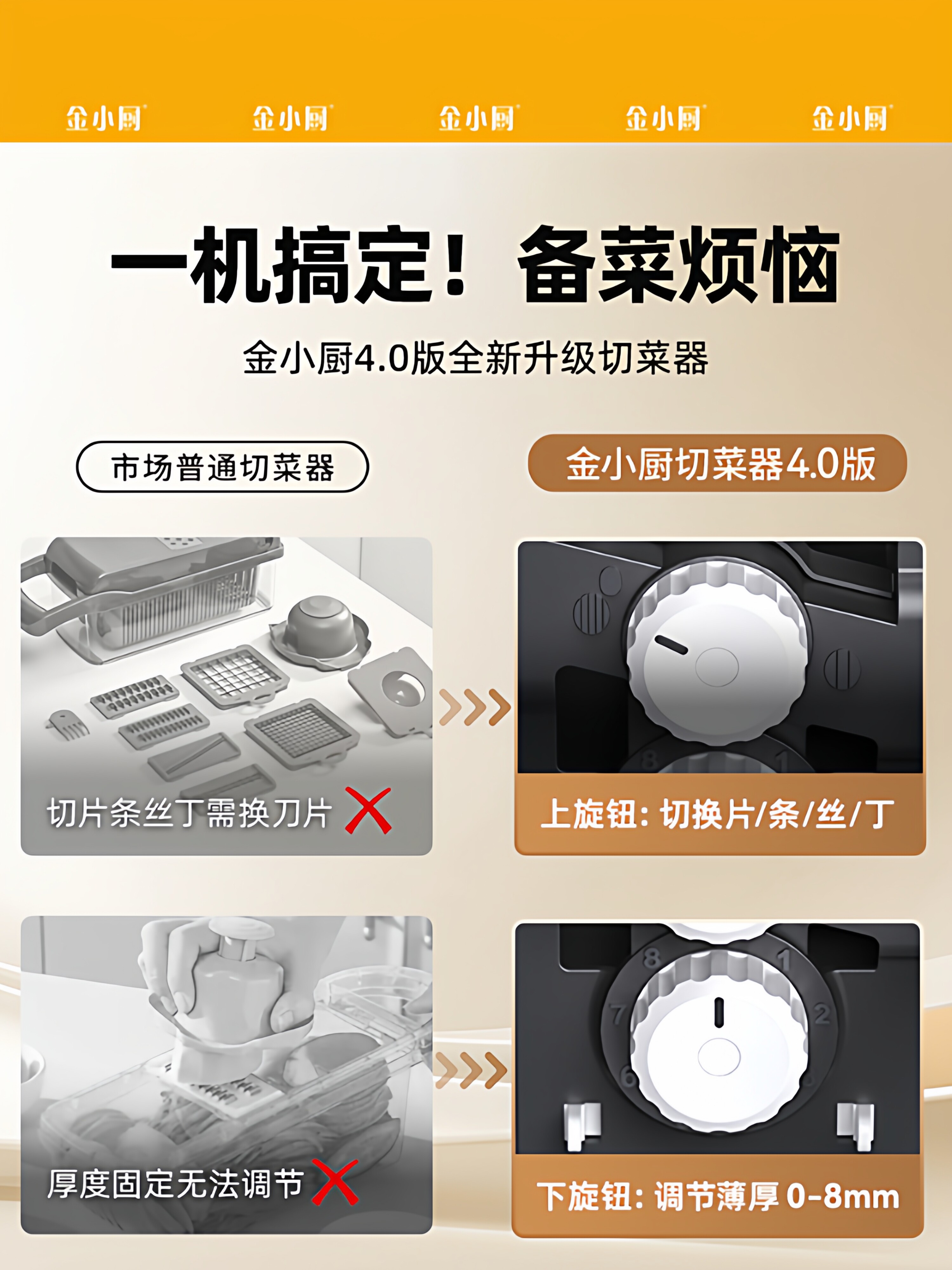 金小厨四代切菜器多功能厨房家用切土豆切丝切片切丁切条切菜神器