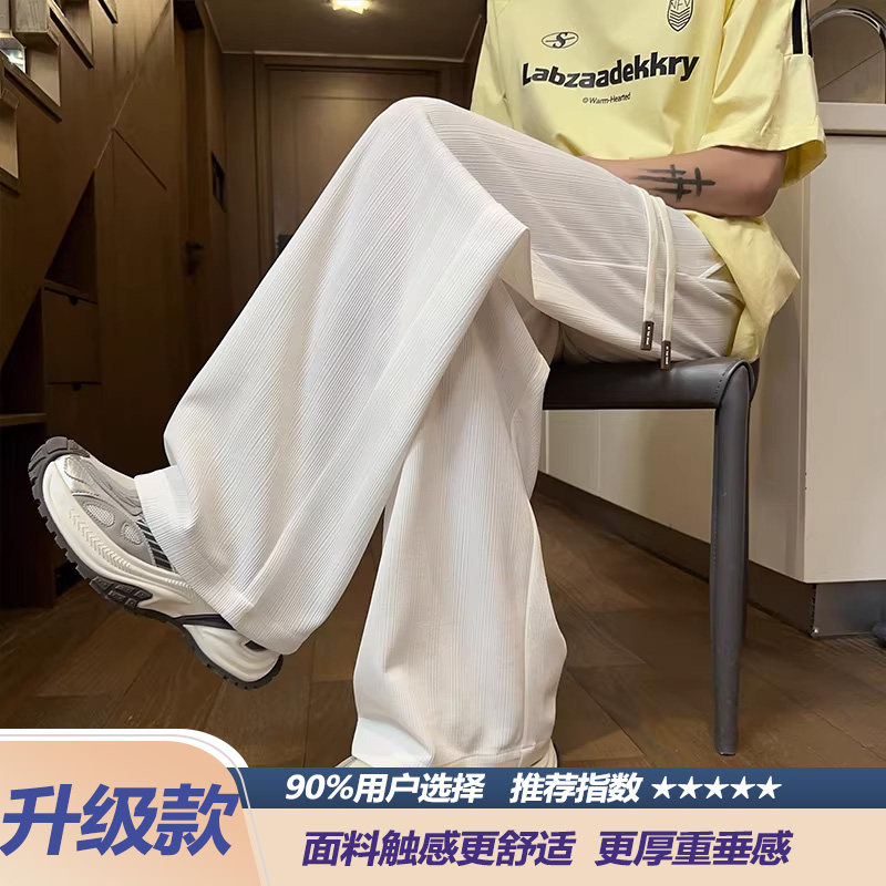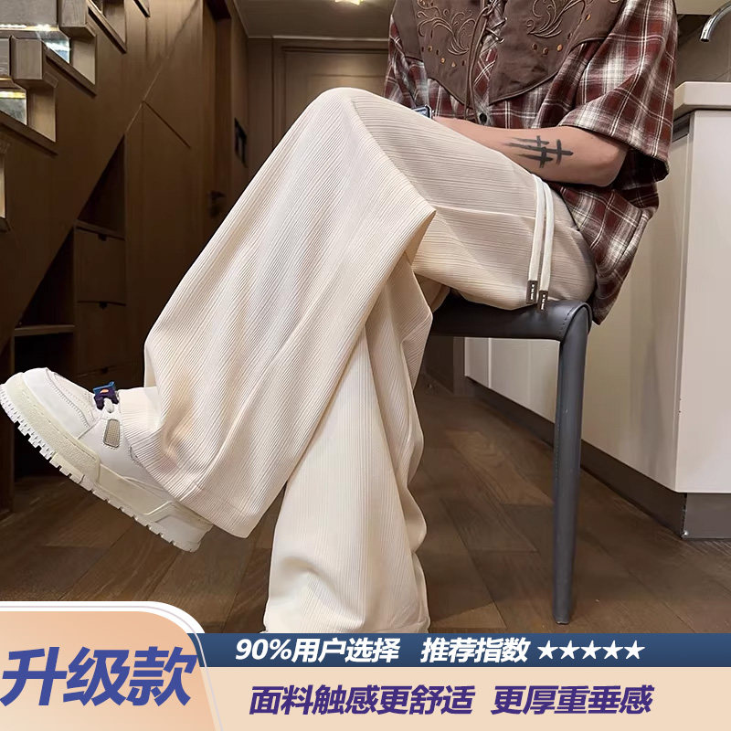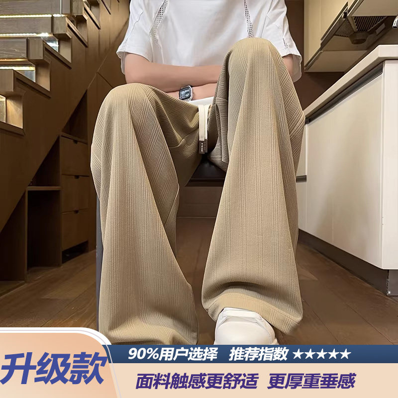 卡其色垂感直筒休闲裤子男款2026夏季薄款潮牌冰丝裤宽松阔腿长裤