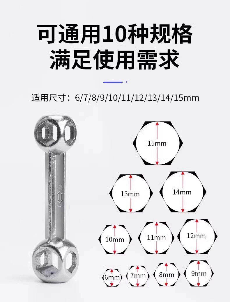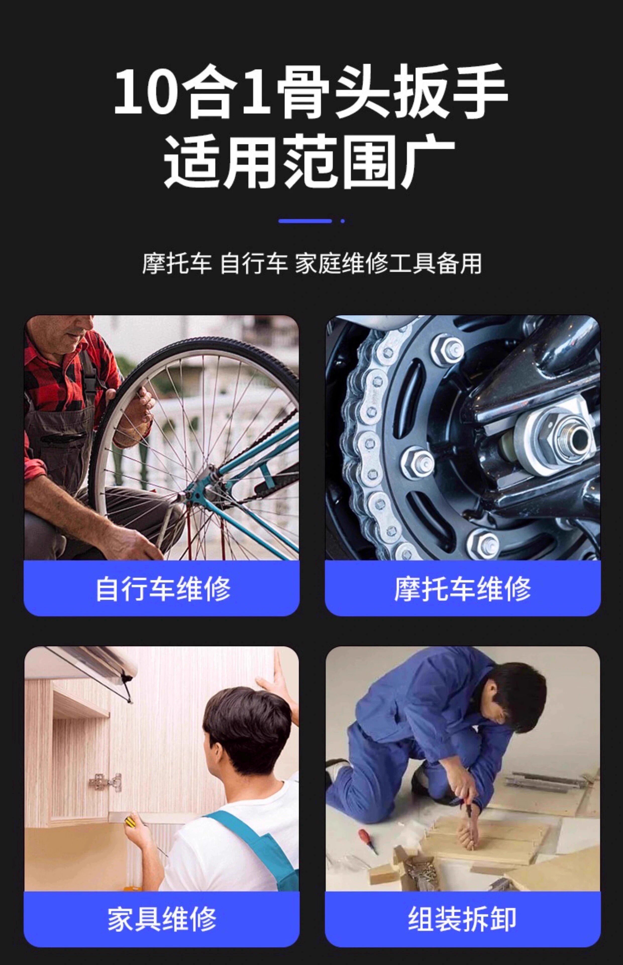 多功能骨头扳手内六角螺丝工具便携十合一自行车内六方套筒小扳手