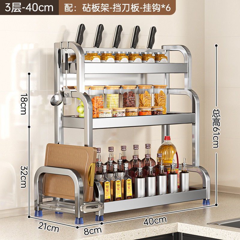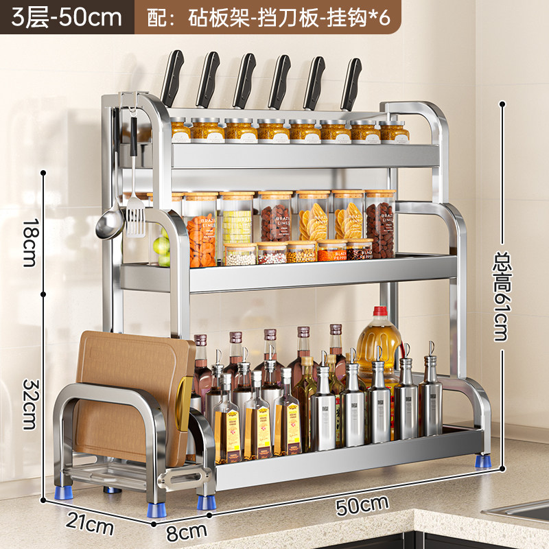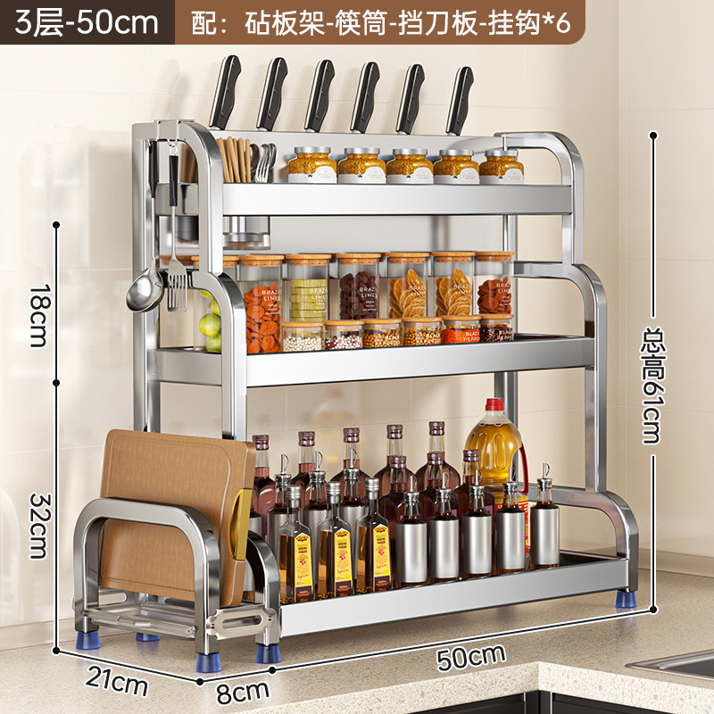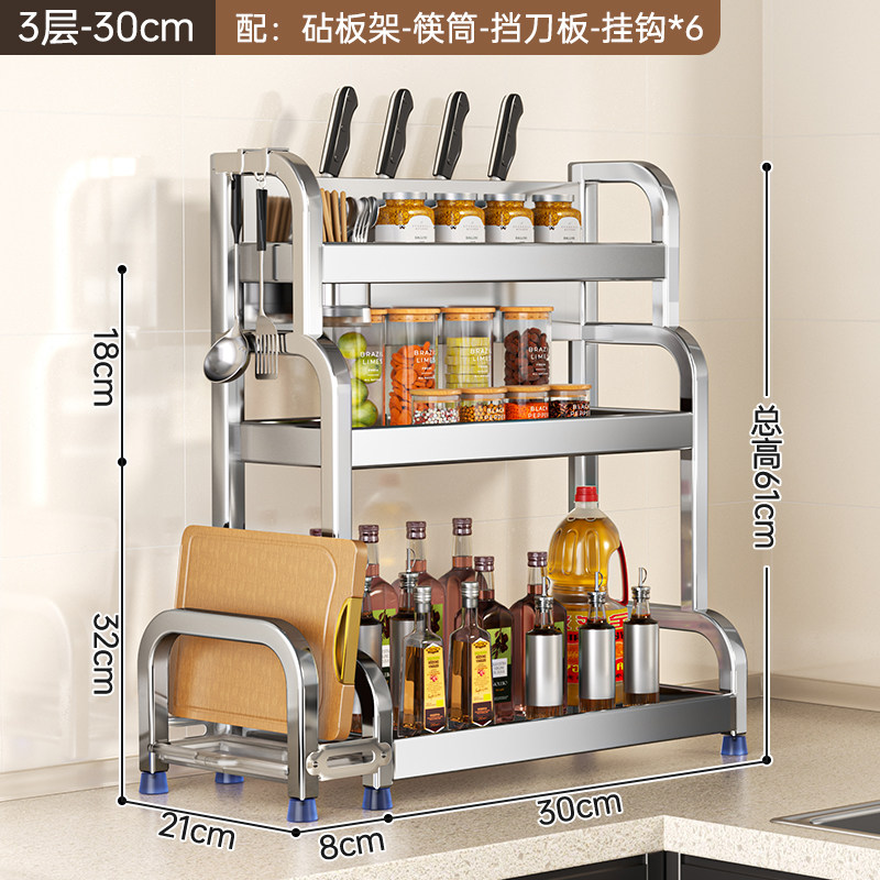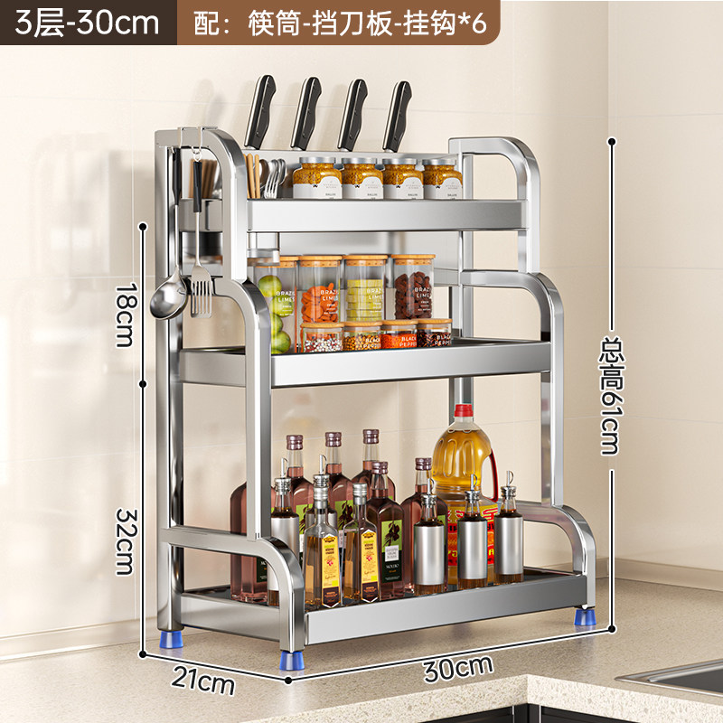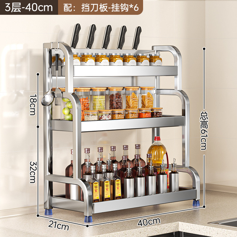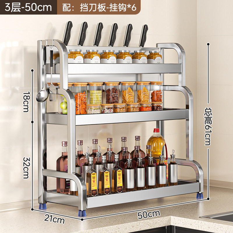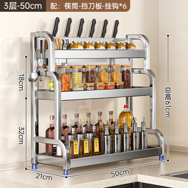不锈钢置物架厨房多功能调料品收纳架家用灶台调味品盐调味料架子