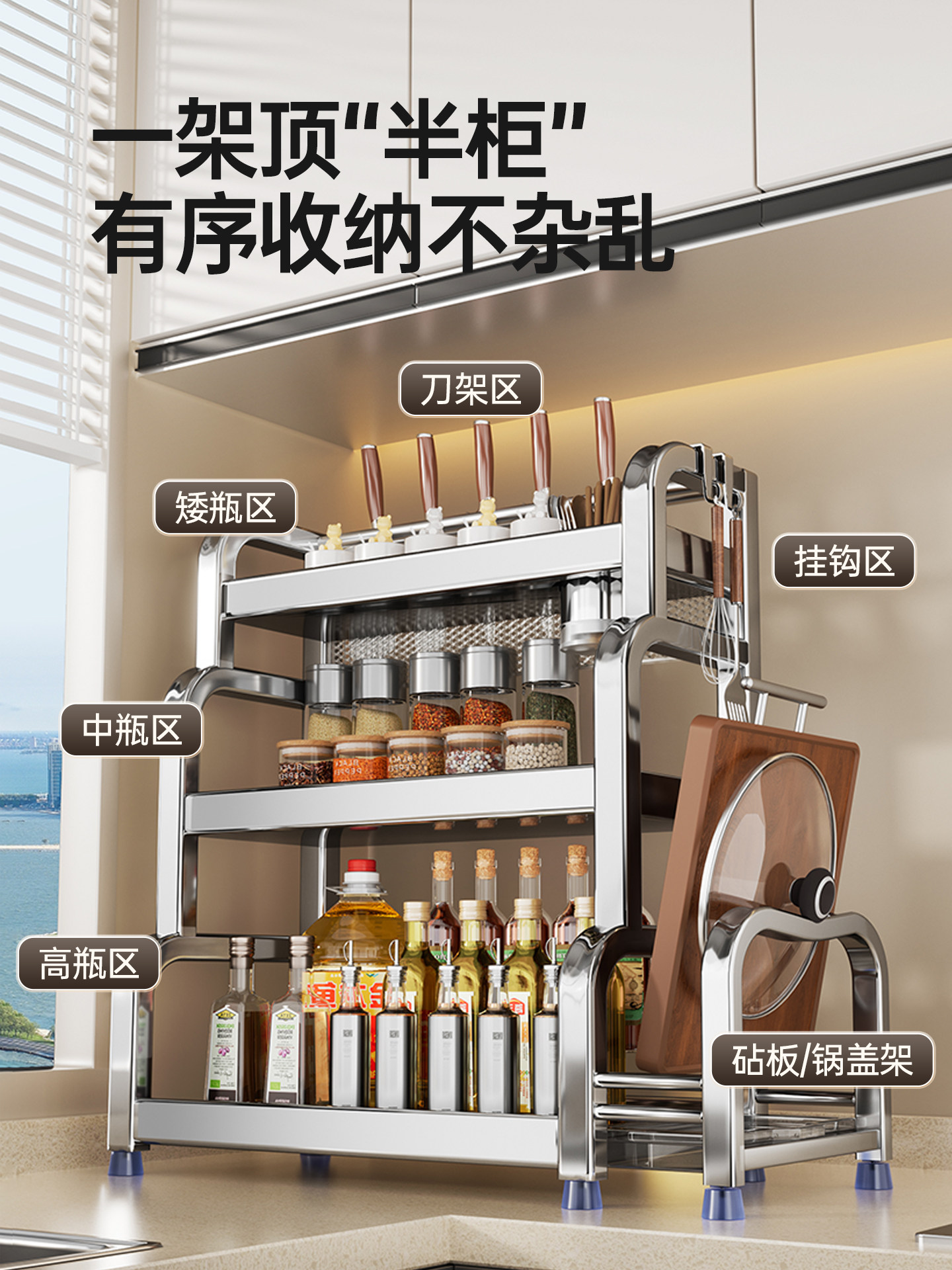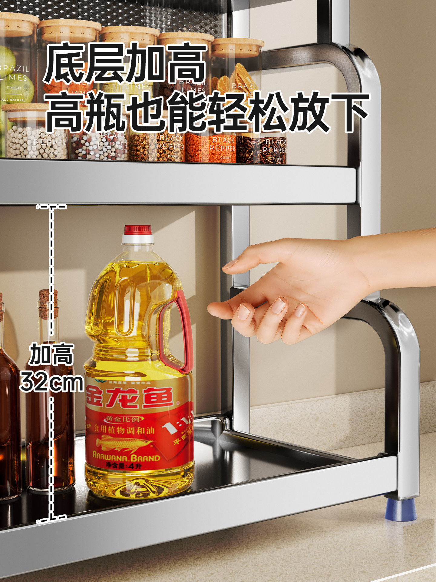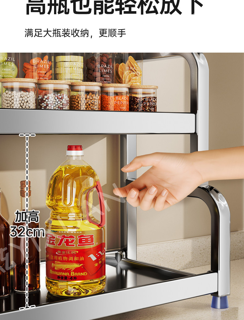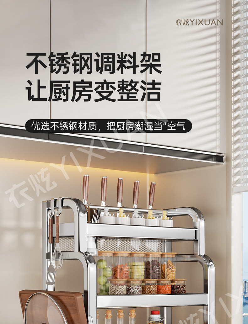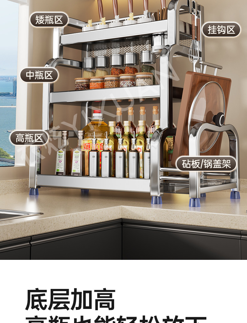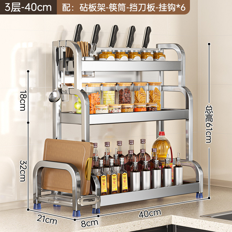 不锈钢置物架厨房多功能调料品收纳架家用灶台调味品盐调味料架子