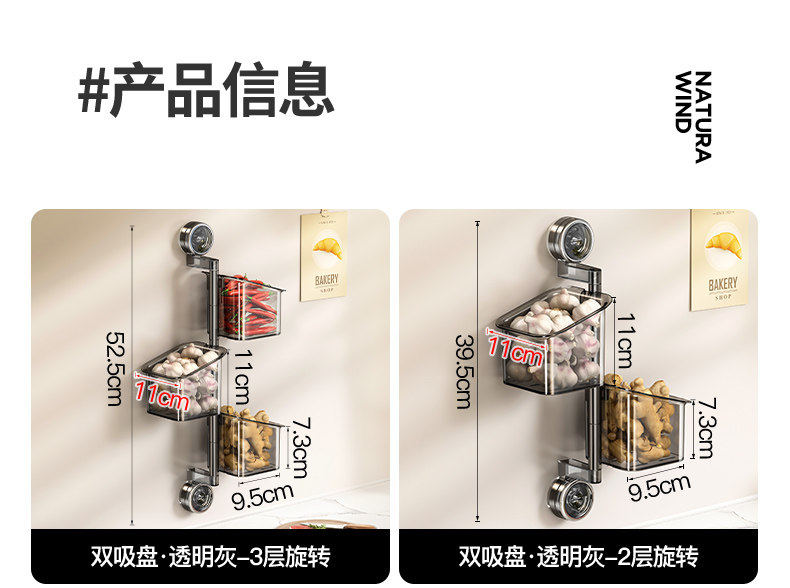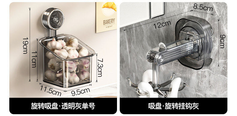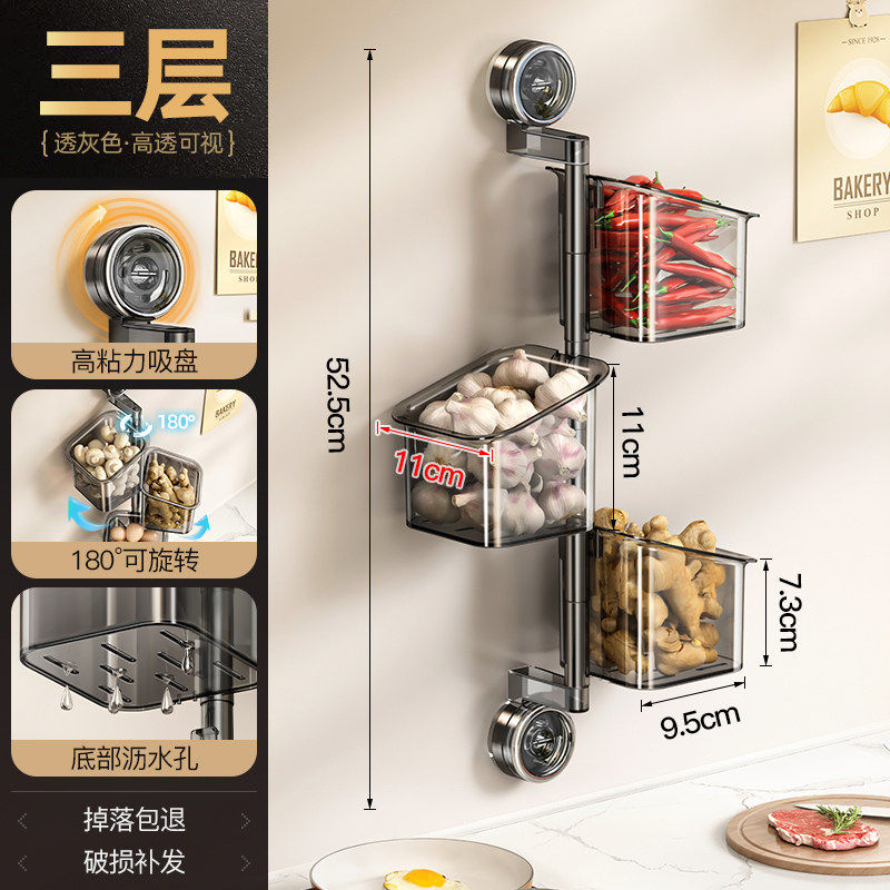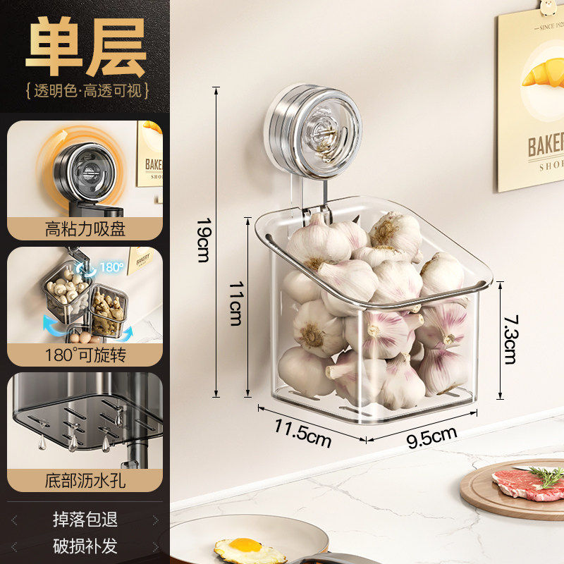 HomeProducts德国厨房葱姜蒜收纳盒免打孔吸盘置物架子壁挂式生姜大蒜收纳神器