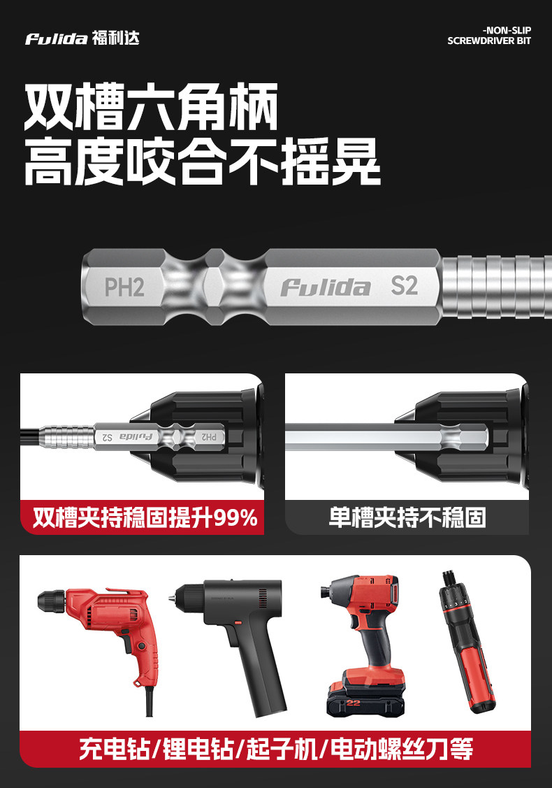 批头十字强磁防滑高硬度电动螺丝刀手电钻内六角钨钢长起子机套装