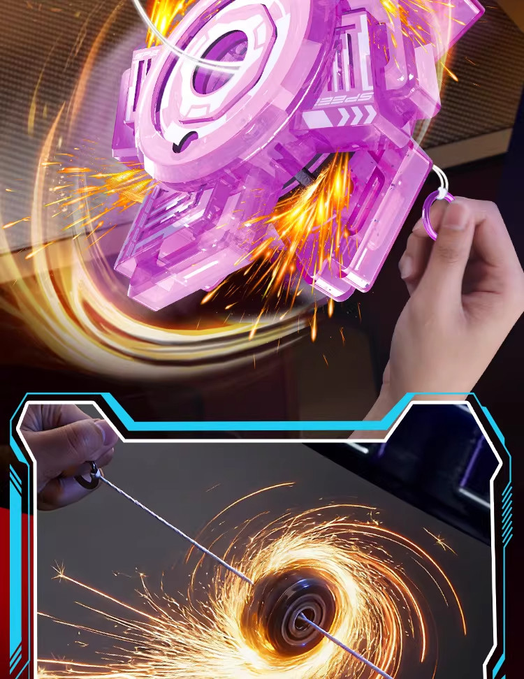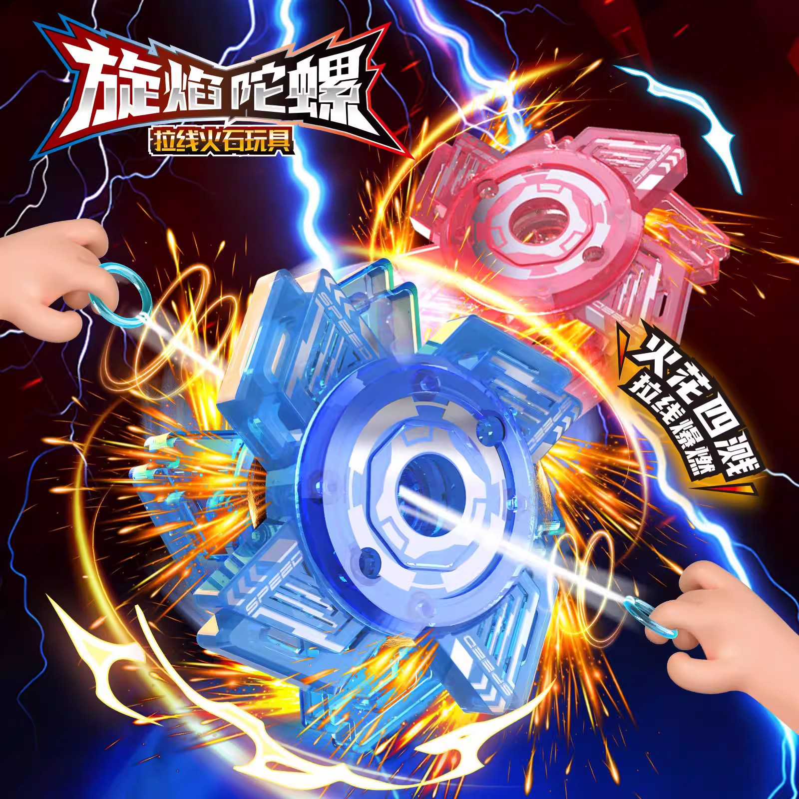 拉线火花陀螺炫酷爆旋带闪电玩具00后童年回忆新年寒假儿童小玩意