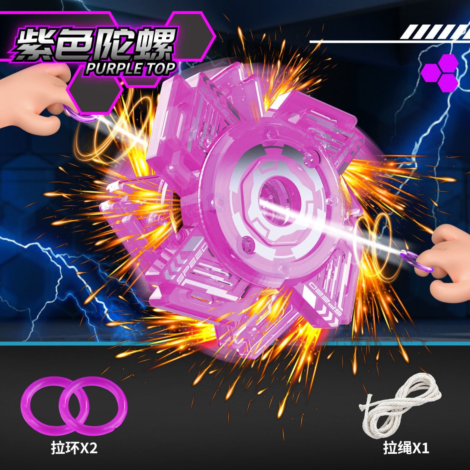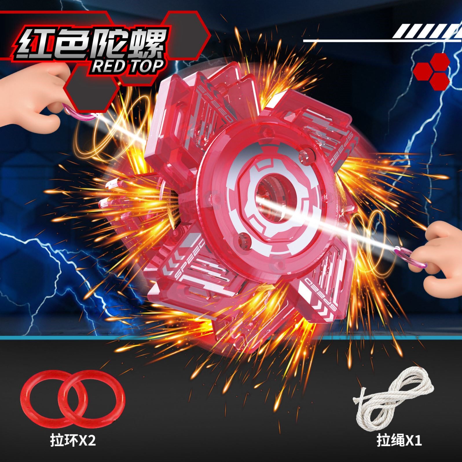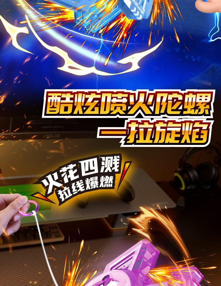 拉线火花陀螺炫酷爆旋带闪电玩具00后童年回忆新年寒假儿童小玩意