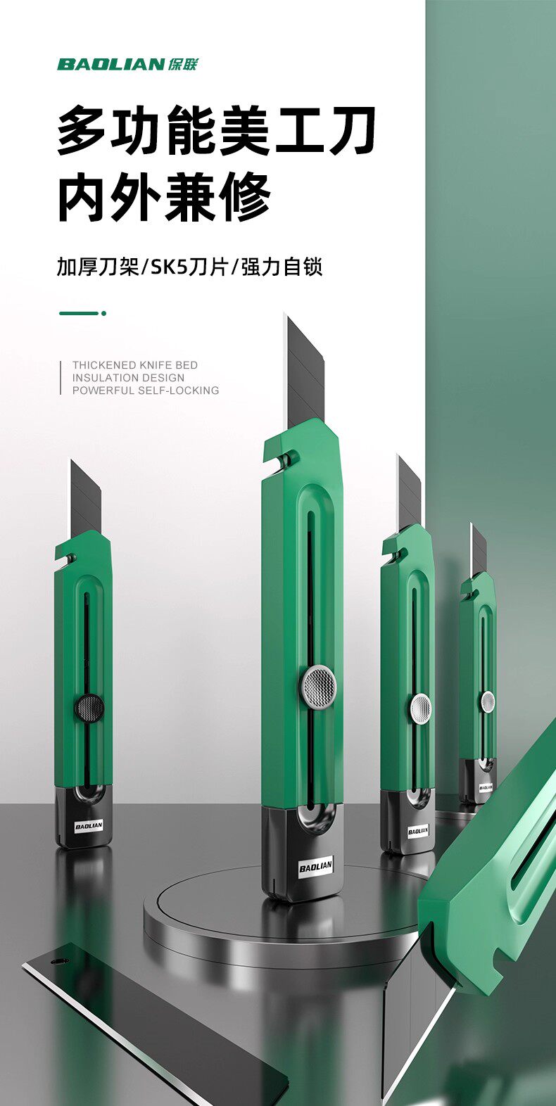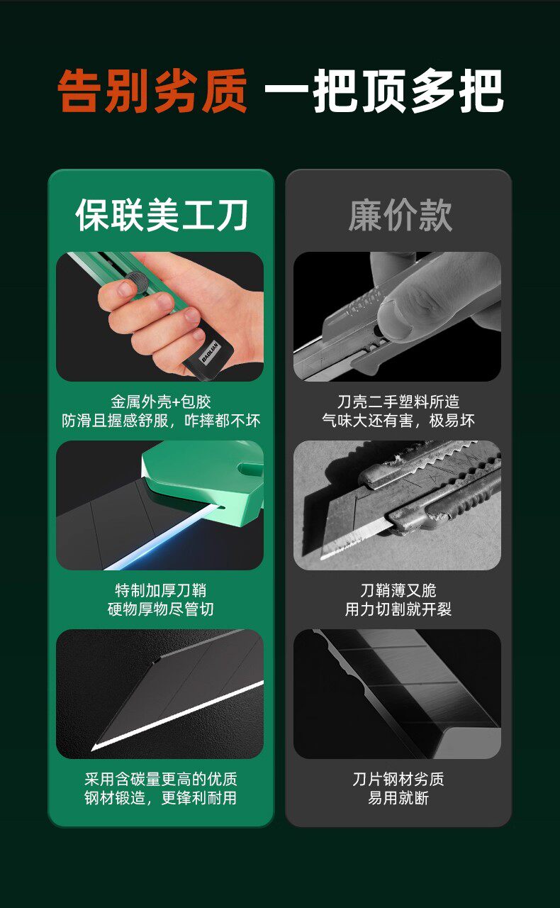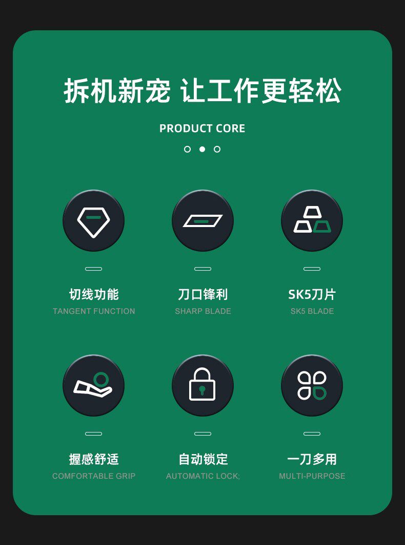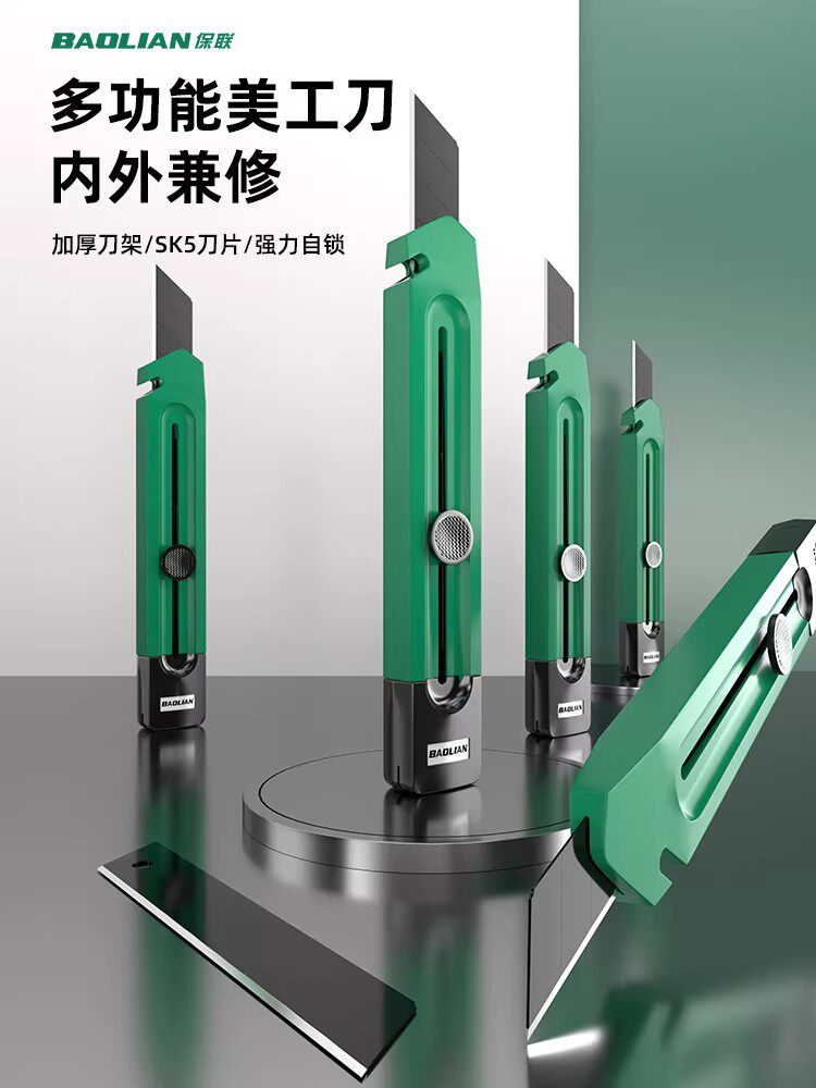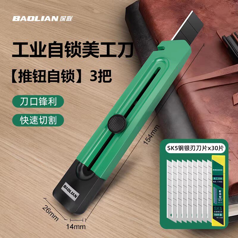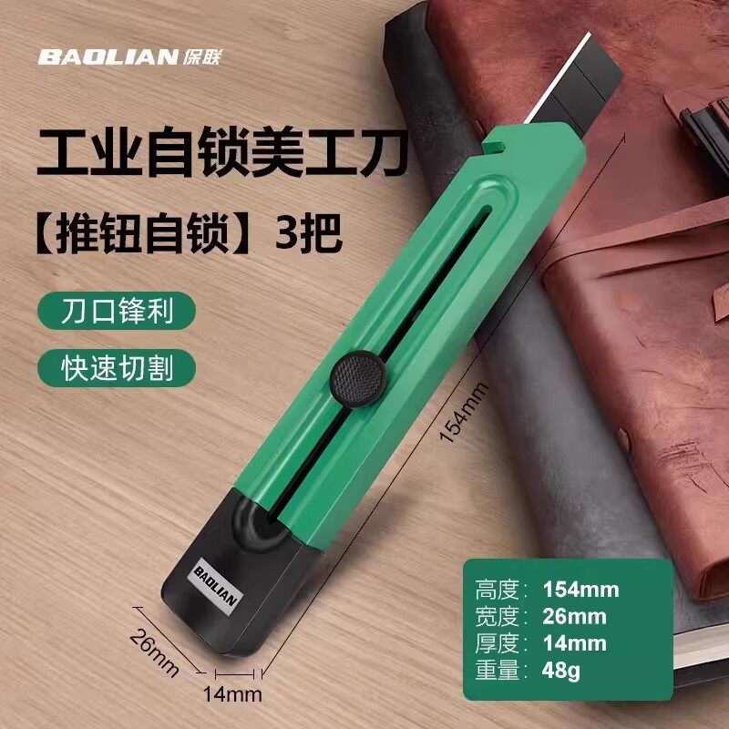 美工刀推钮自锁剥线折刃三合一加厚多功能居家办公便携式切割工具
