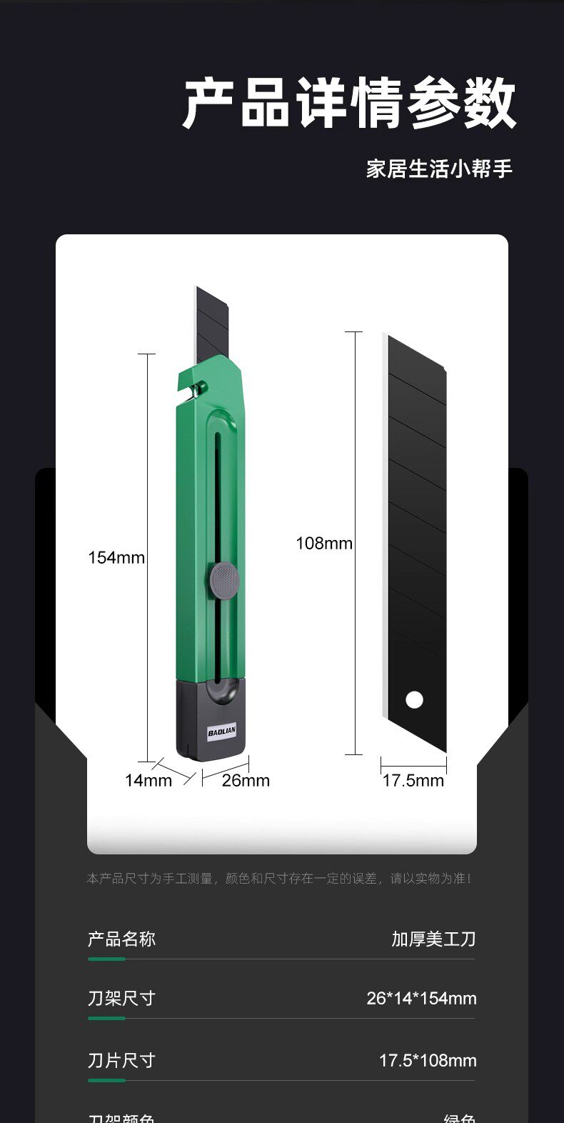 60°以下 / 154mm / 10.8cm / 【1把装】工业级美工刀/可剥电线