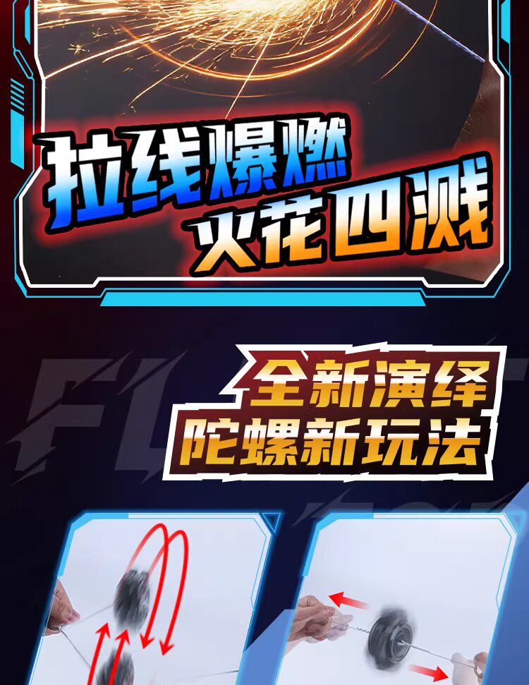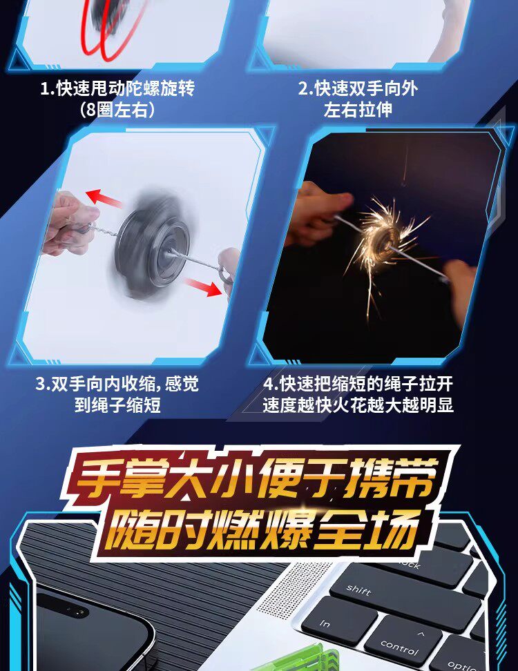 拉线火花陀螺炫酷爆旋带闪电玩具00后童年回忆新年寒假儿童小玩意