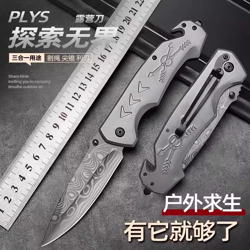 德国户外折叠大马士革纹刀高硬度锋利水果刀具多功能便携防身自卫