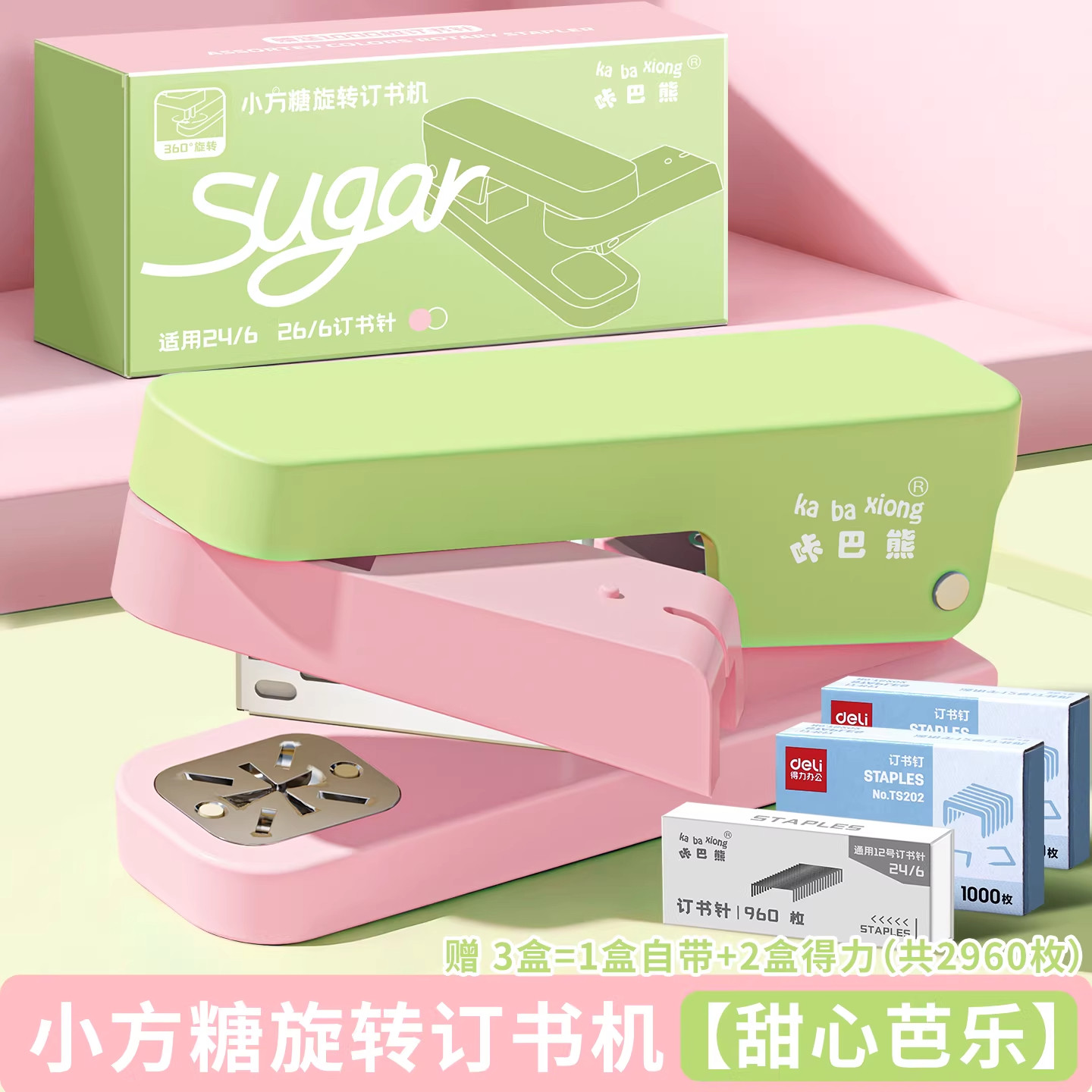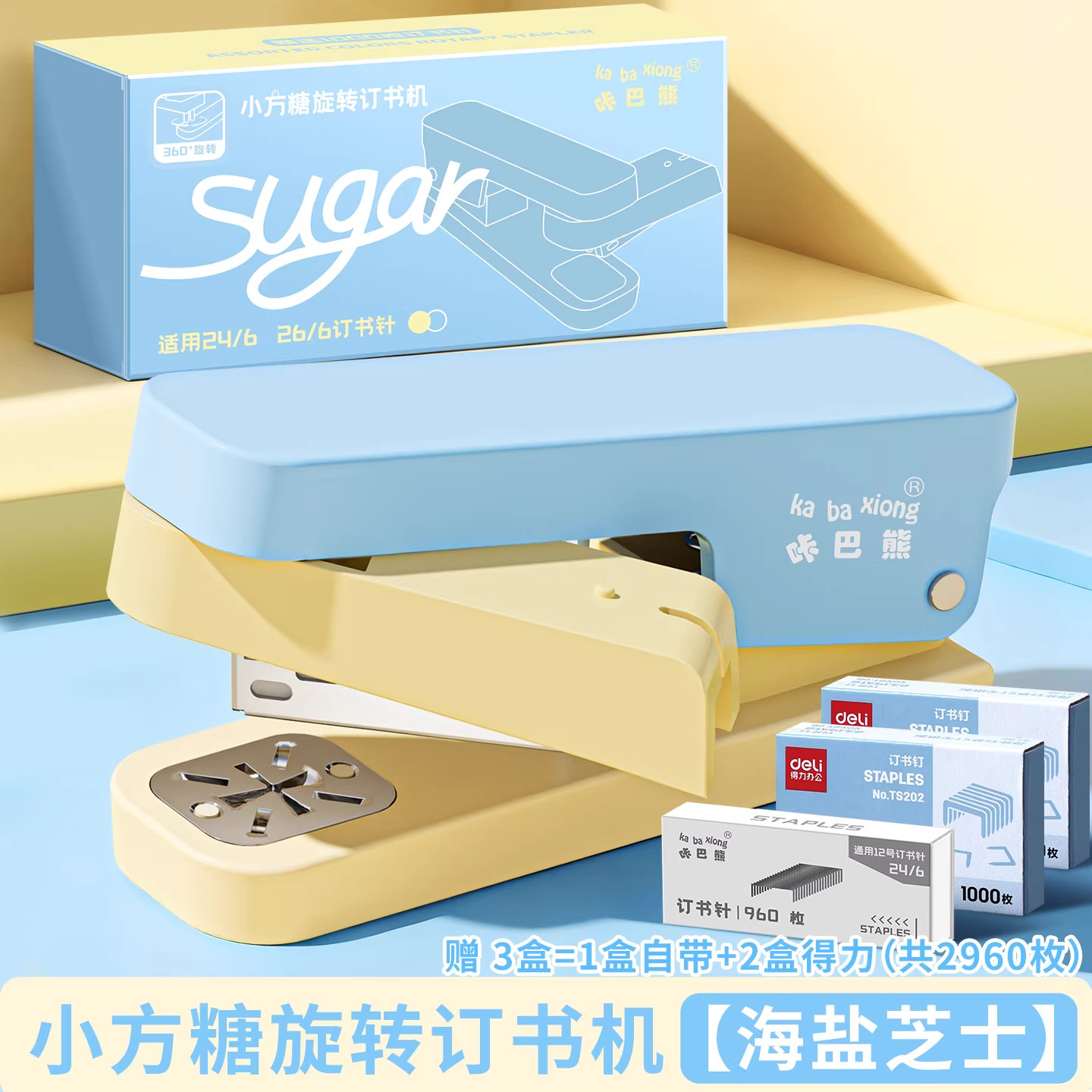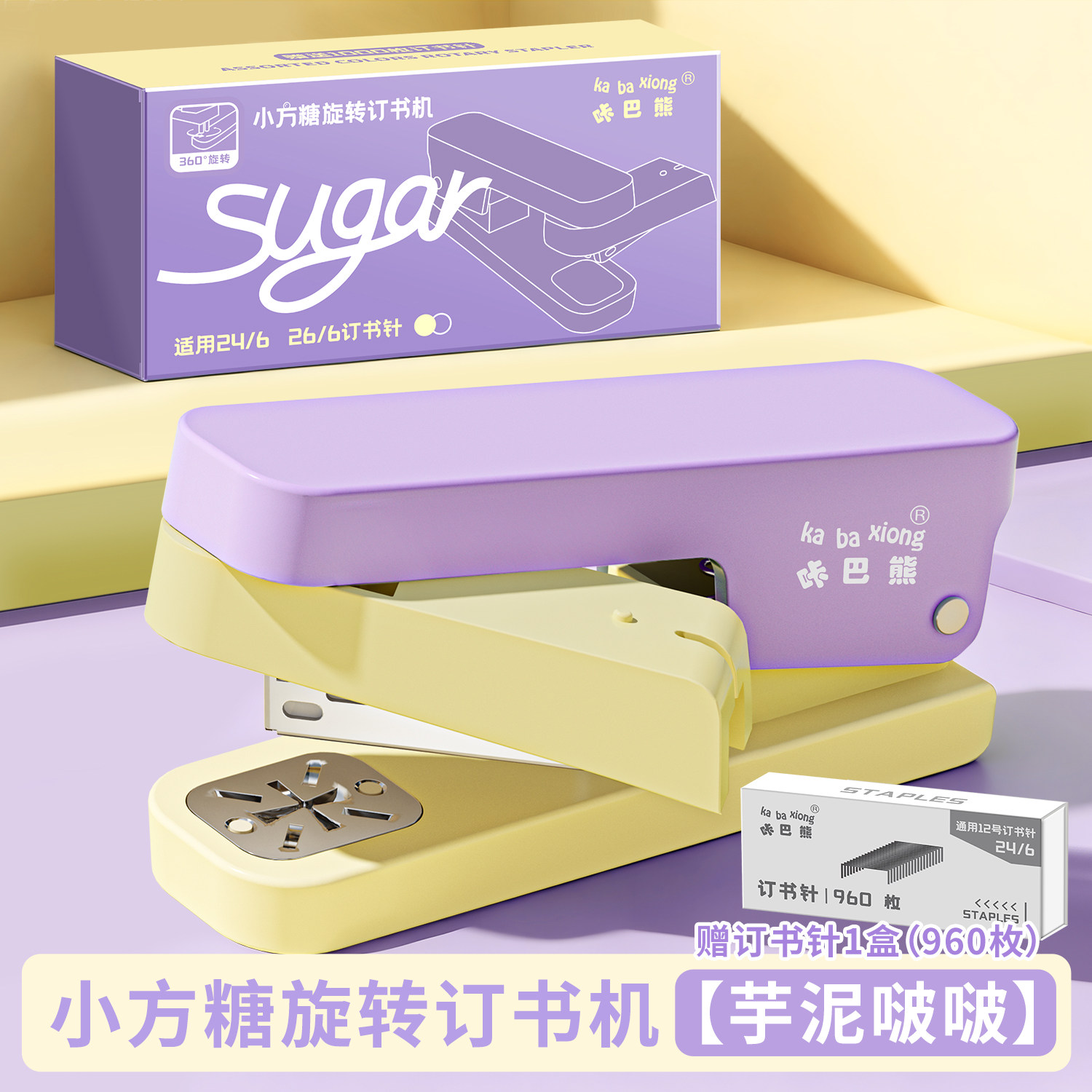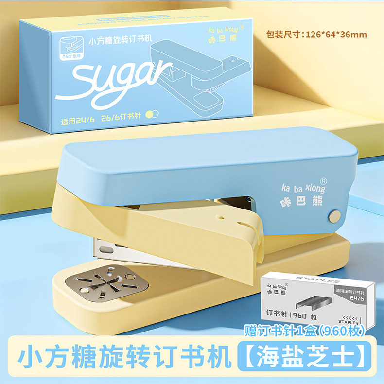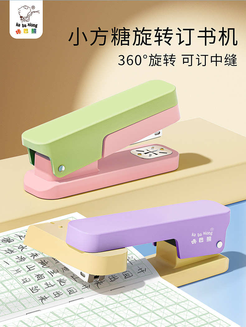 咔巴熊小方糖360°旋转订书机高颜值迷你便携式学生专用办公便携可订中缝送订书针小学生办公用品多功能文具