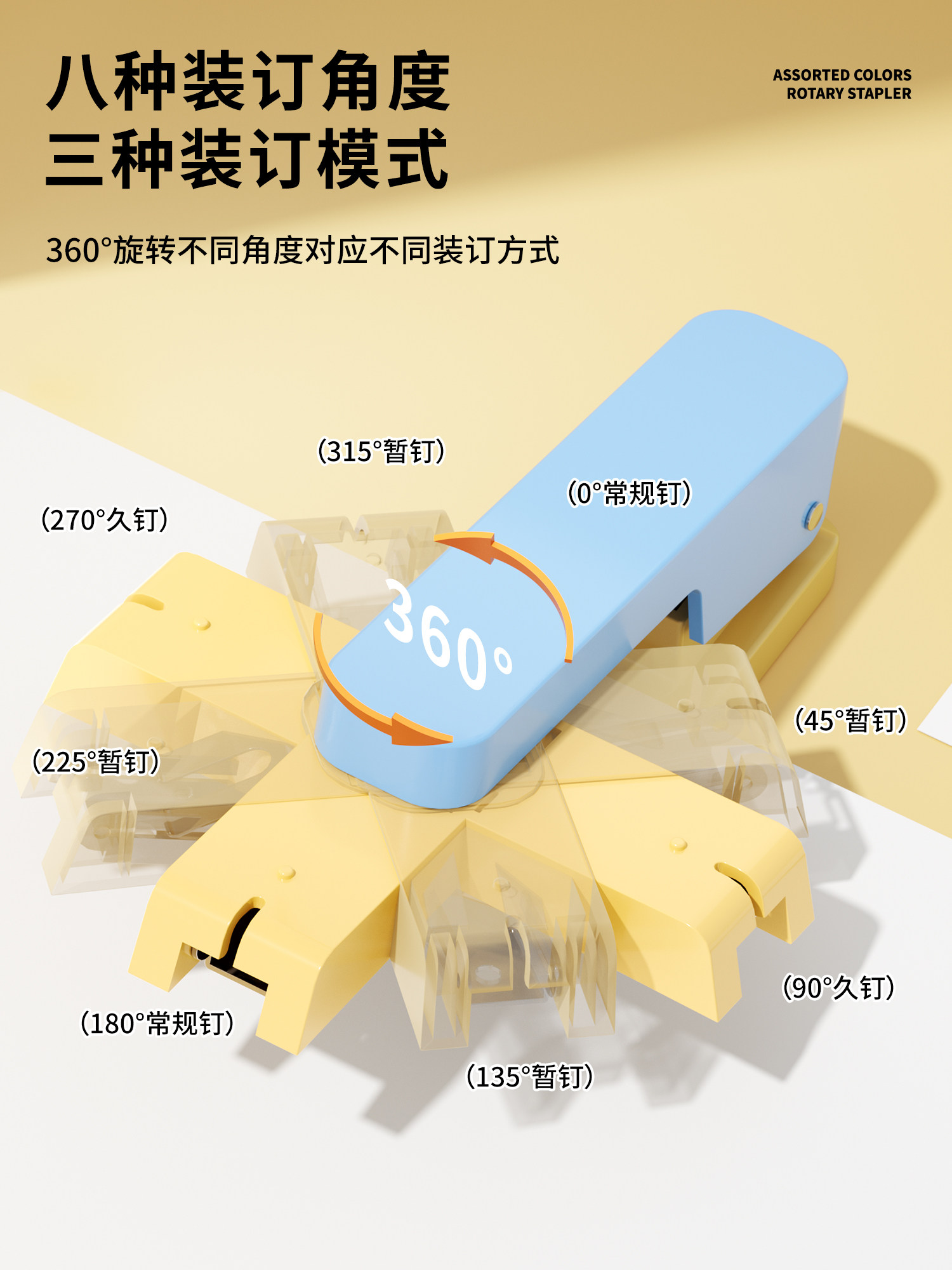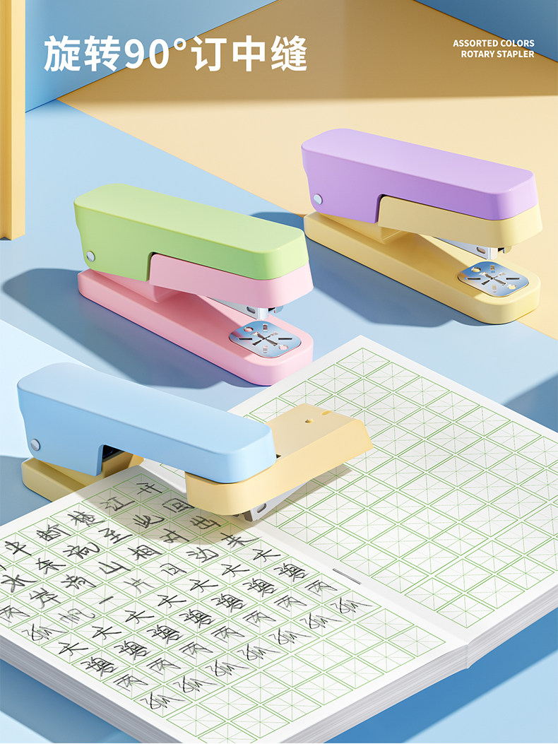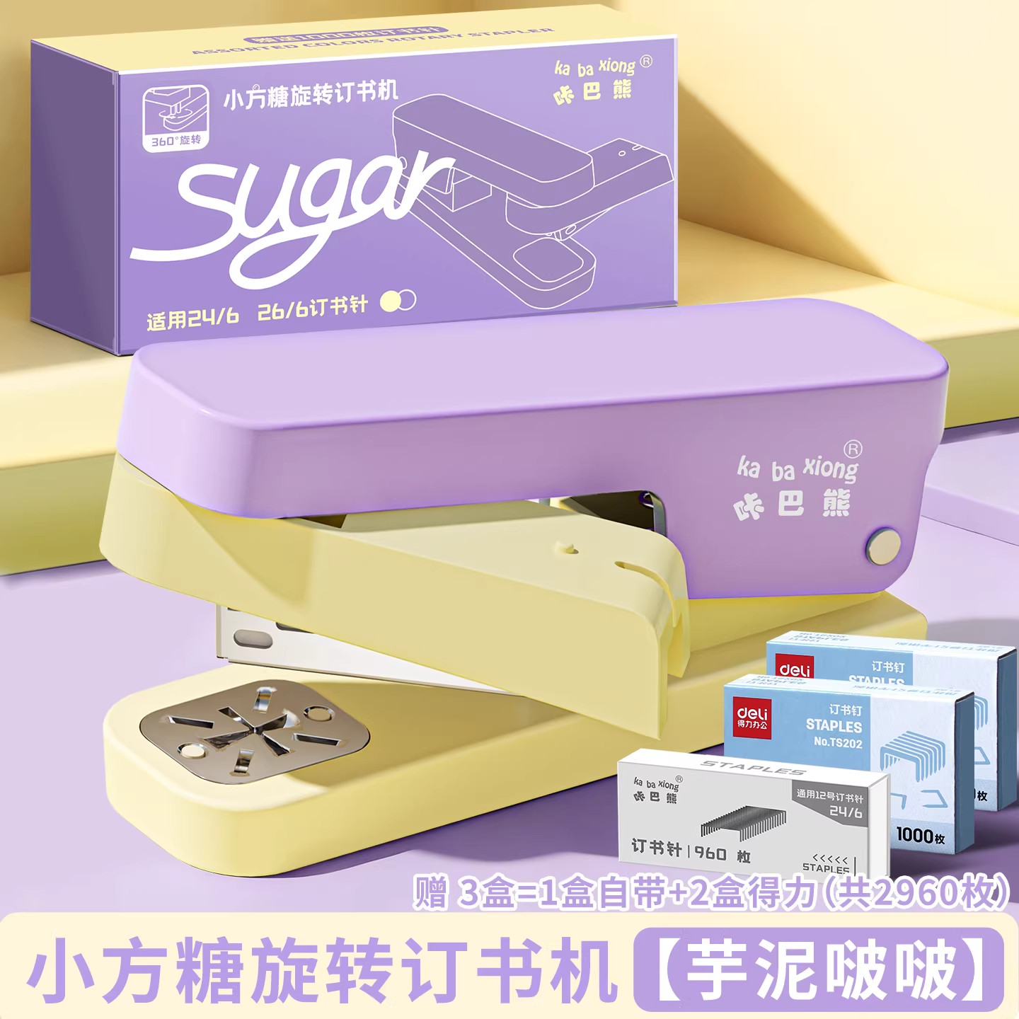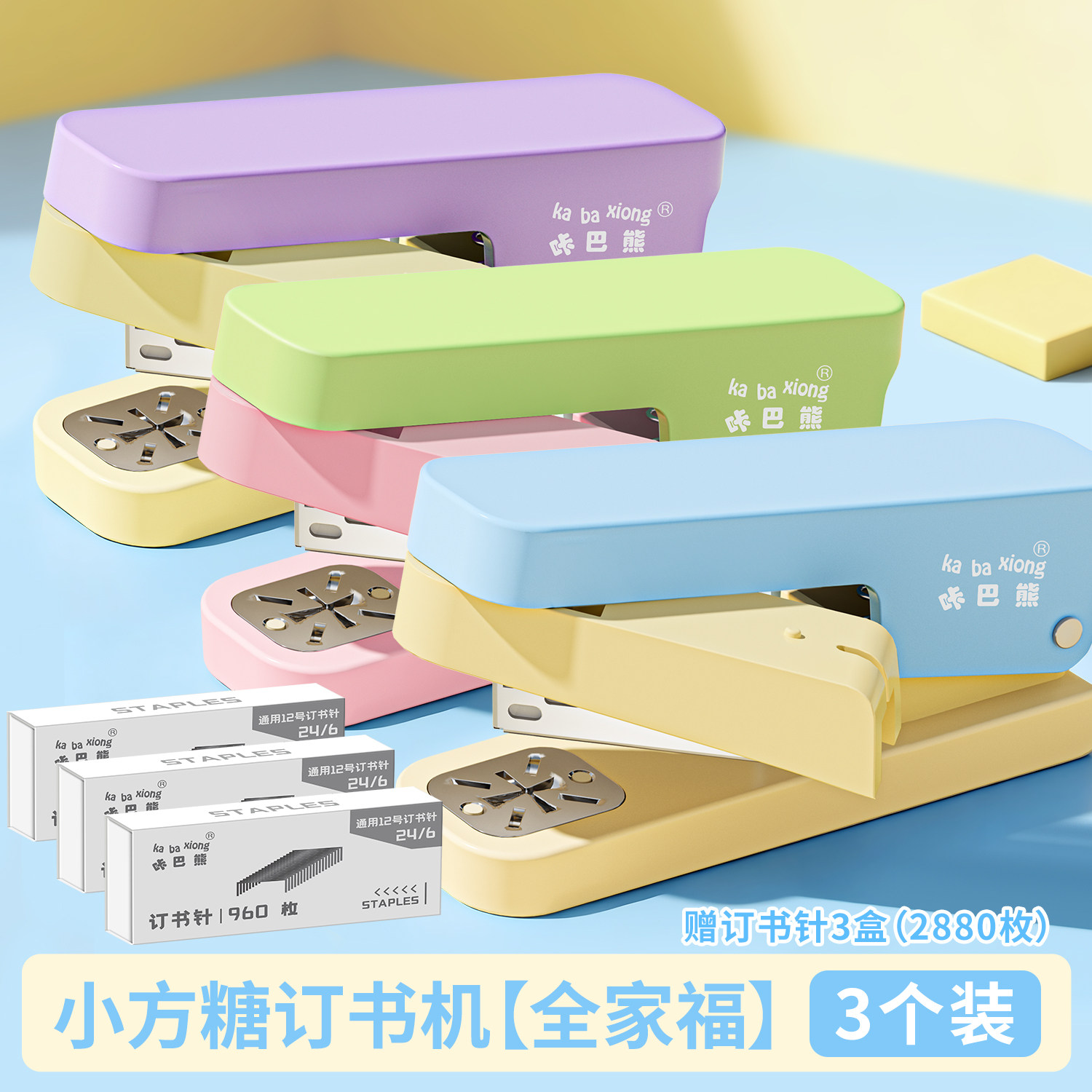 咔巴熊小方糖360°旋转订书机高颜值迷你便携式学生专用办公便携可订中缝送订书针小学生办公用品多功能文具