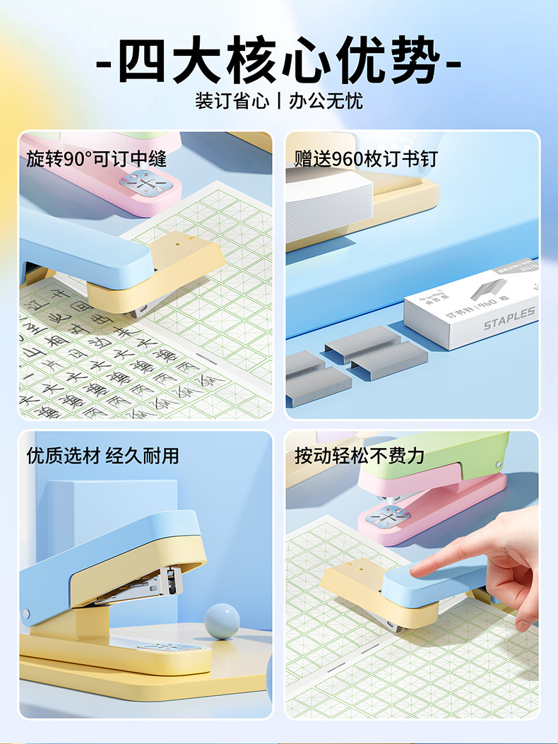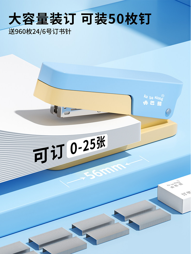 HomeProducts咔巴熊小方糖360°旋转订书机高颜值迷你便携式学生专用办公便携可订中缝送订书针小学生办公用品多功能文具