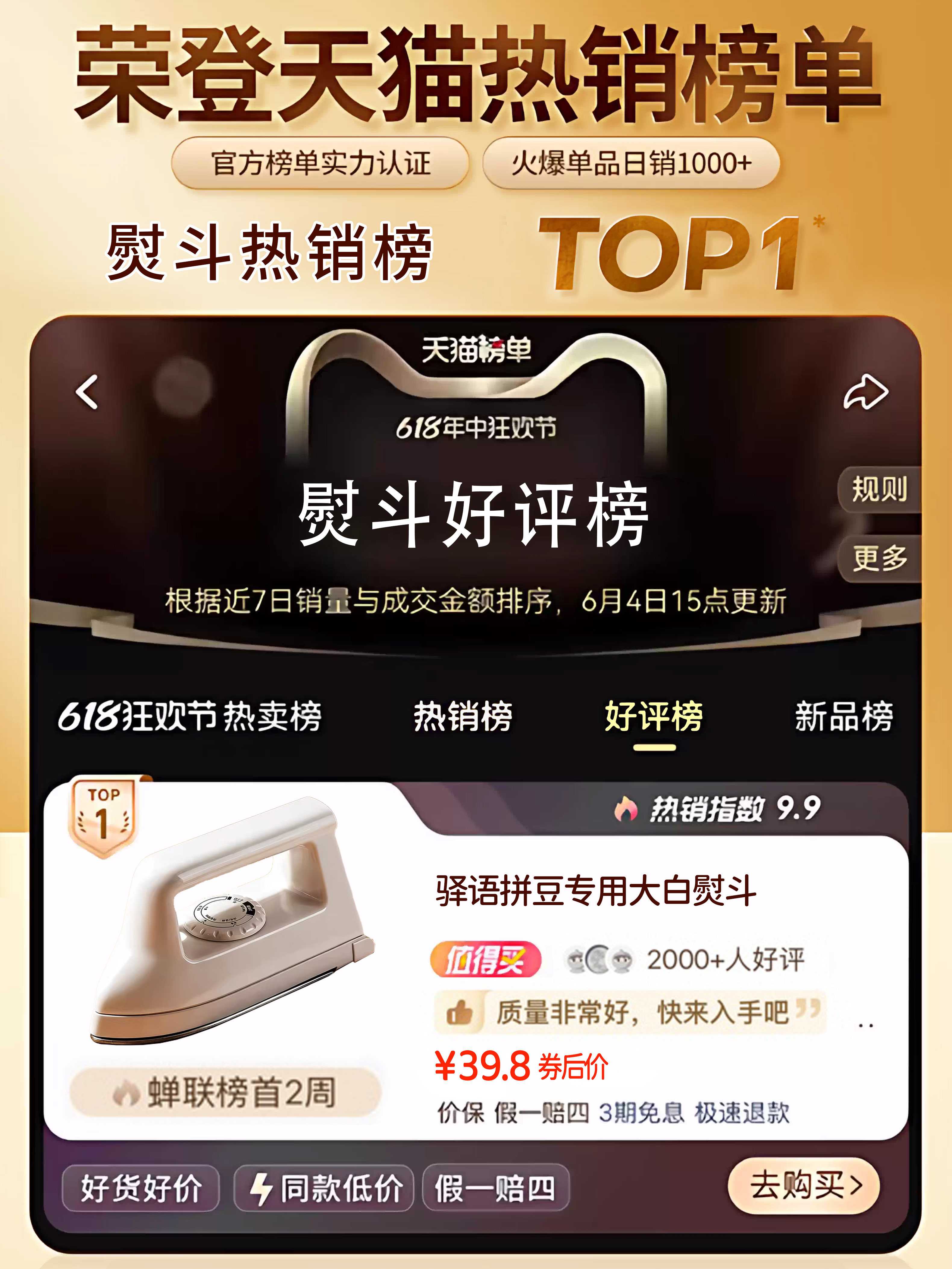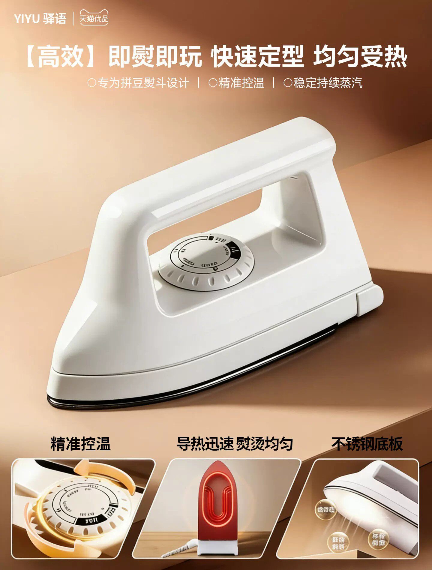 驿语拼豆专用大白熨斗工具3c认证电熨烫不锈钢底可调温干湿两用af