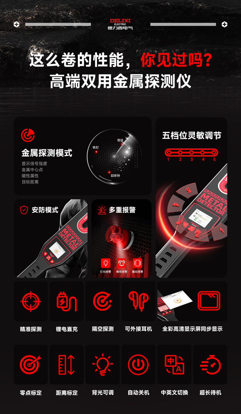 德力西金属探测仪手持式高精度手机电子产品安检扫描仪器考场车站