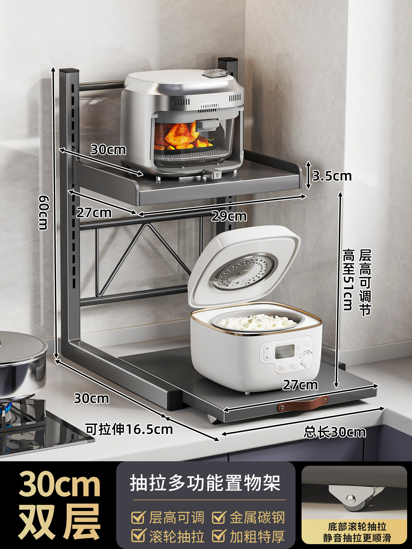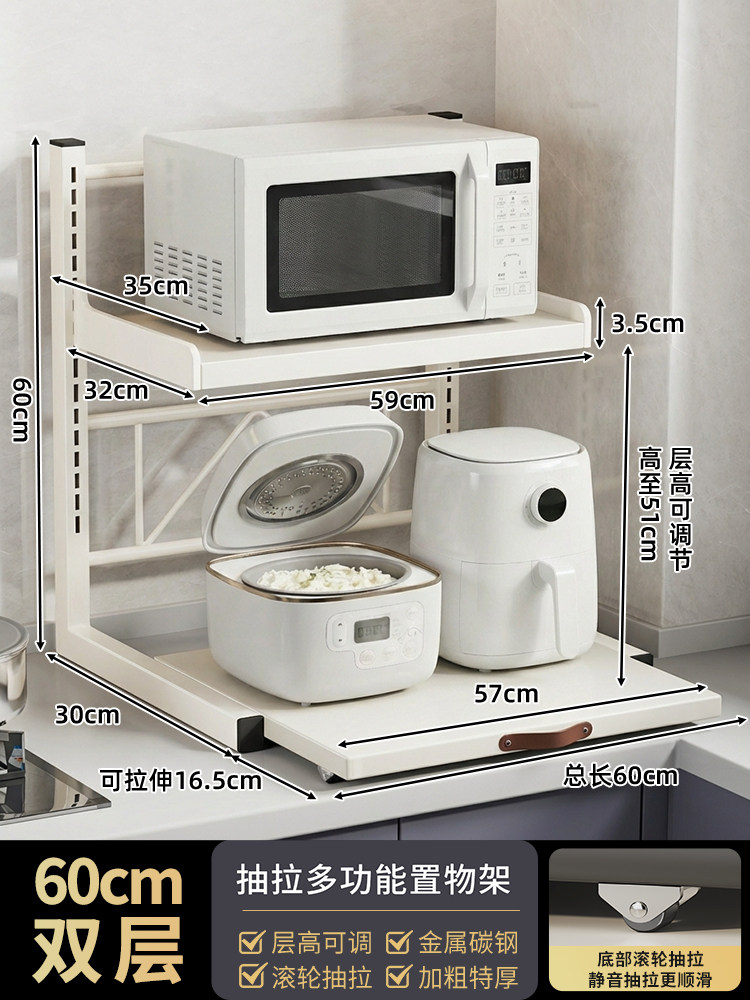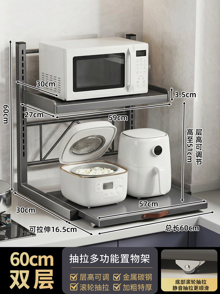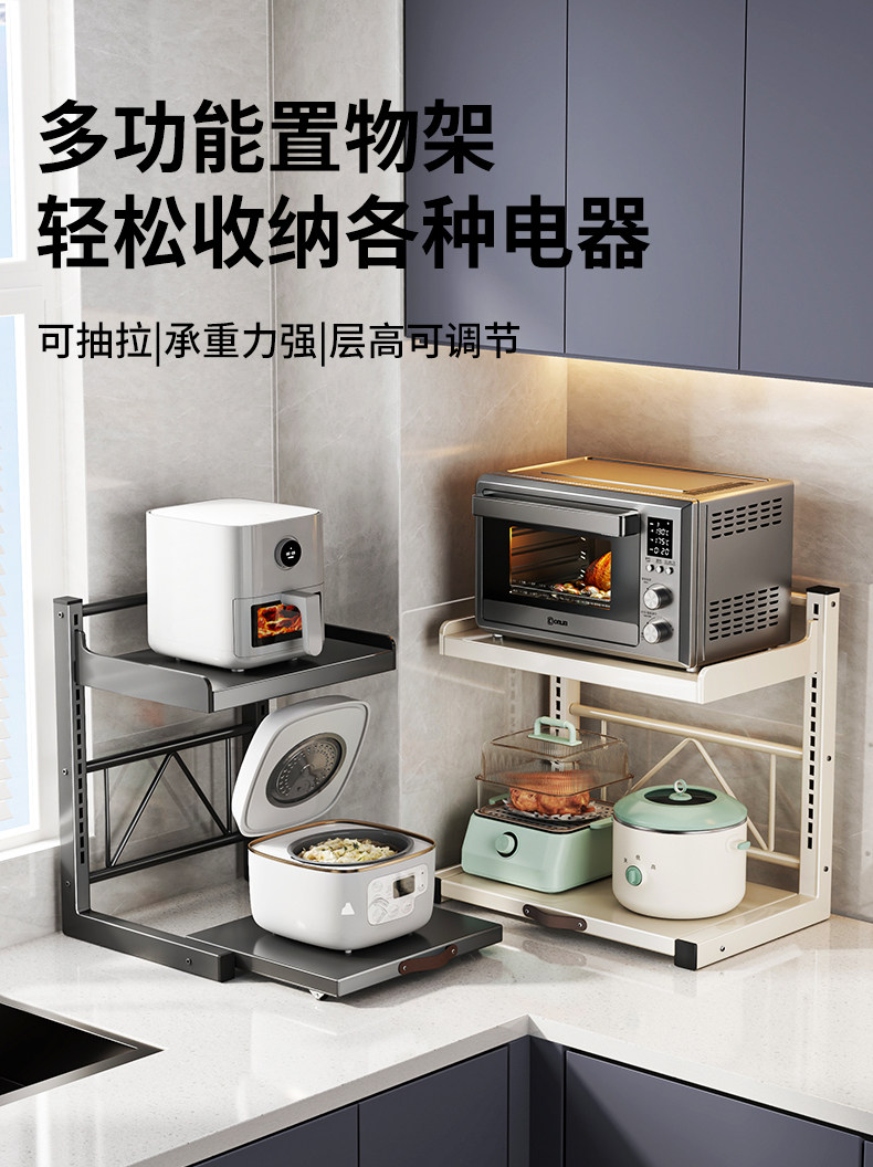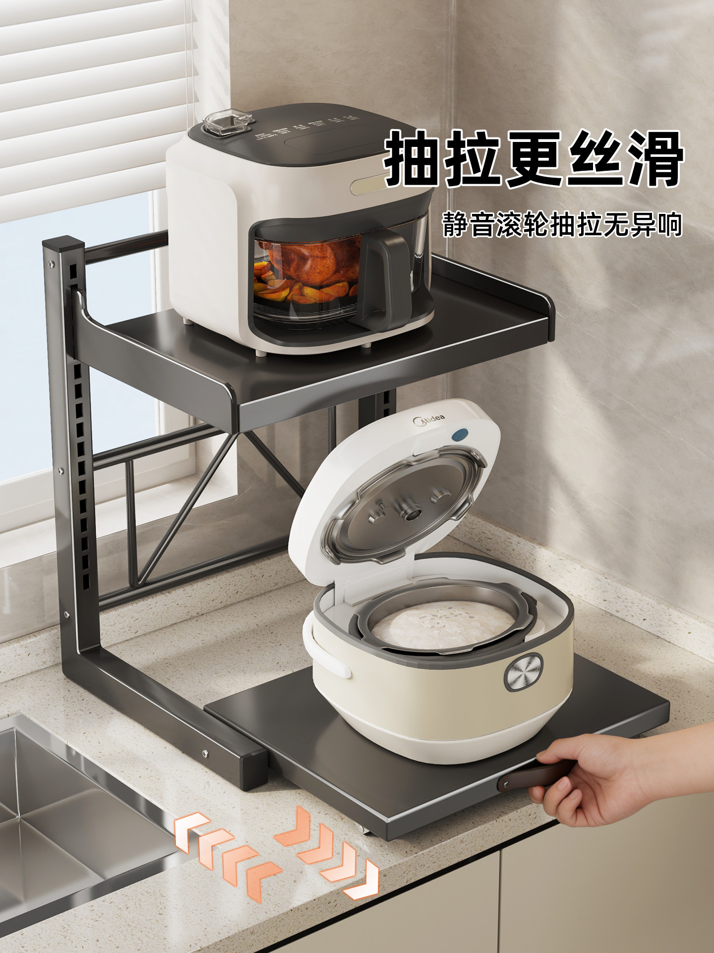 抽拉式厨房微波炉置物架电饭煲多功能双层收纳台面放空气炸锅架子
