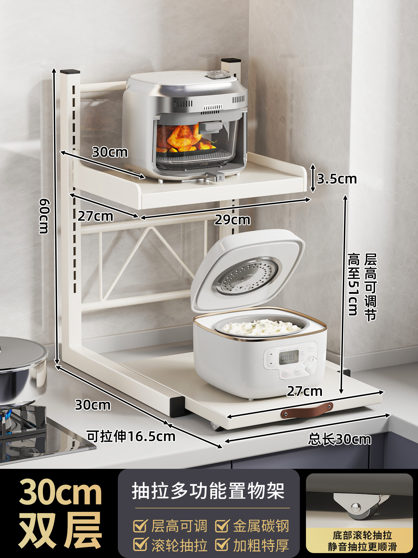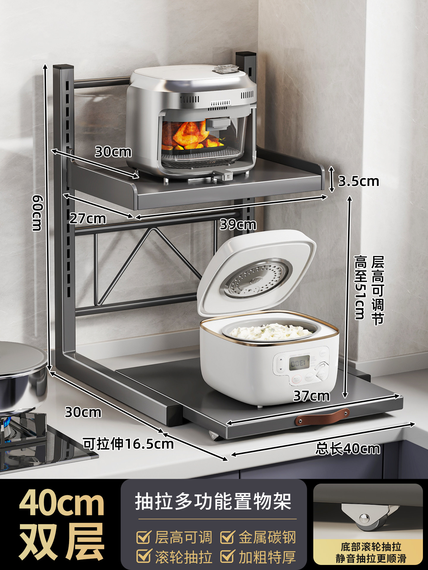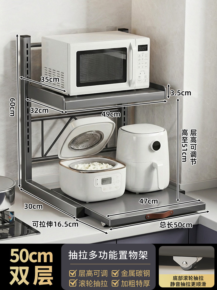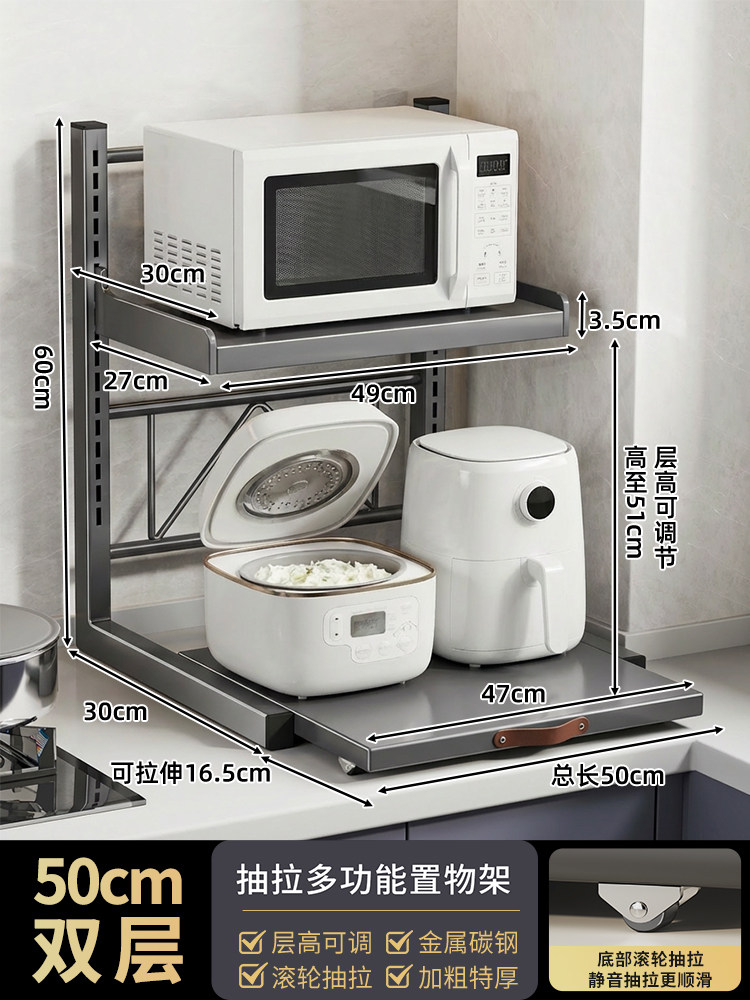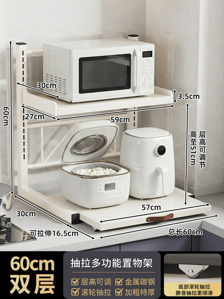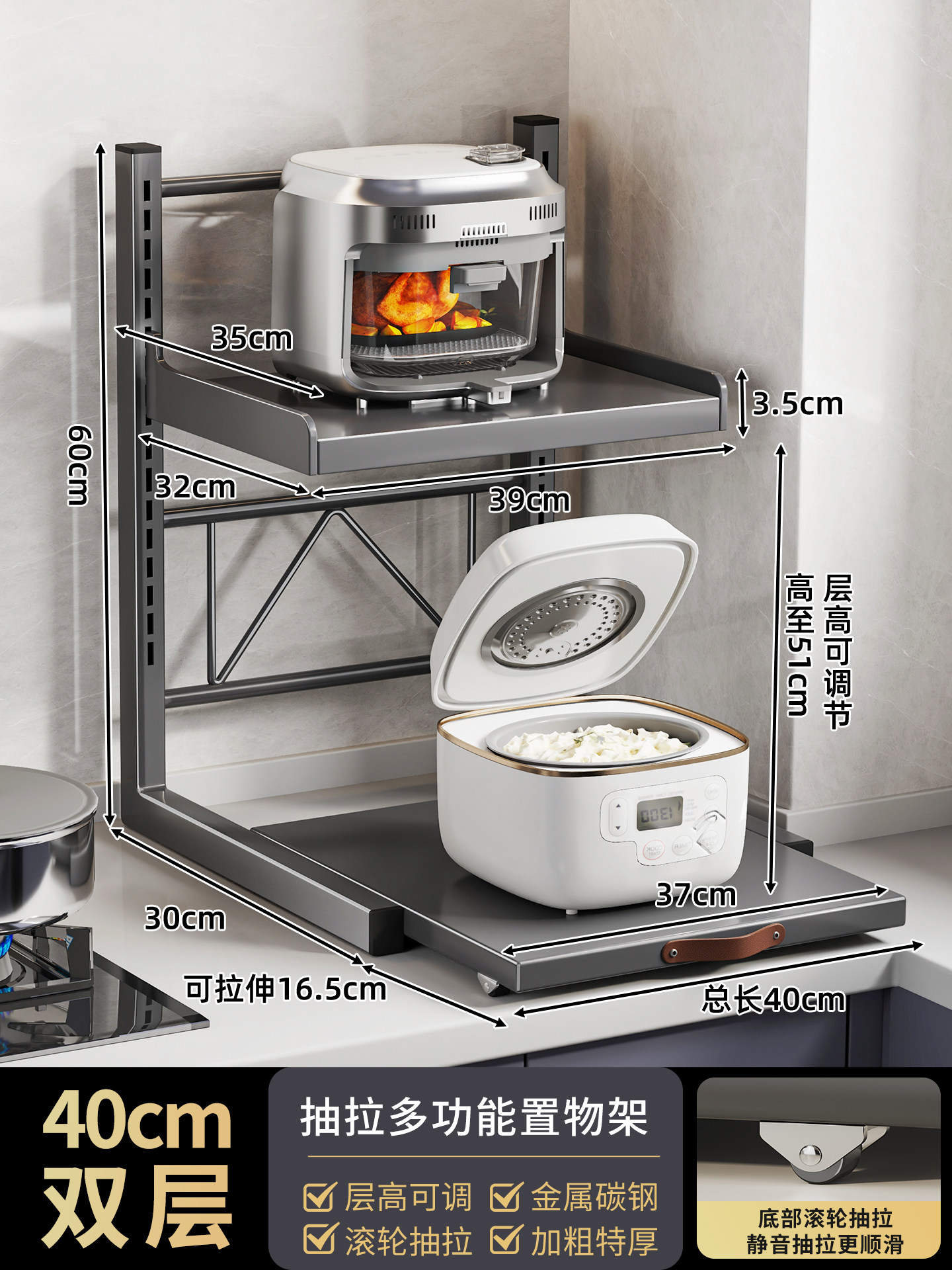 抽拉式厨房微波炉置物架电饭煲多功能双层收纳台面放空气炸锅架子