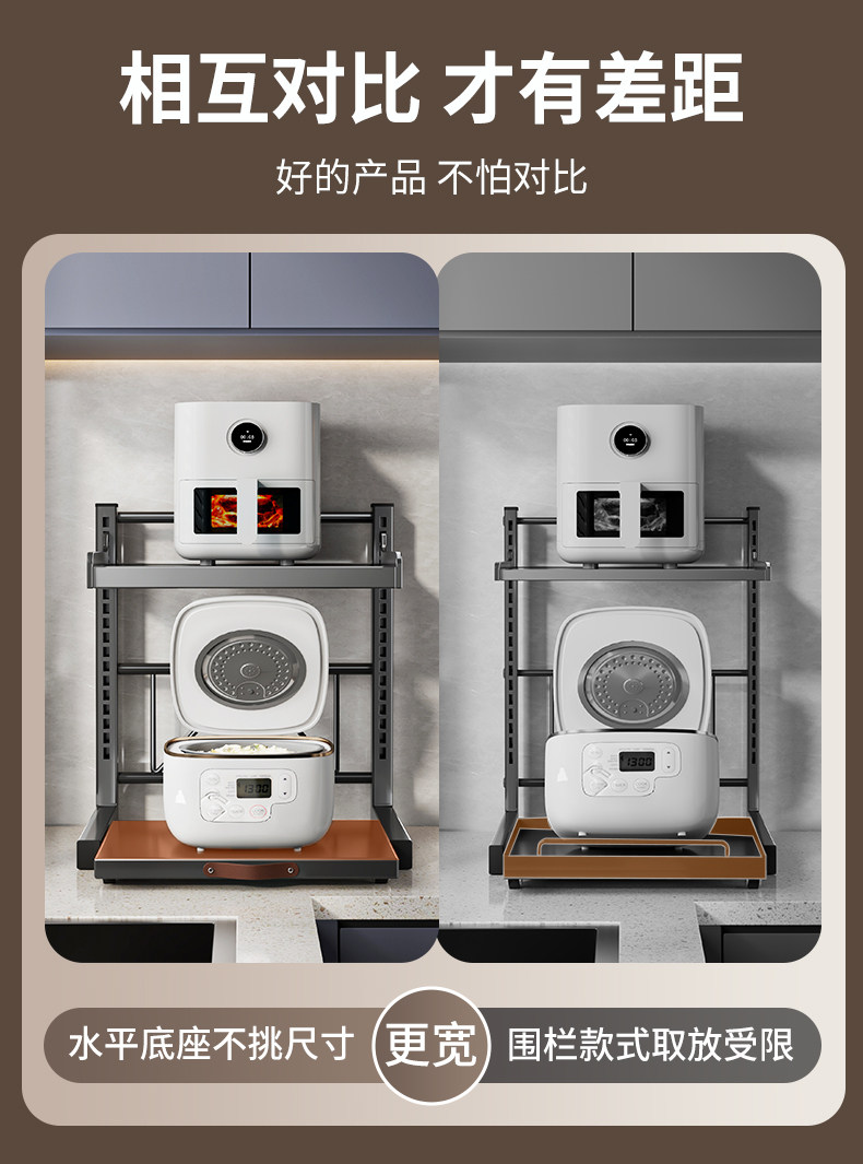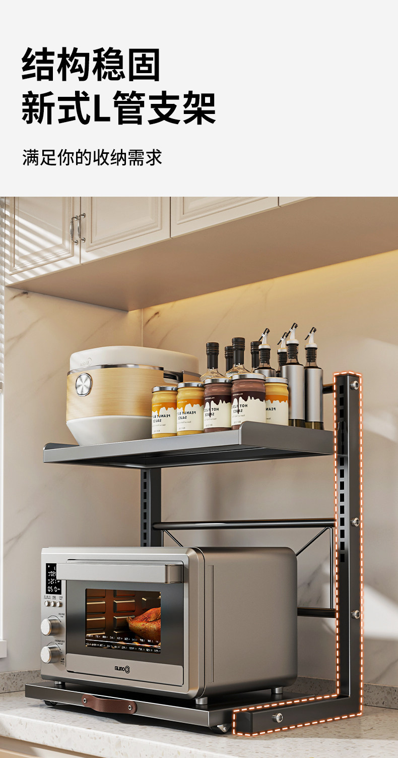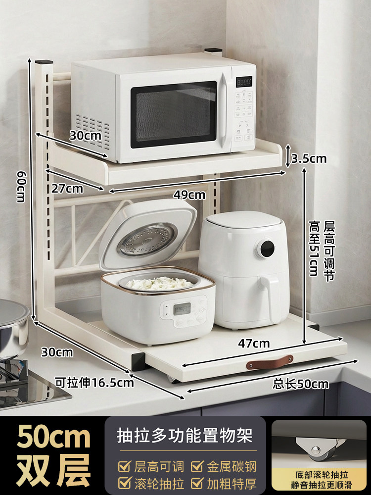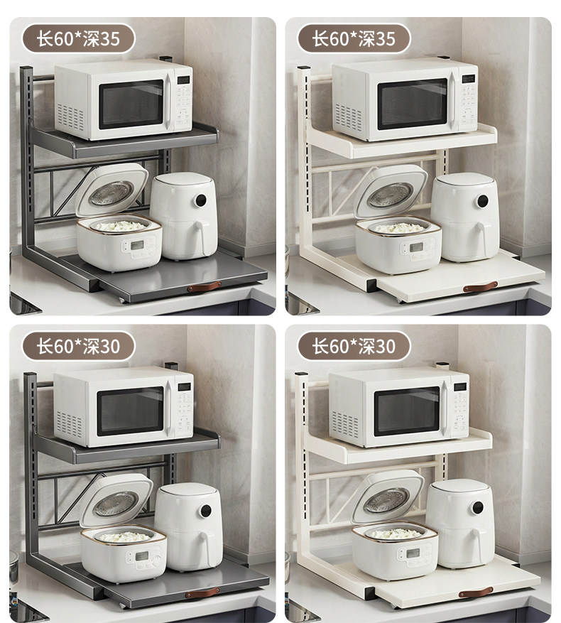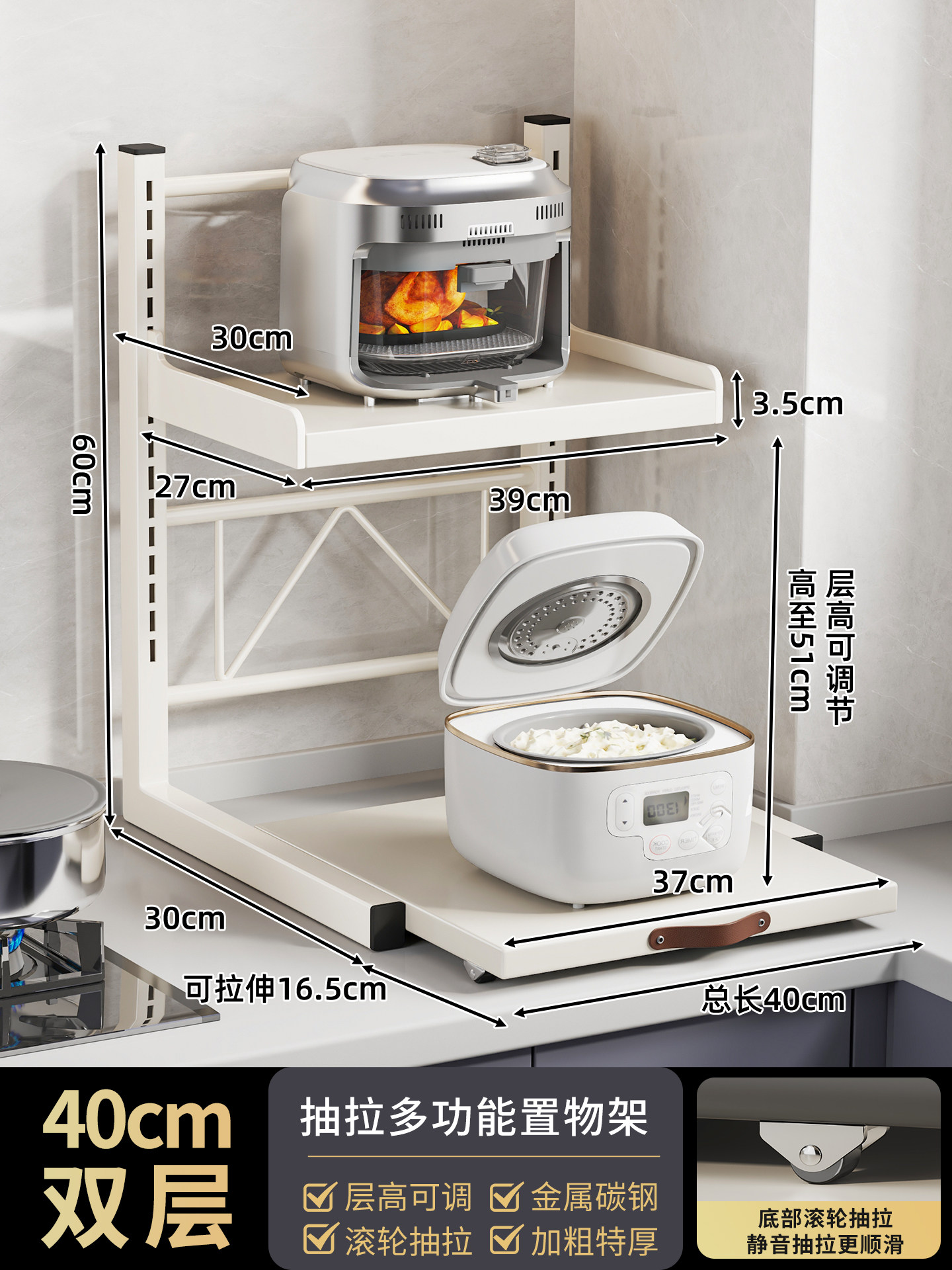 抽拉式厨房微波炉置物架电饭煲多功能双层收纳台面放空气炸锅架子