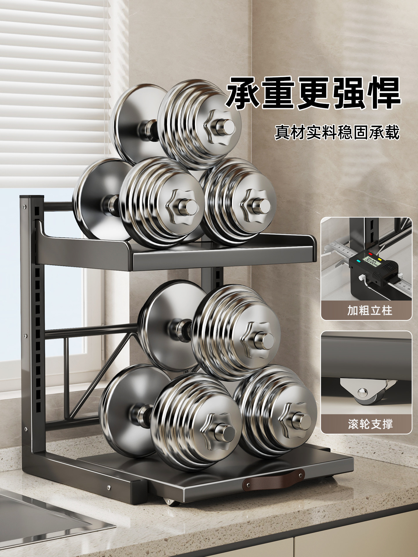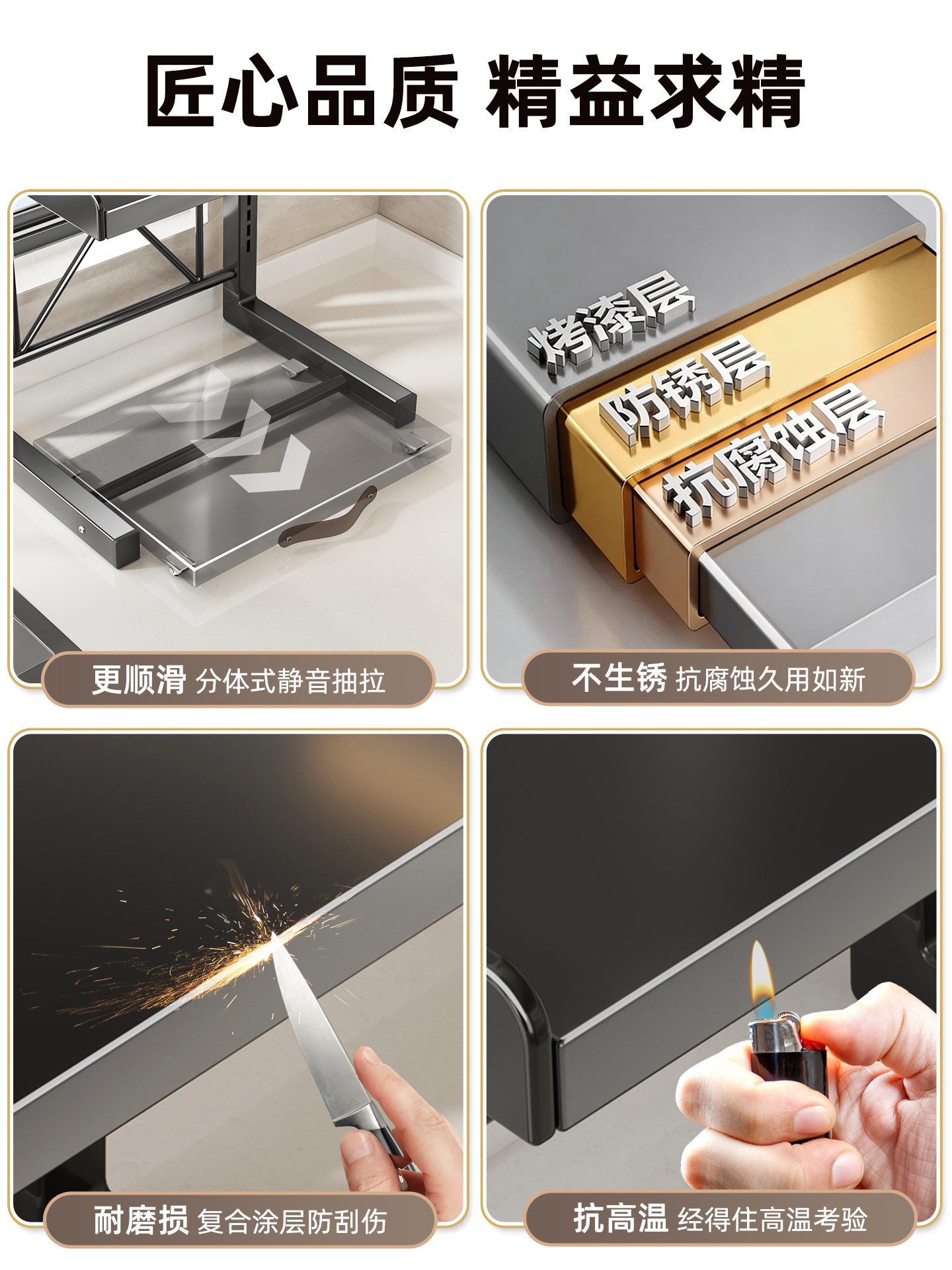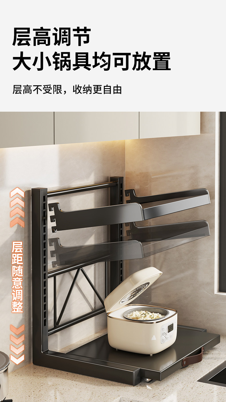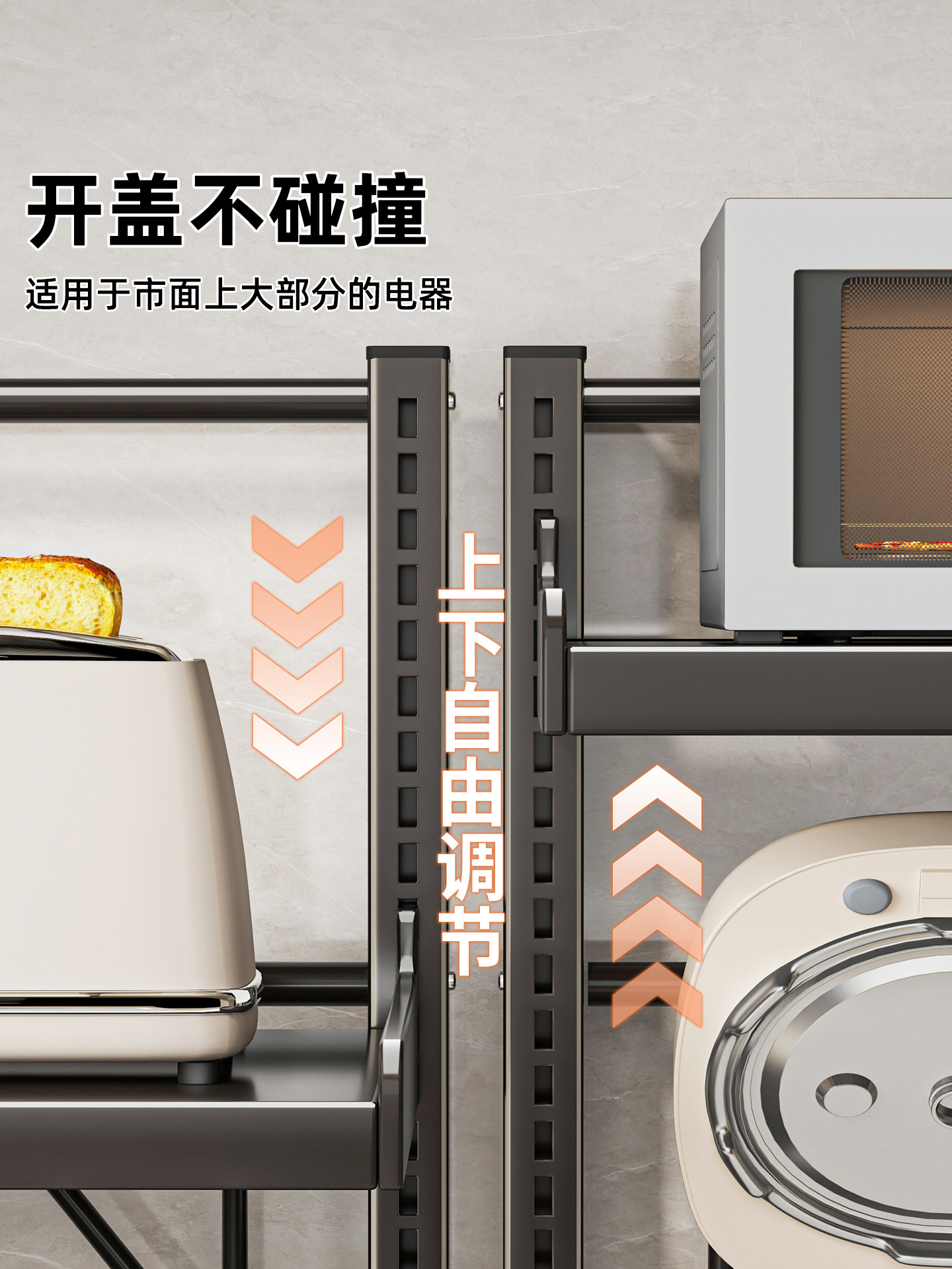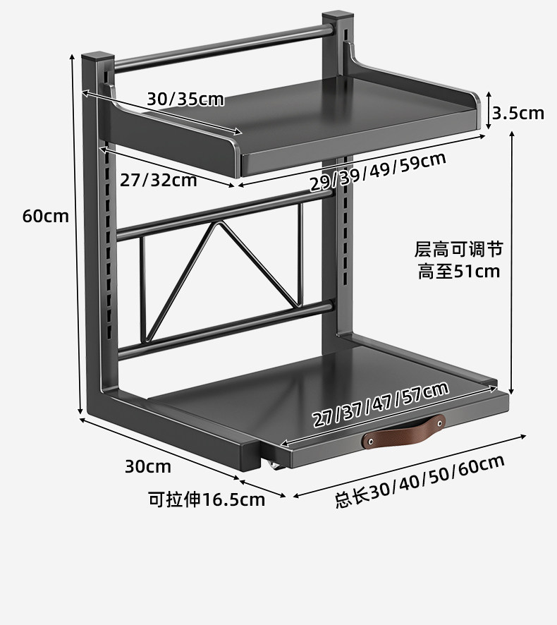 抽拉式厨房微波炉置物架电饭煲多功能双层收纳台面放空气炸锅架子