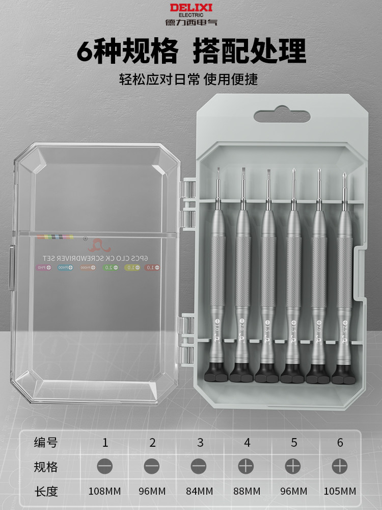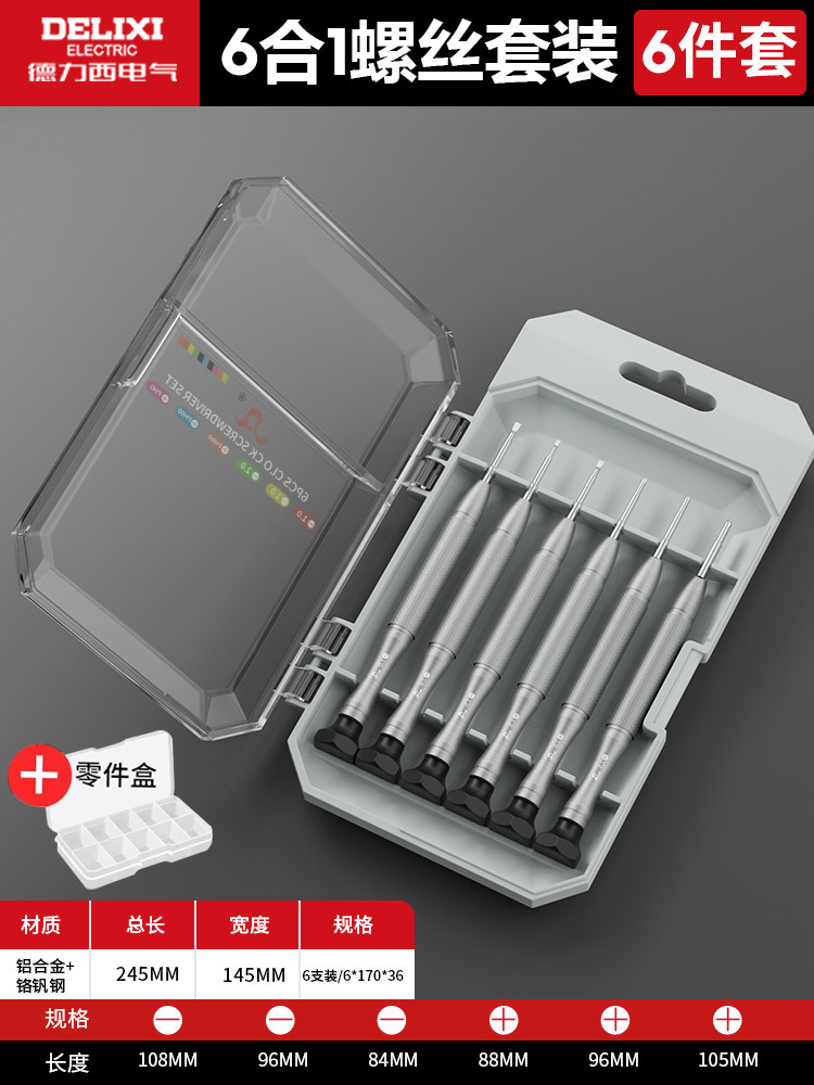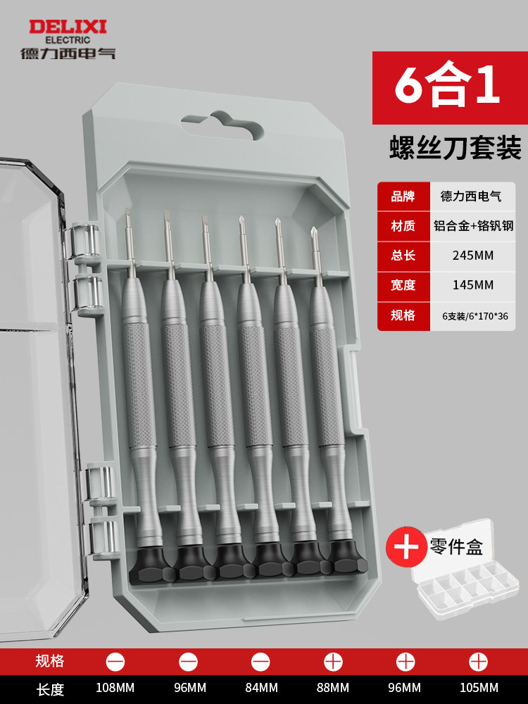 HomeProducts德力西电气十字一字小螺丝刀套装六合一拆机维修小螺丝批起子
