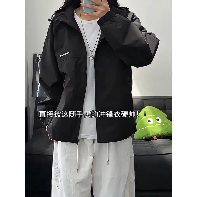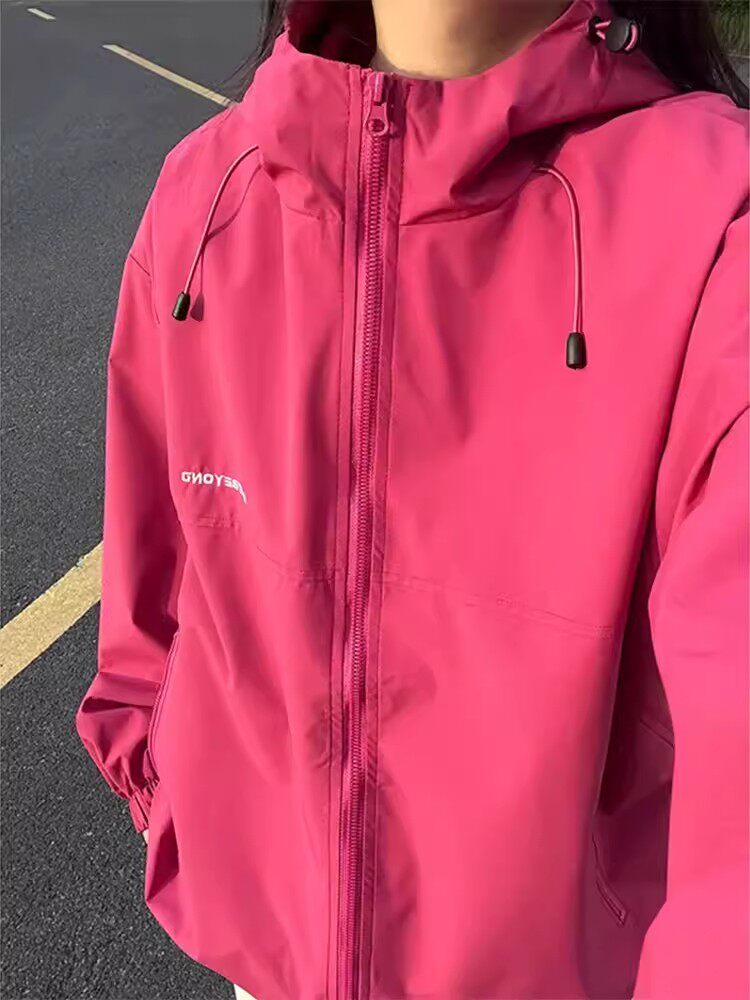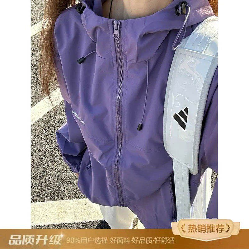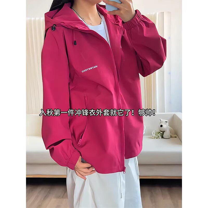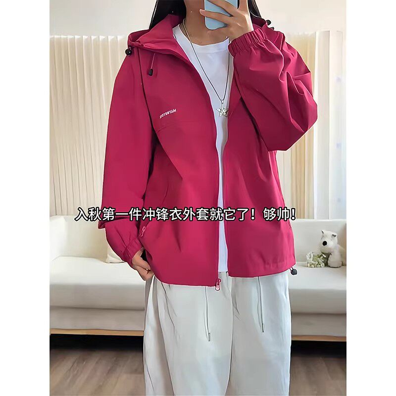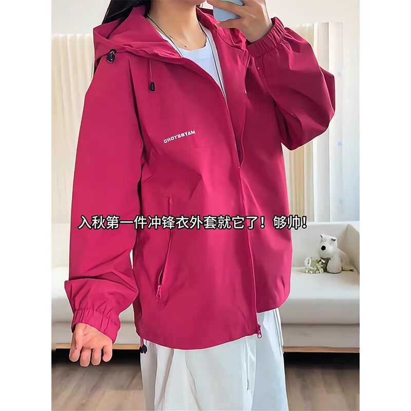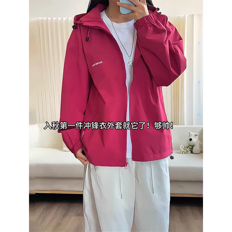 啄木鸟连帽冲锋衣男女秋季多巴胺穿搭户外登山服夹克美式三防外套
