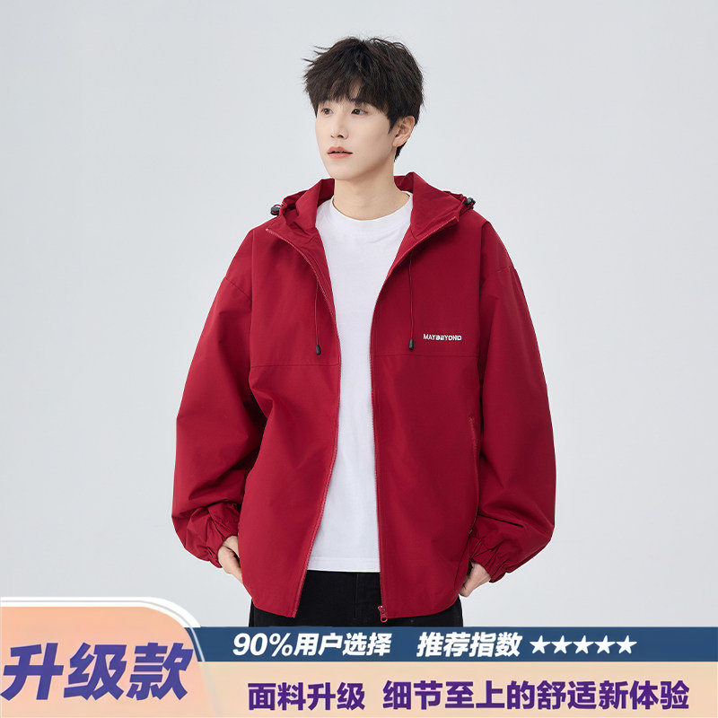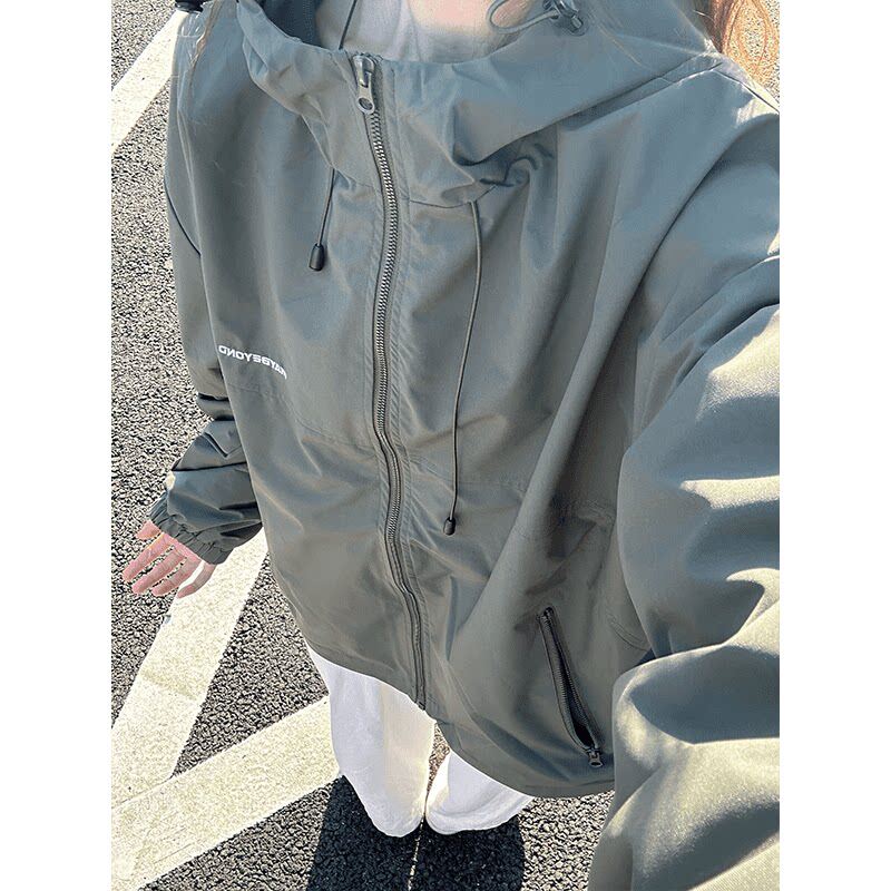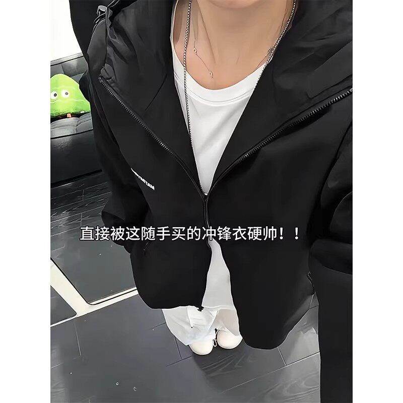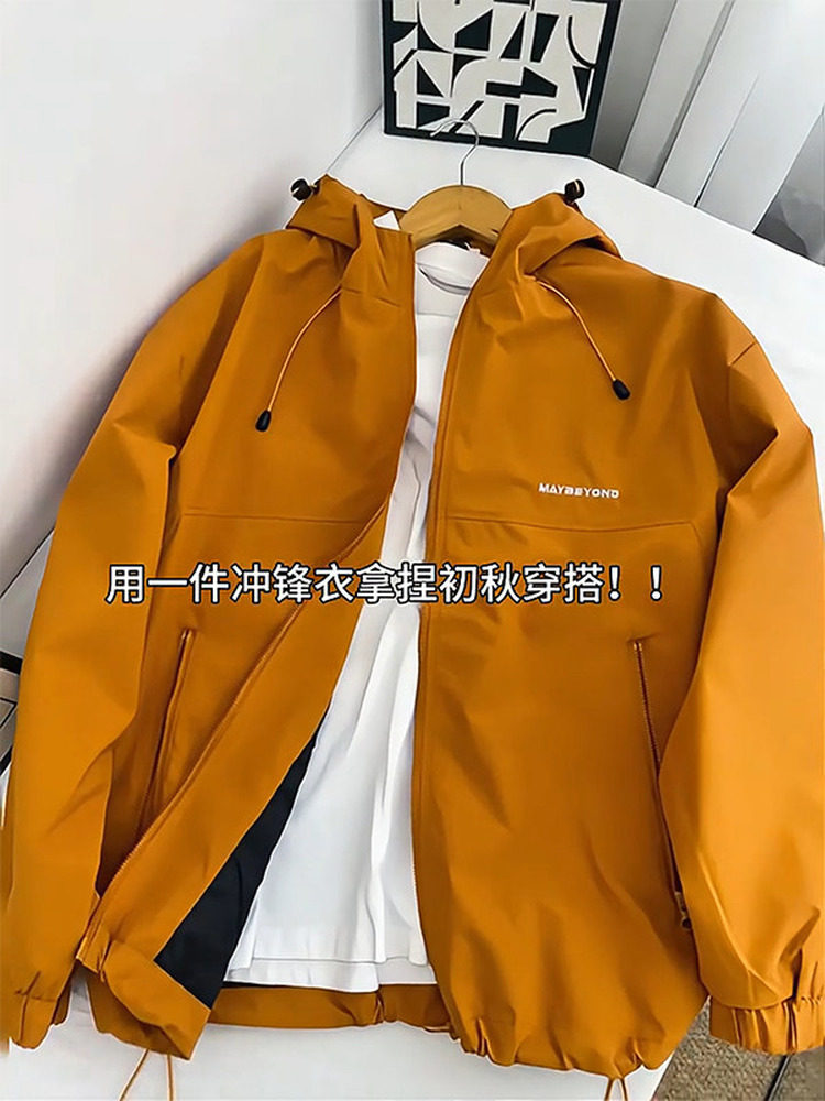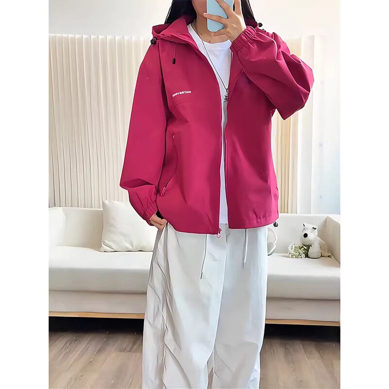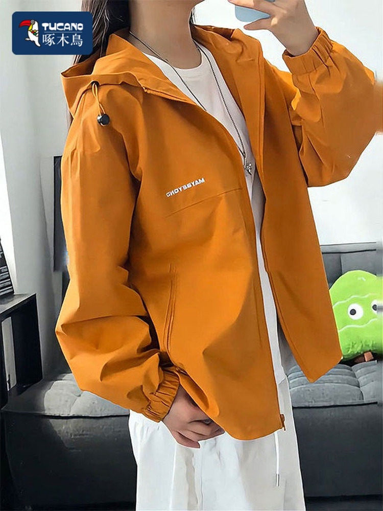 啄木鸟连帽冲锋衣男女秋季多巴胺穿搭户外登山服夹克美式三防外套