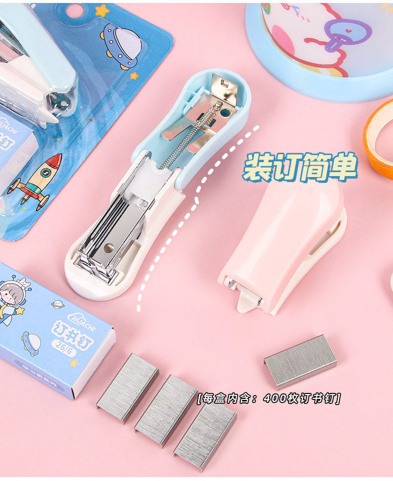 卡通可爱吸卡宇航员订书机订书器六一儿童节奖励小礼品家用定书器