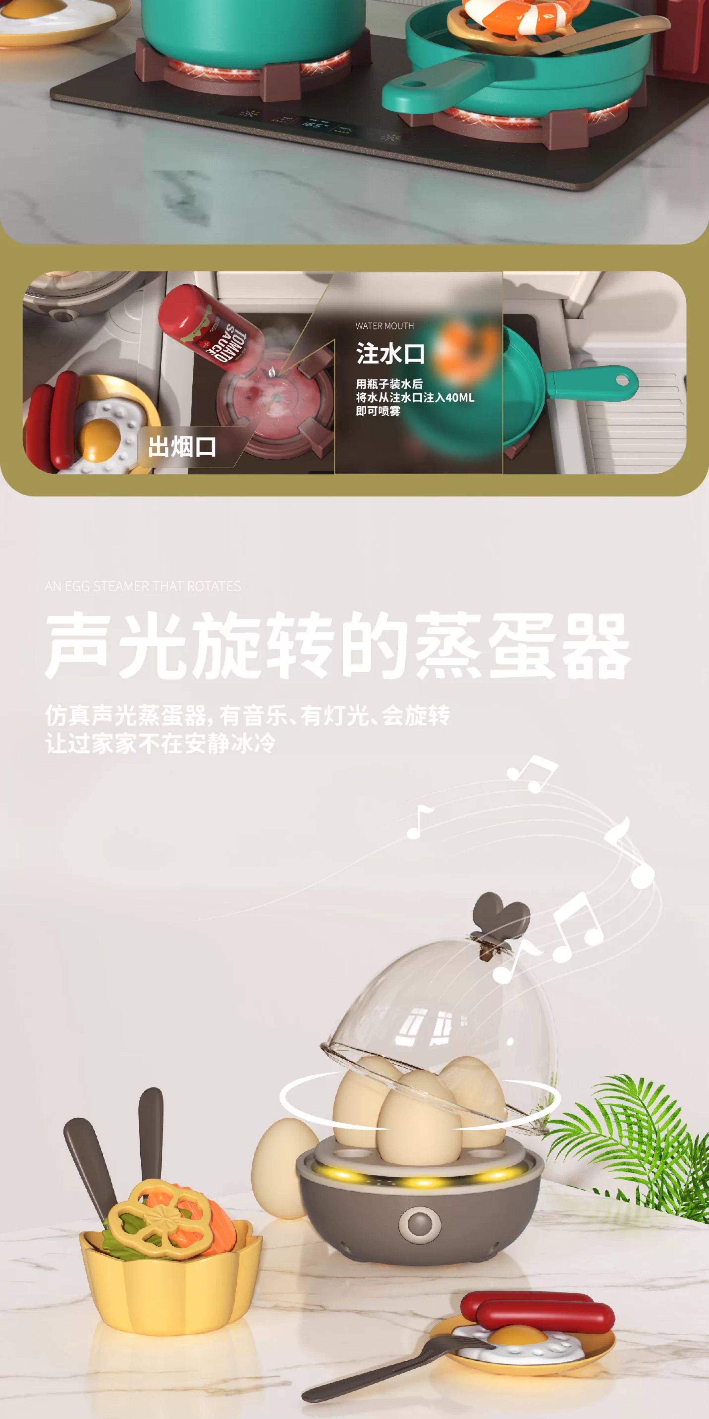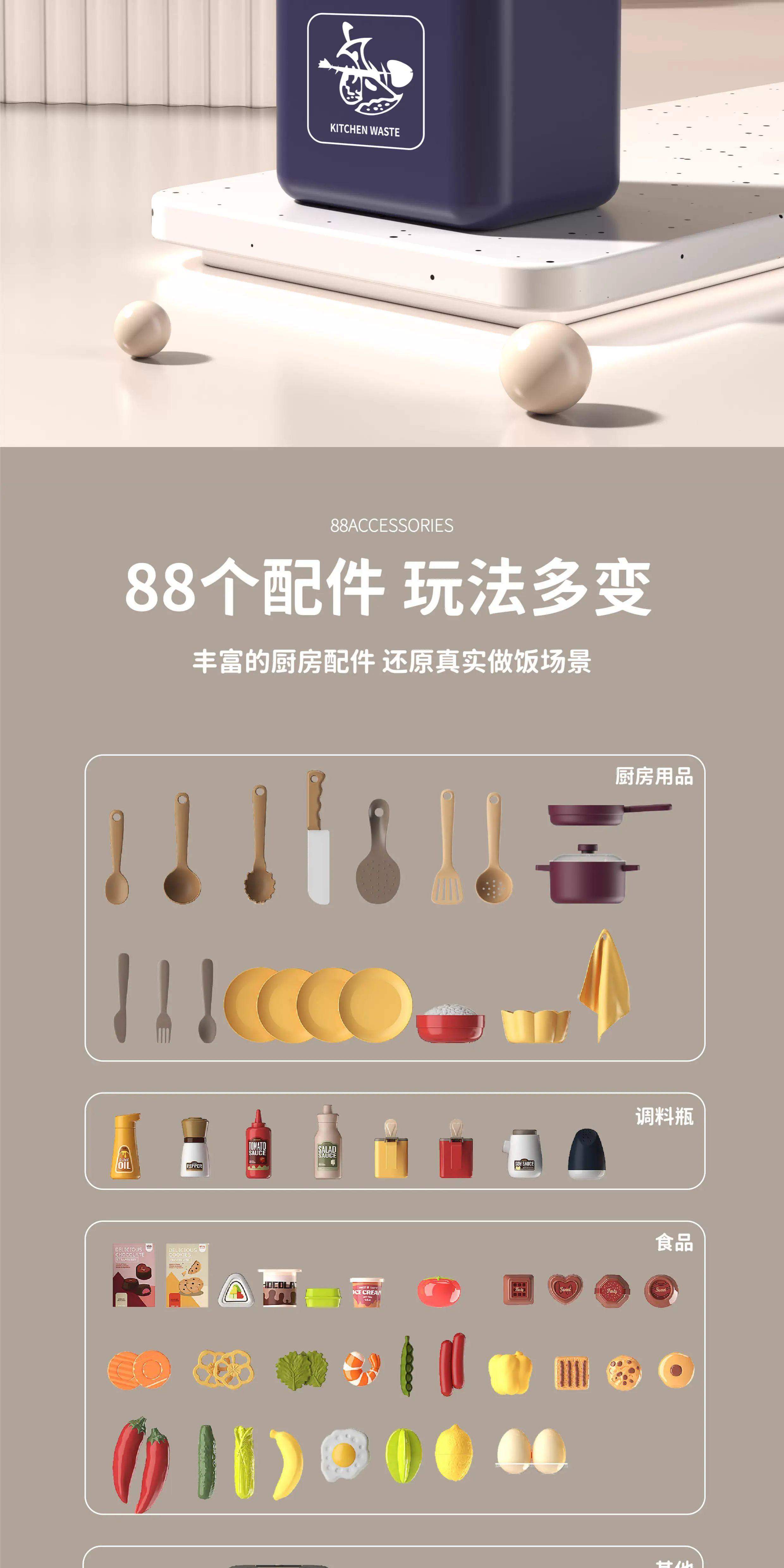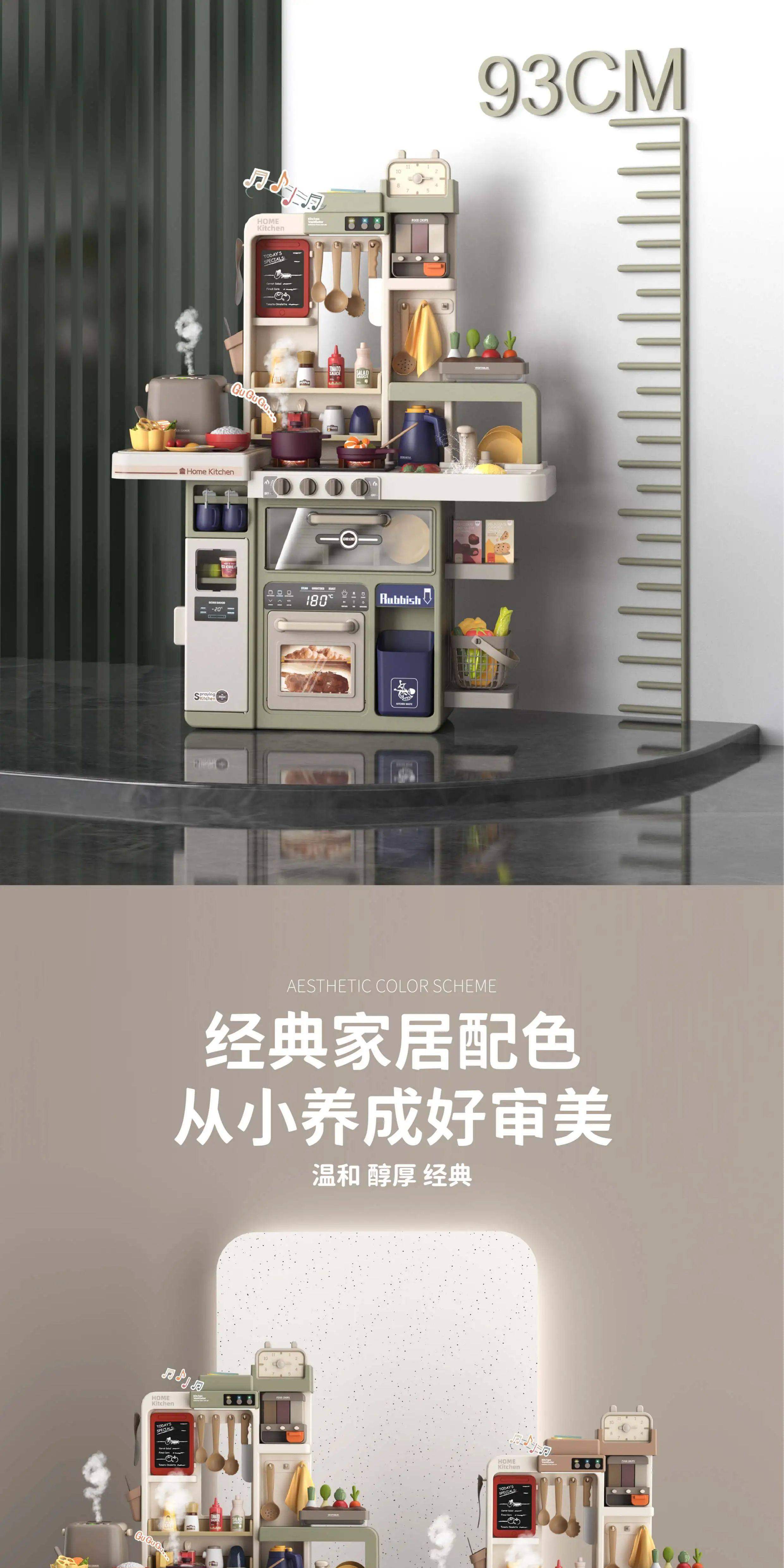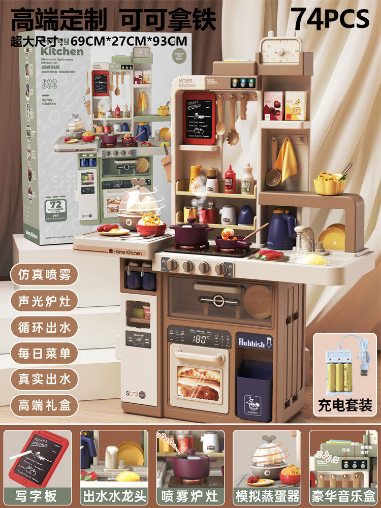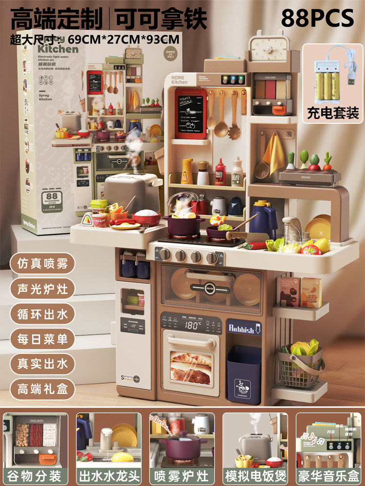 93cm标准版-可可拿铁【74配件/喷雾/声光/电动蒸蛋器/出水/音乐抽油烟机】电池版