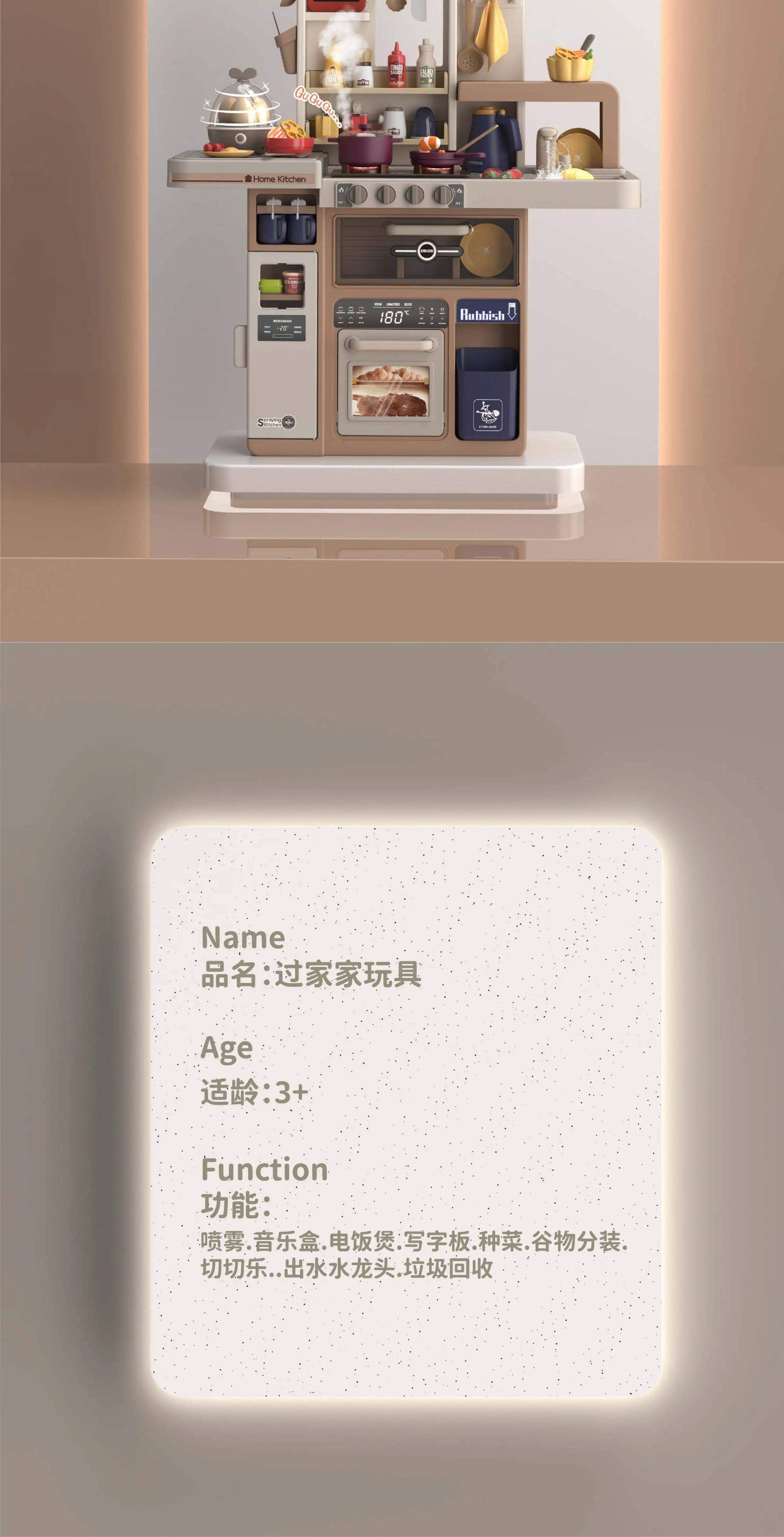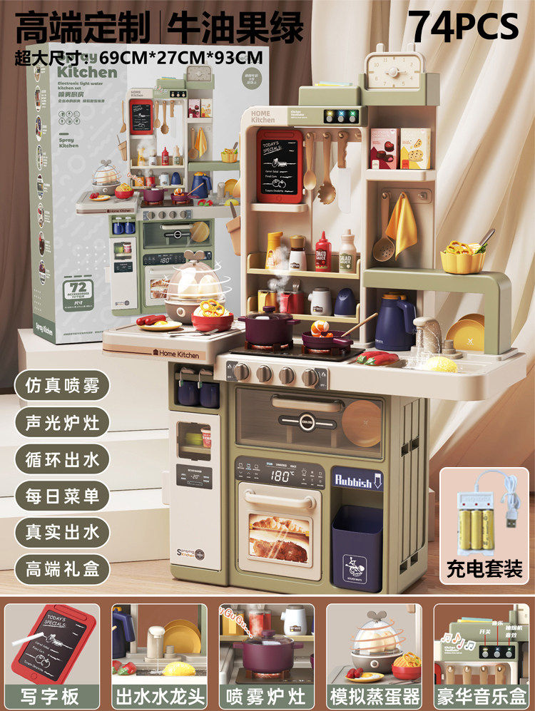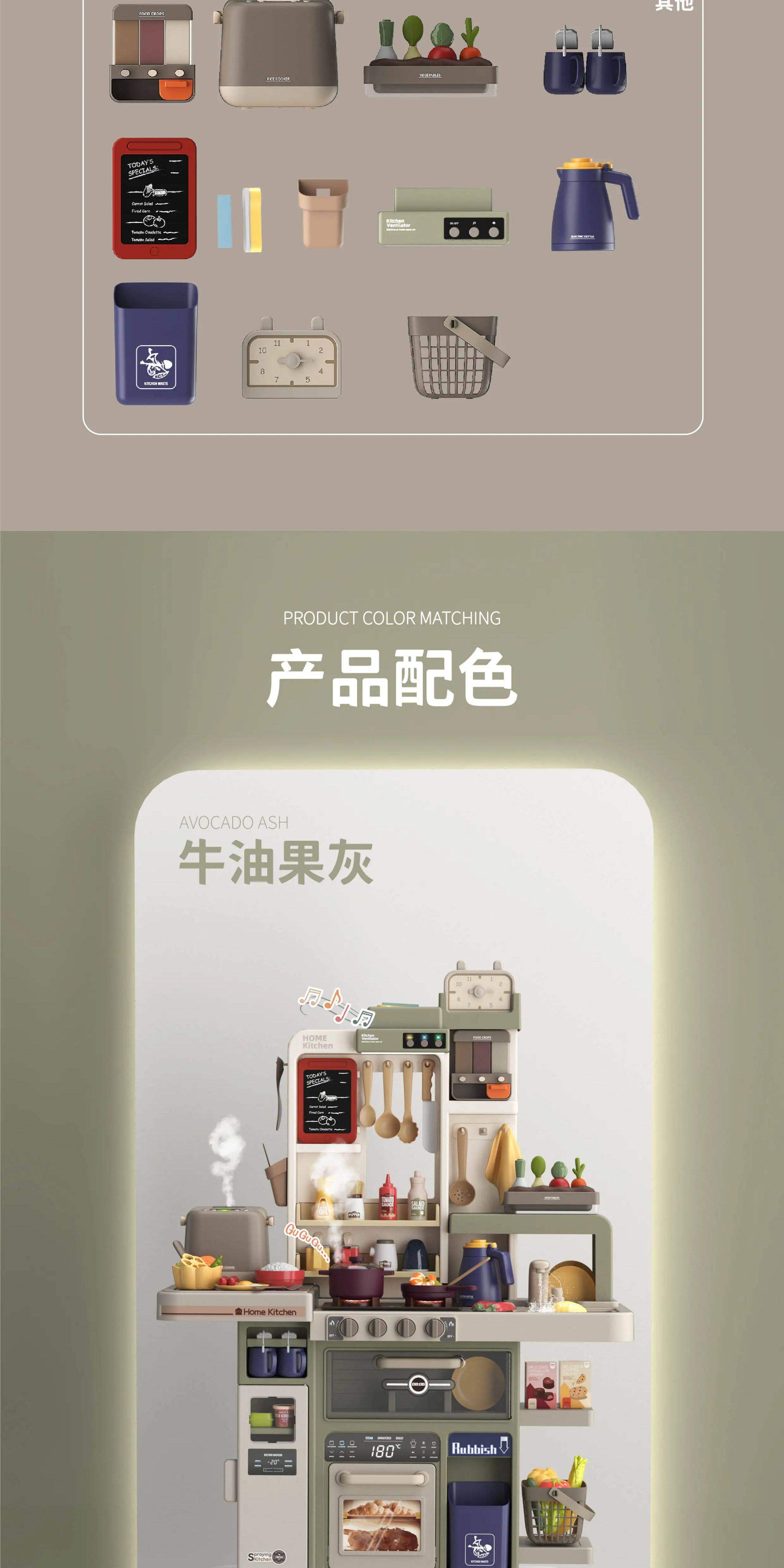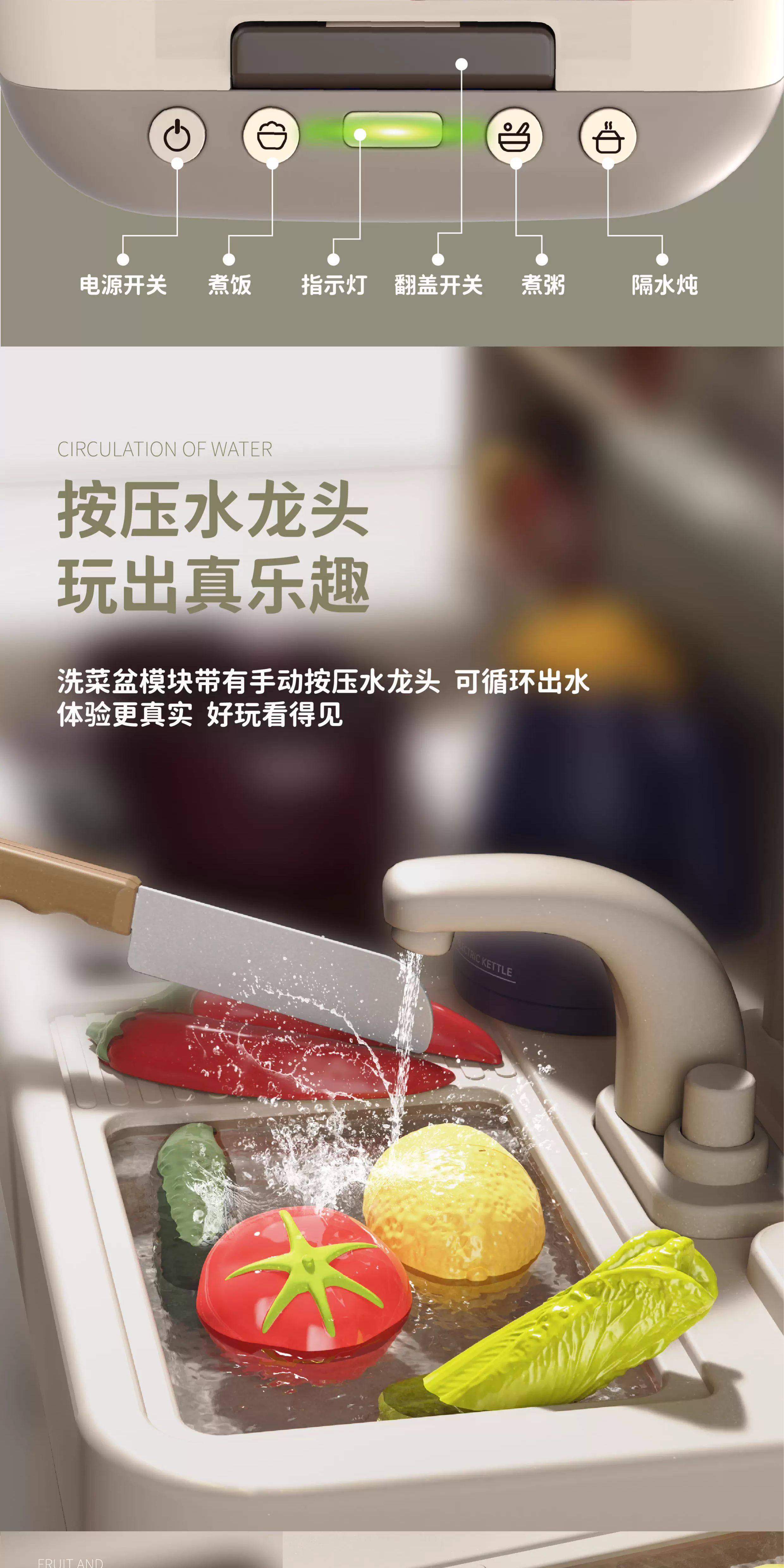 93cm标准版-可可拿铁【74配件/喷雾/声光/电动蒸蛋器/出水/音乐抽油烟机】电池版