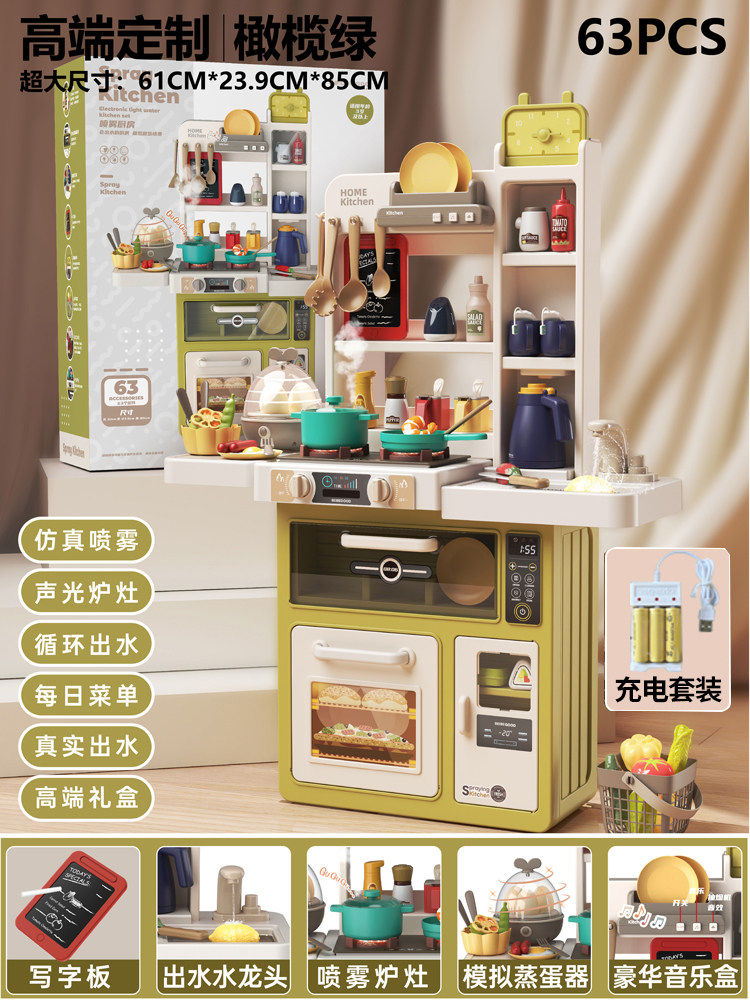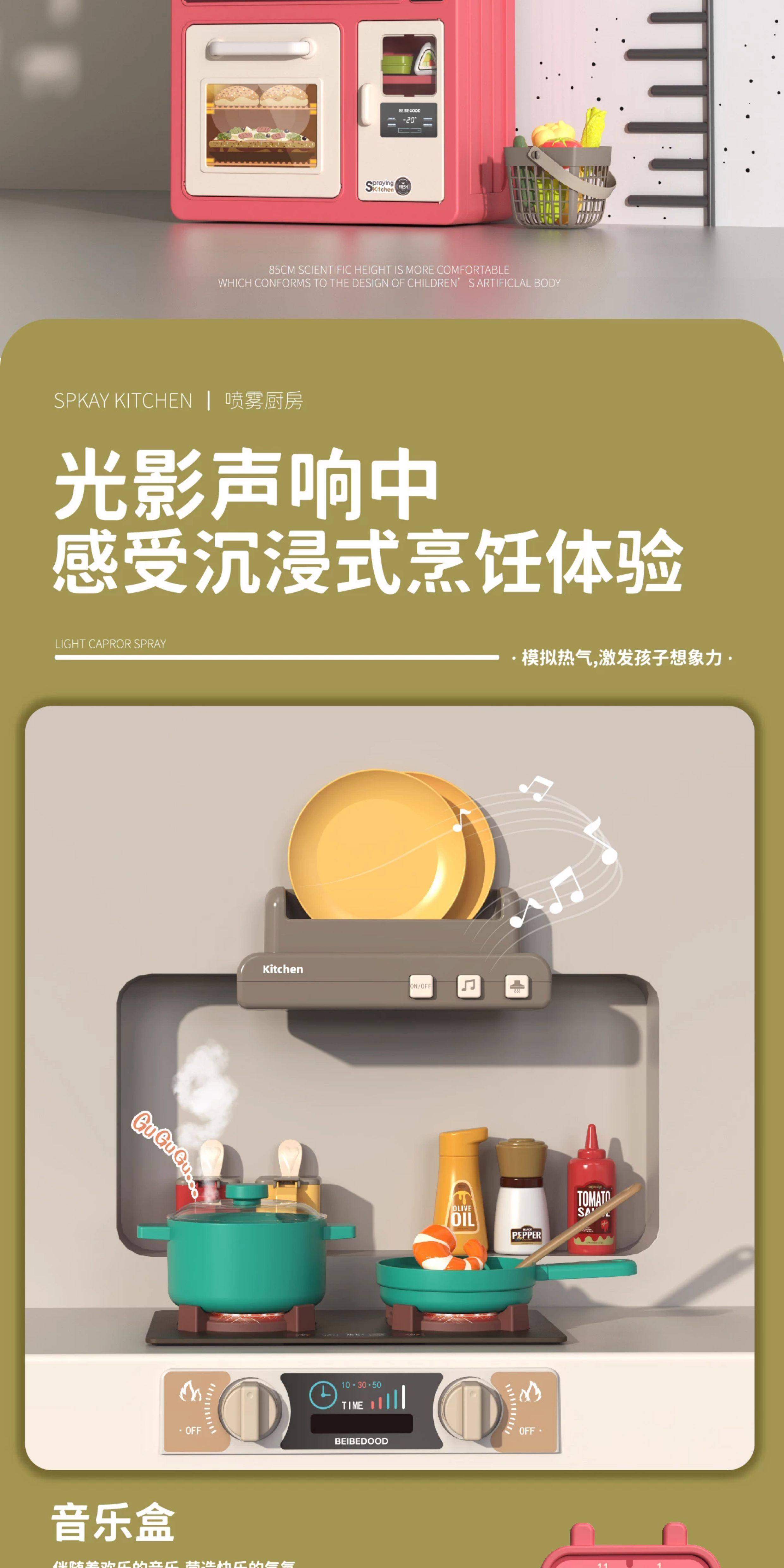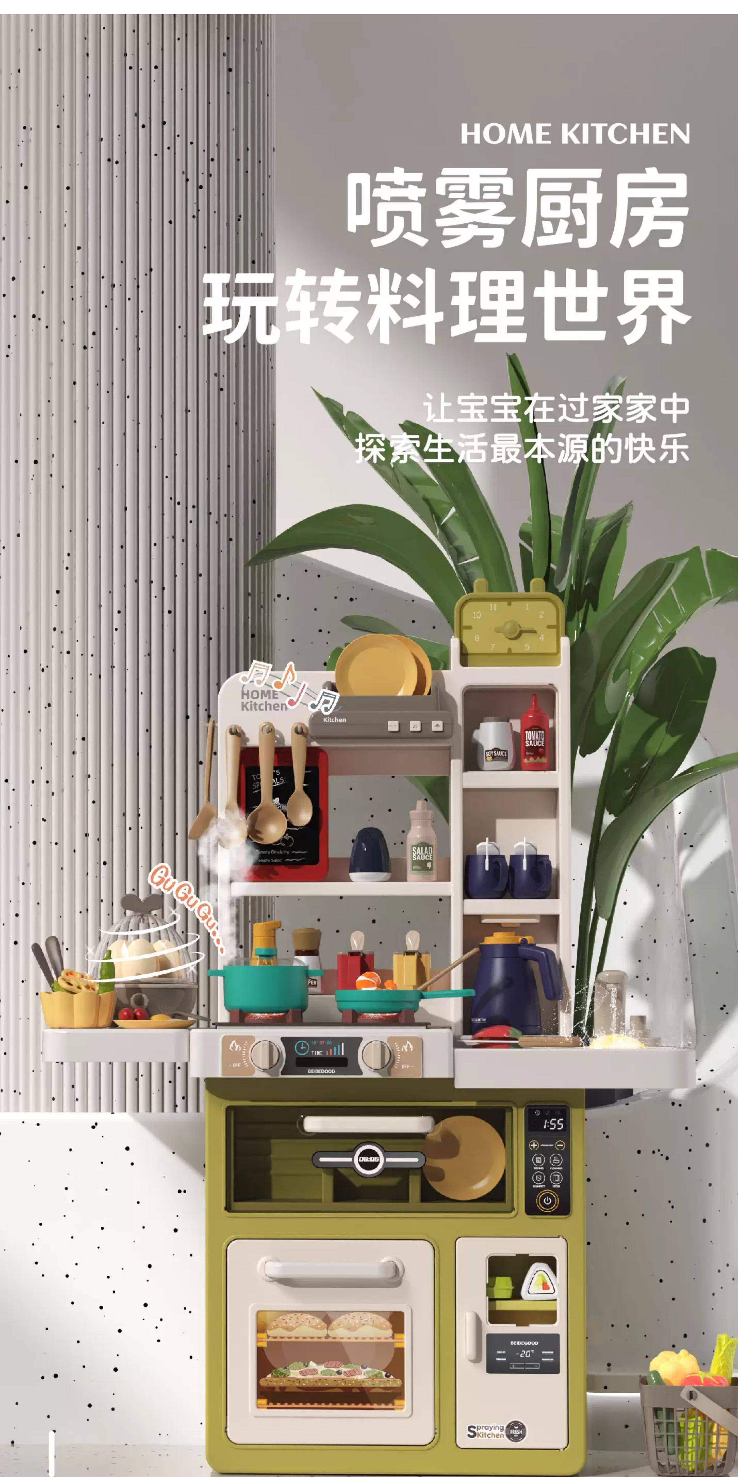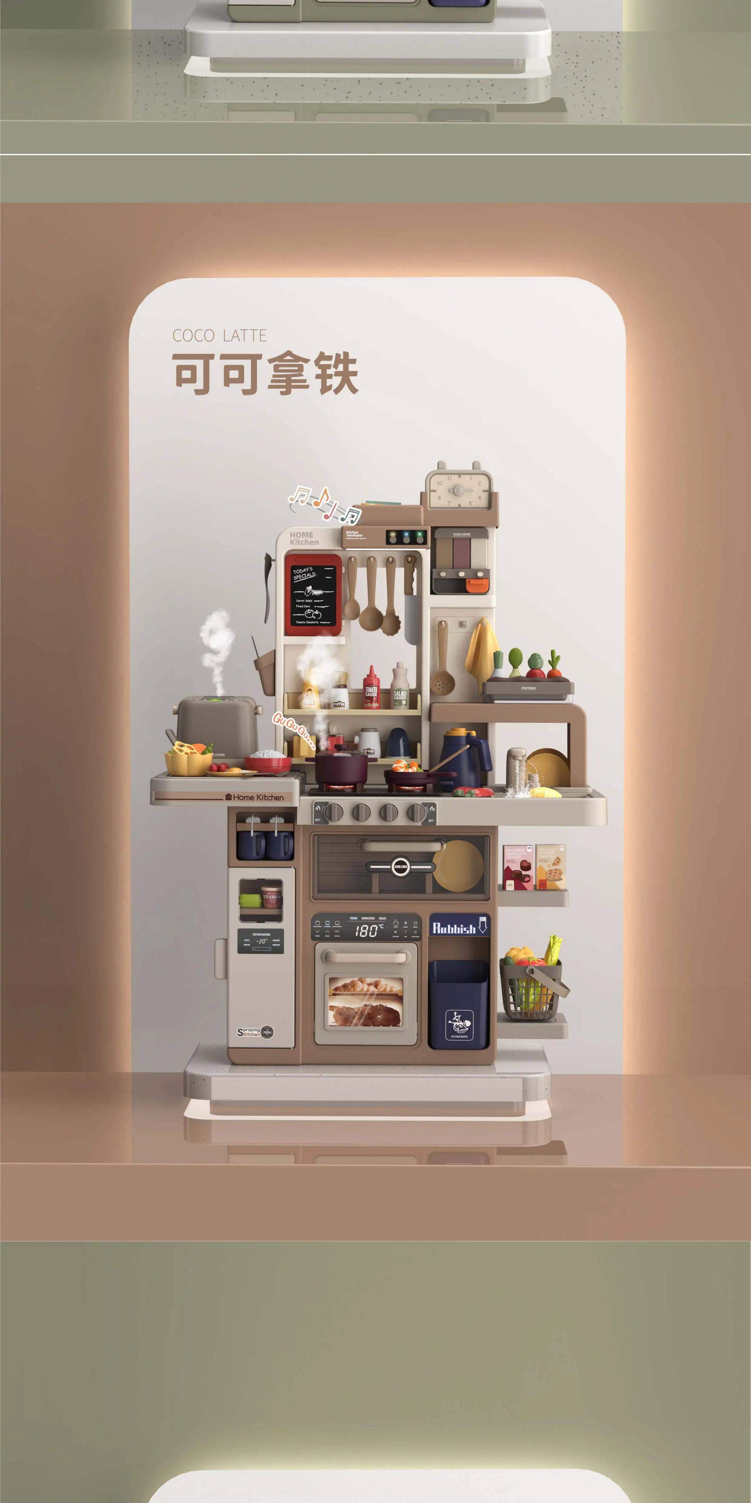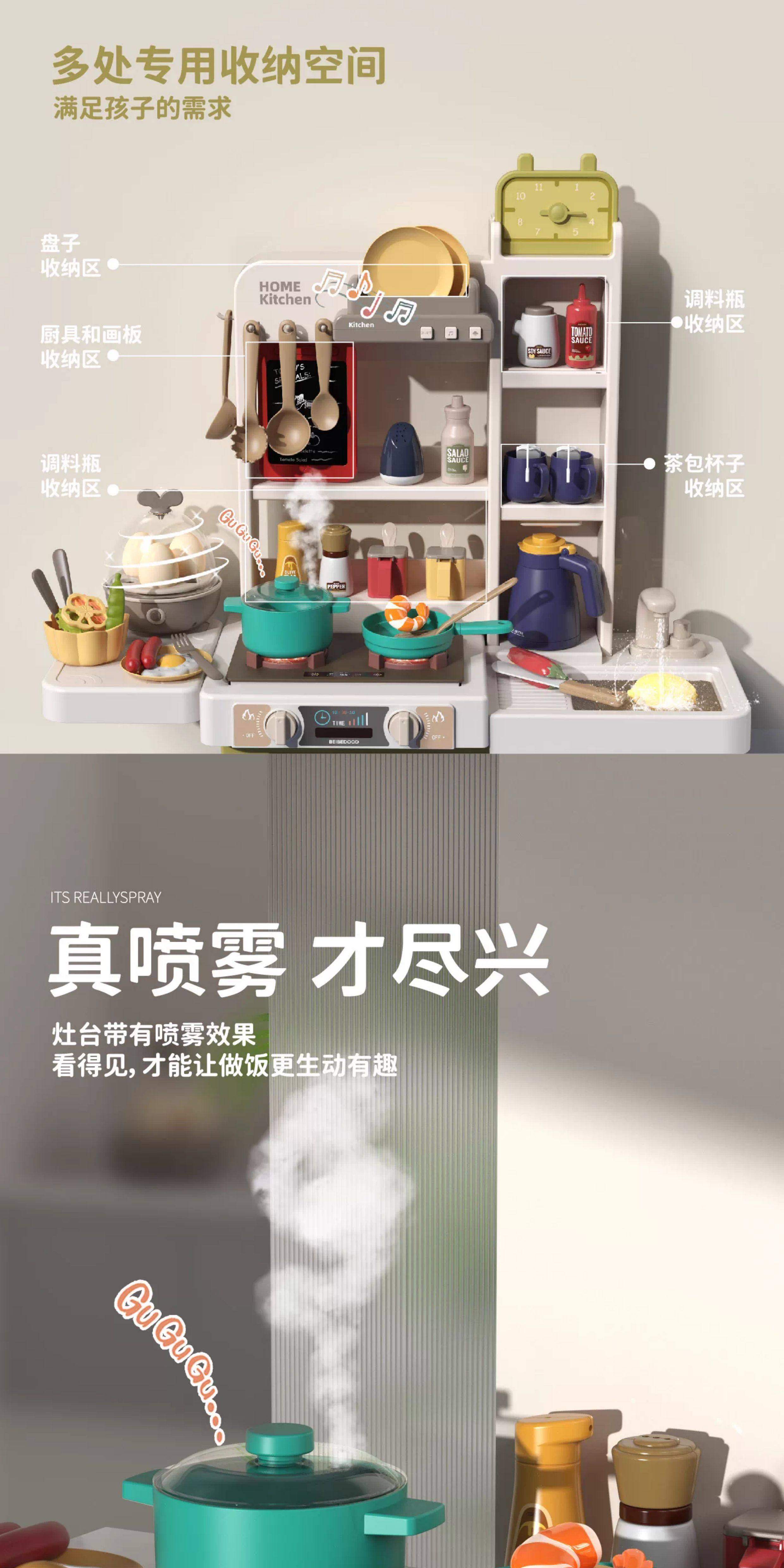 93cm标准版-可可拿铁【74配件/喷雾/声光/电动蒸蛋器/出水/音乐抽油烟机】电池版