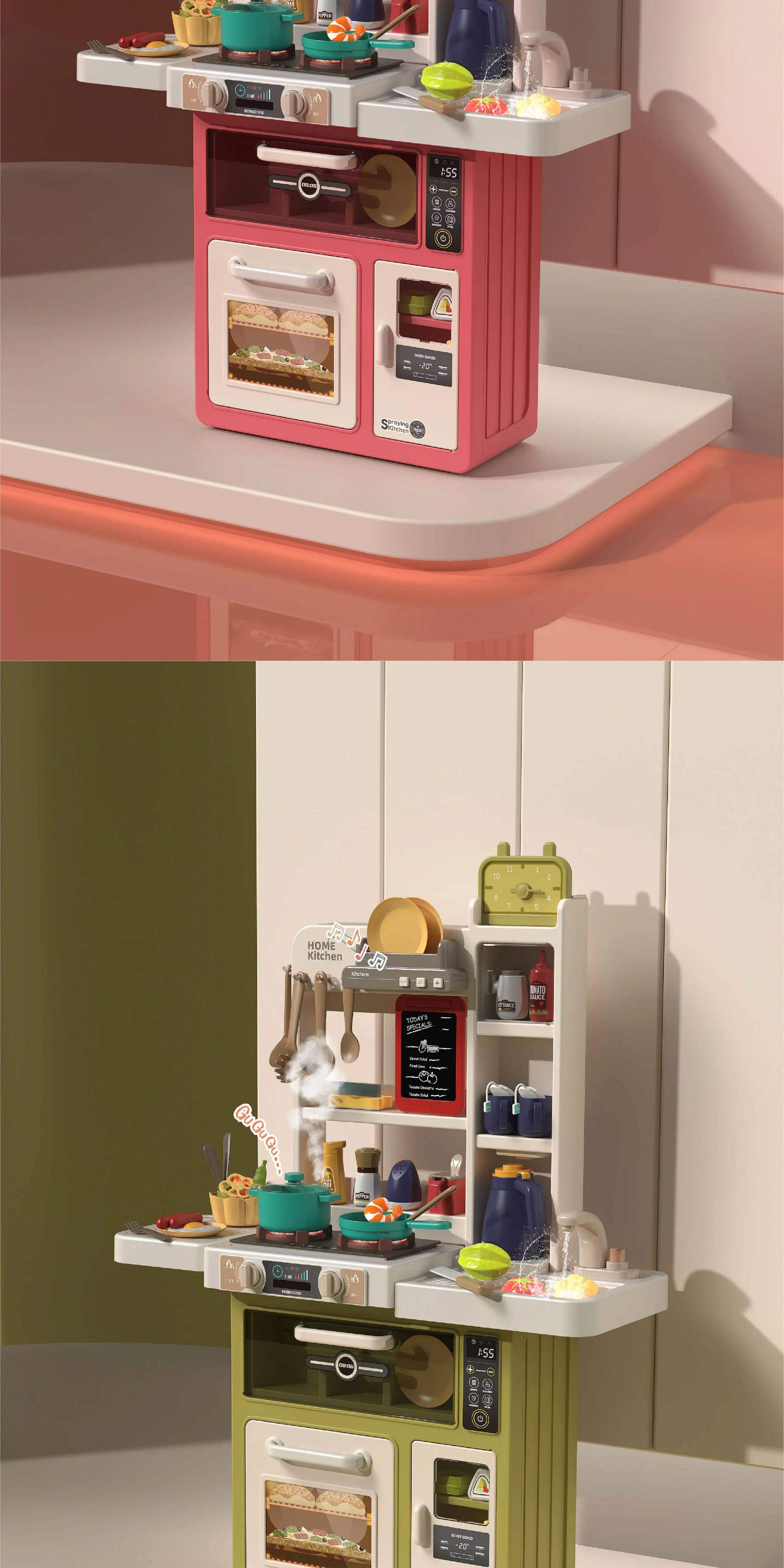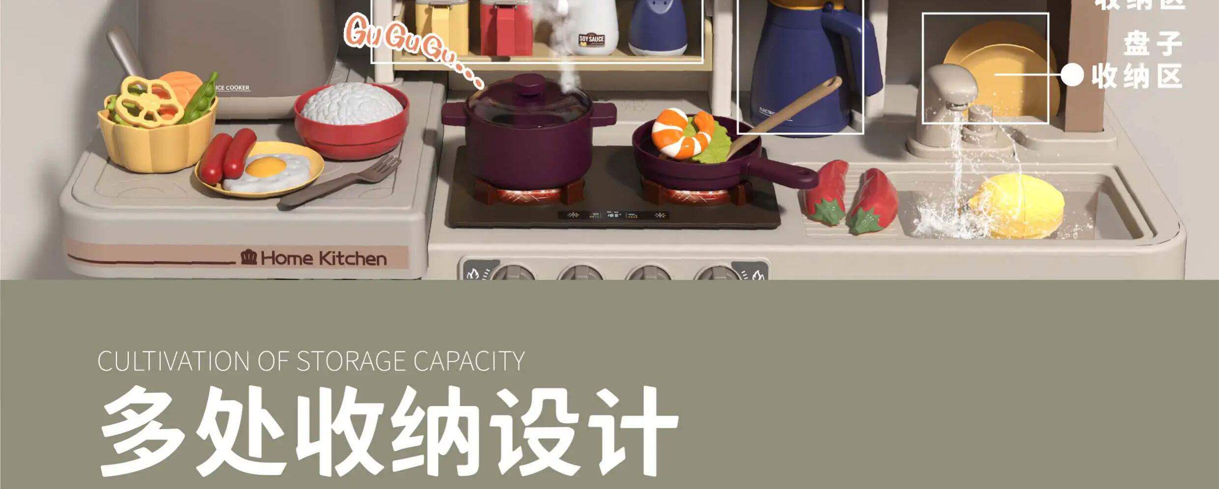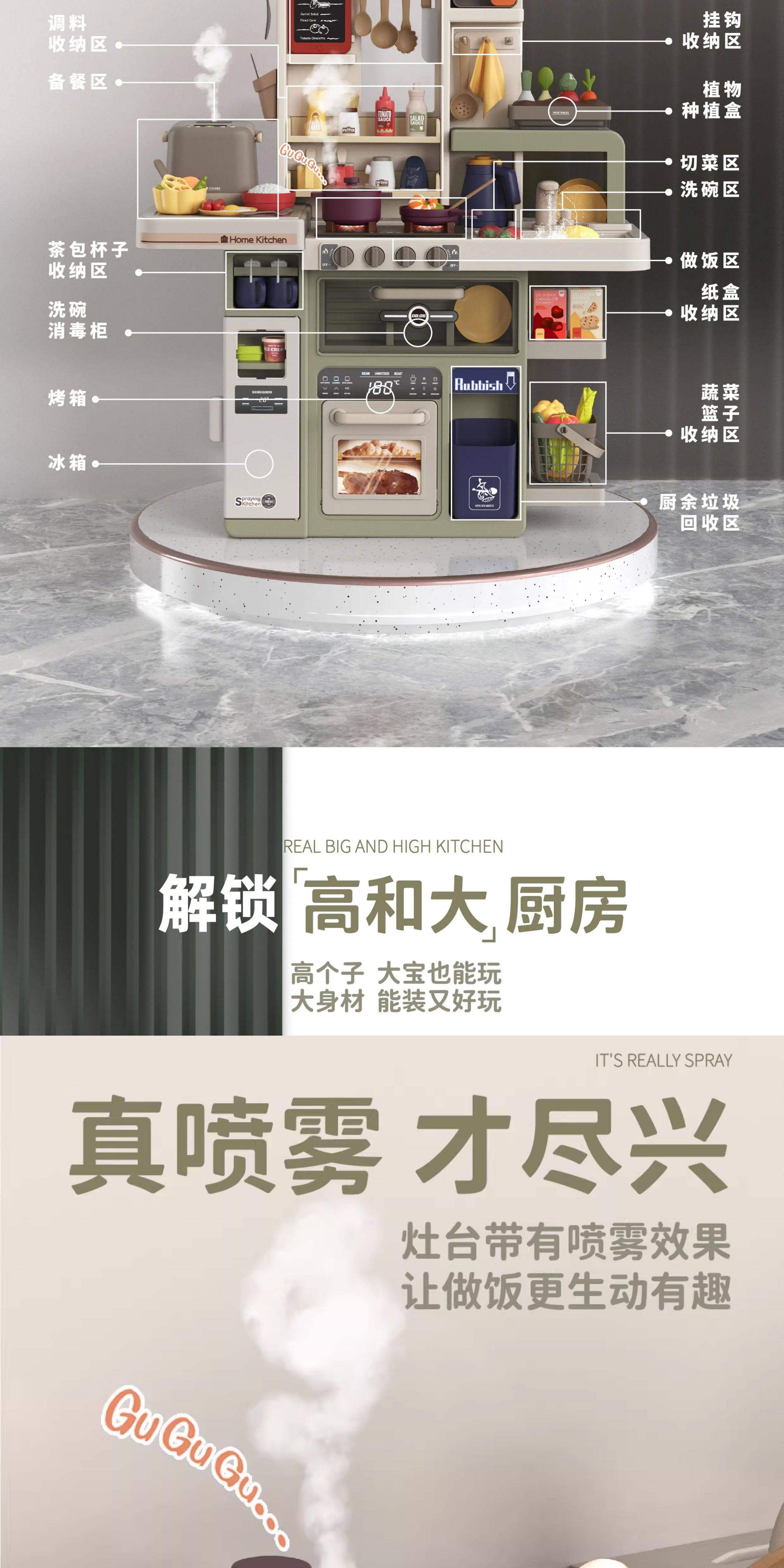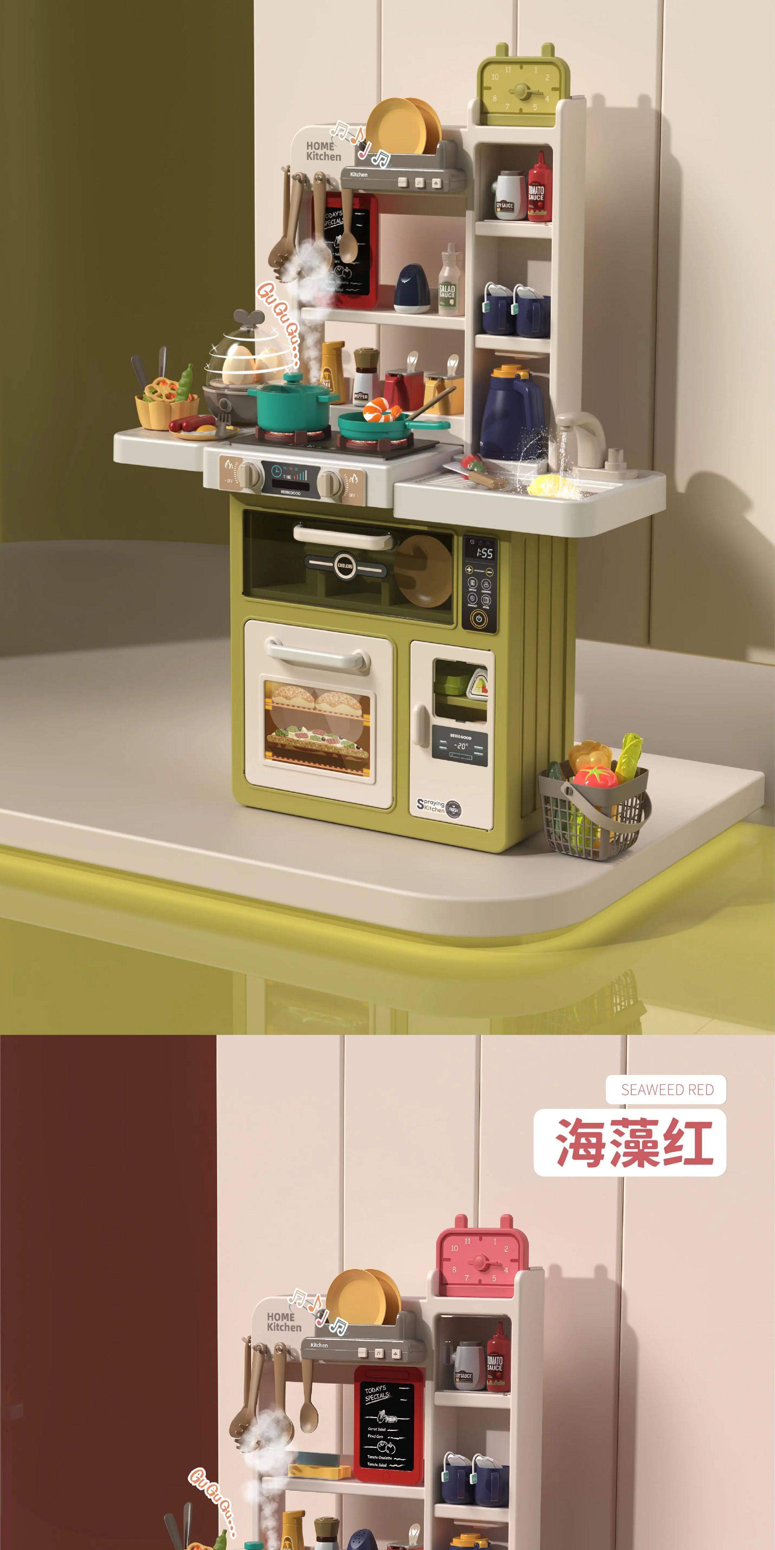 93cm标准版-可可拿铁【74配件/喷雾/声光/电动蒸蛋器/出水/音乐抽油烟机】电池版