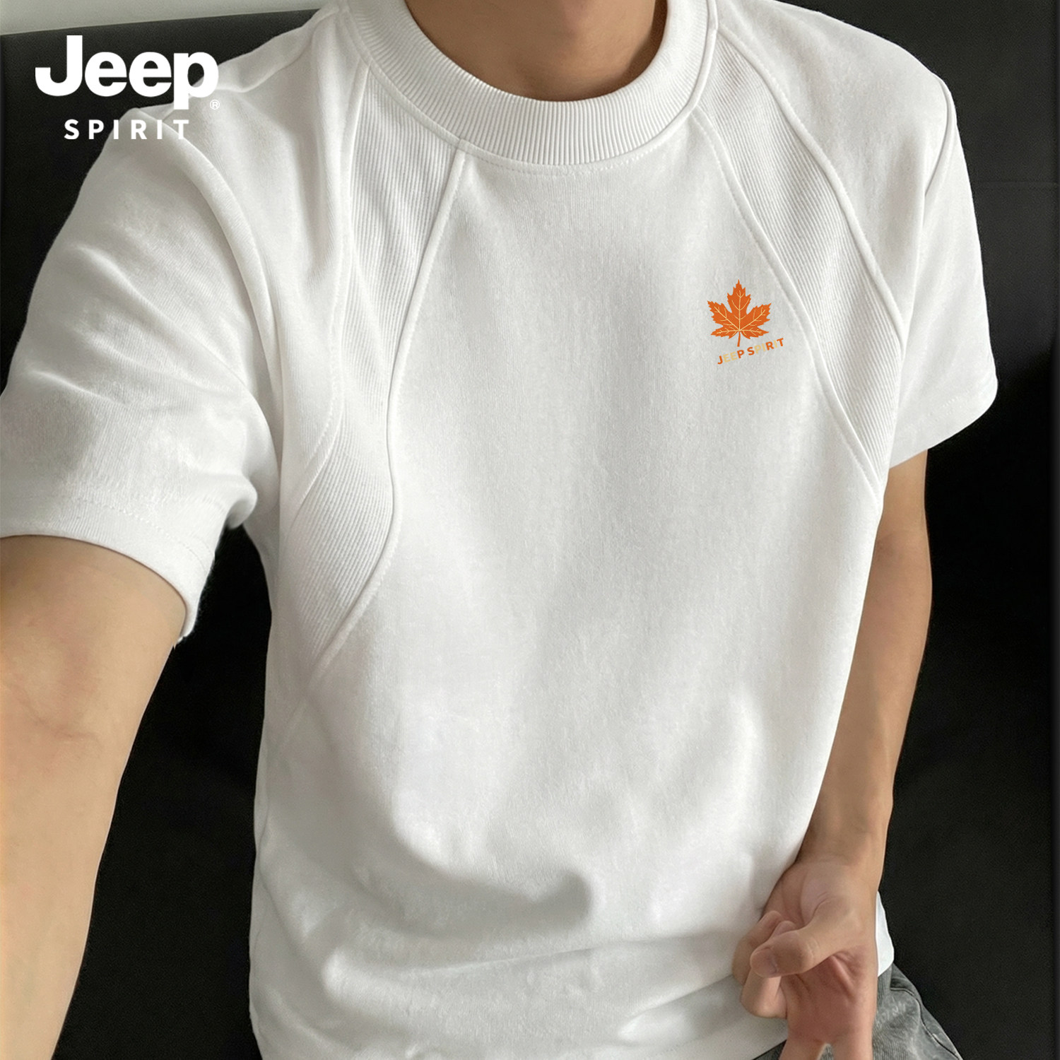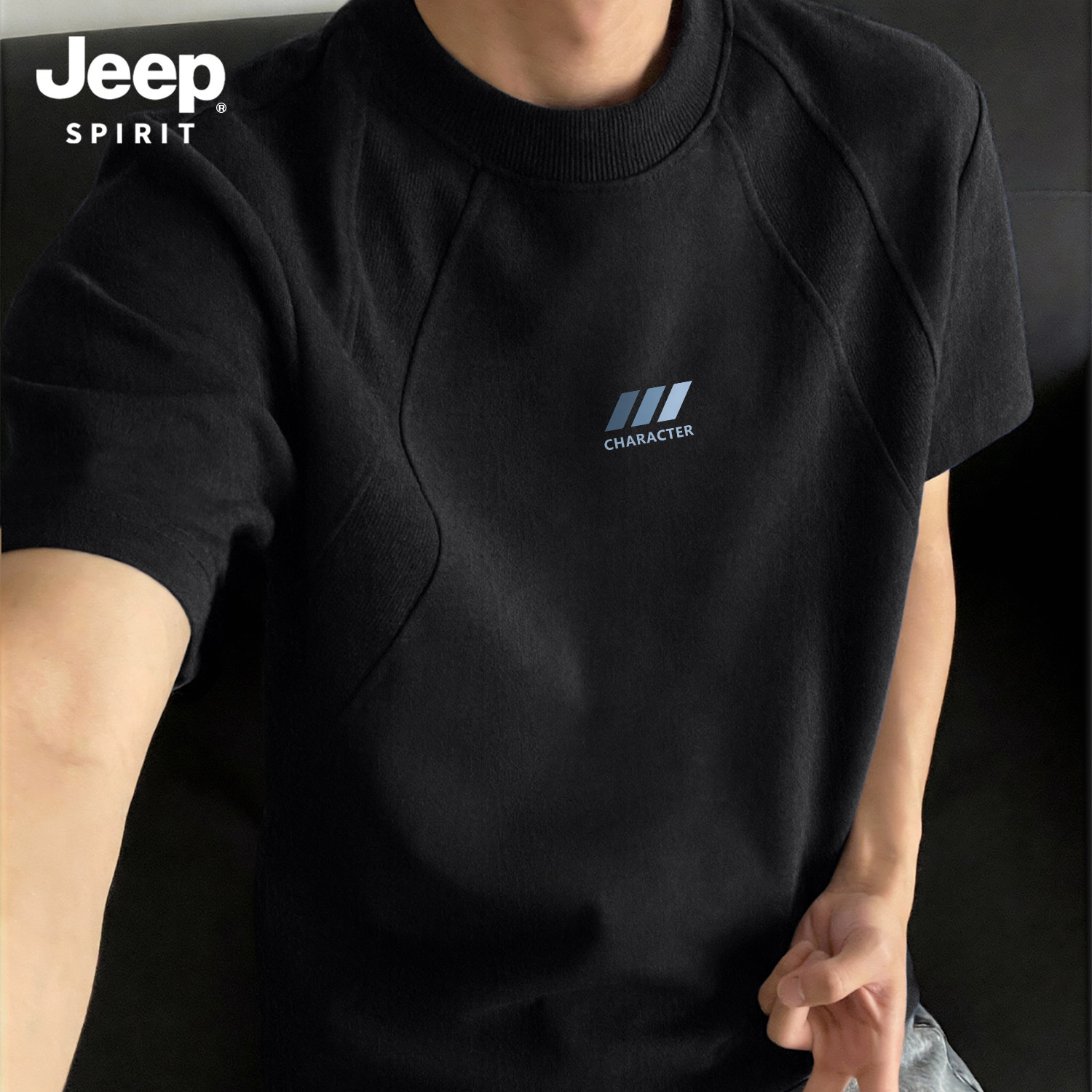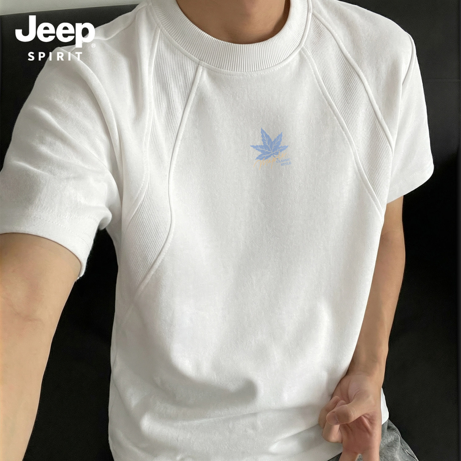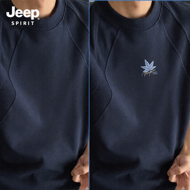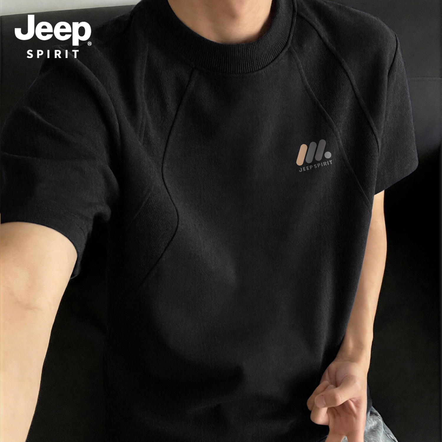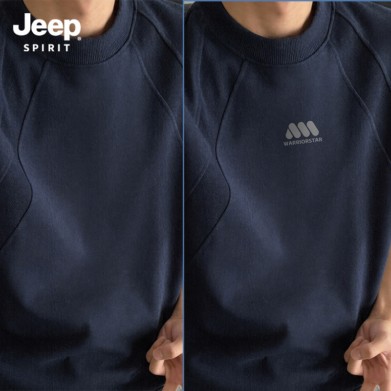 Jeep吉普重磅拼接短袖T恤夏季cleanfit设计感半袖美式宽松五分袖