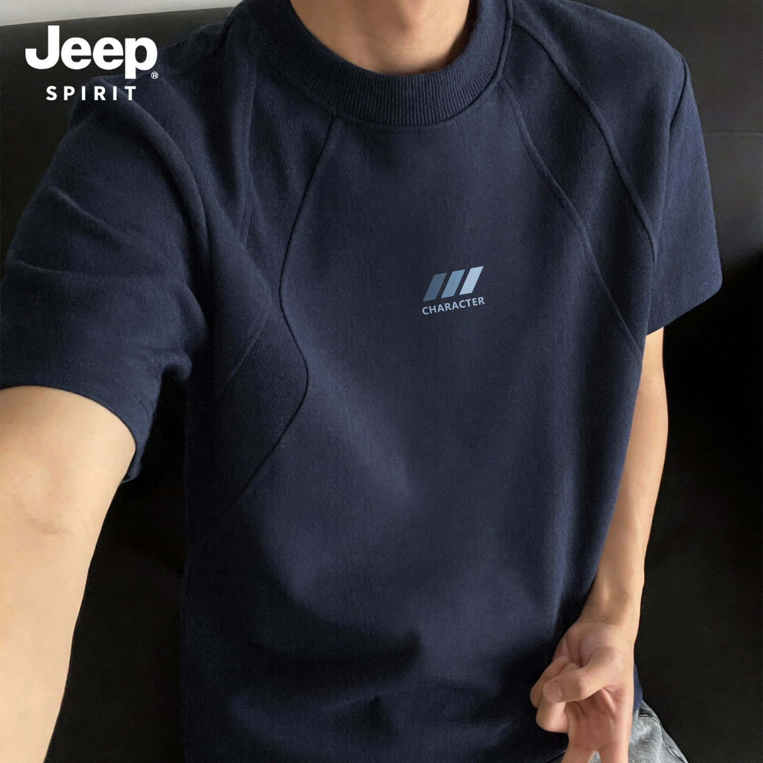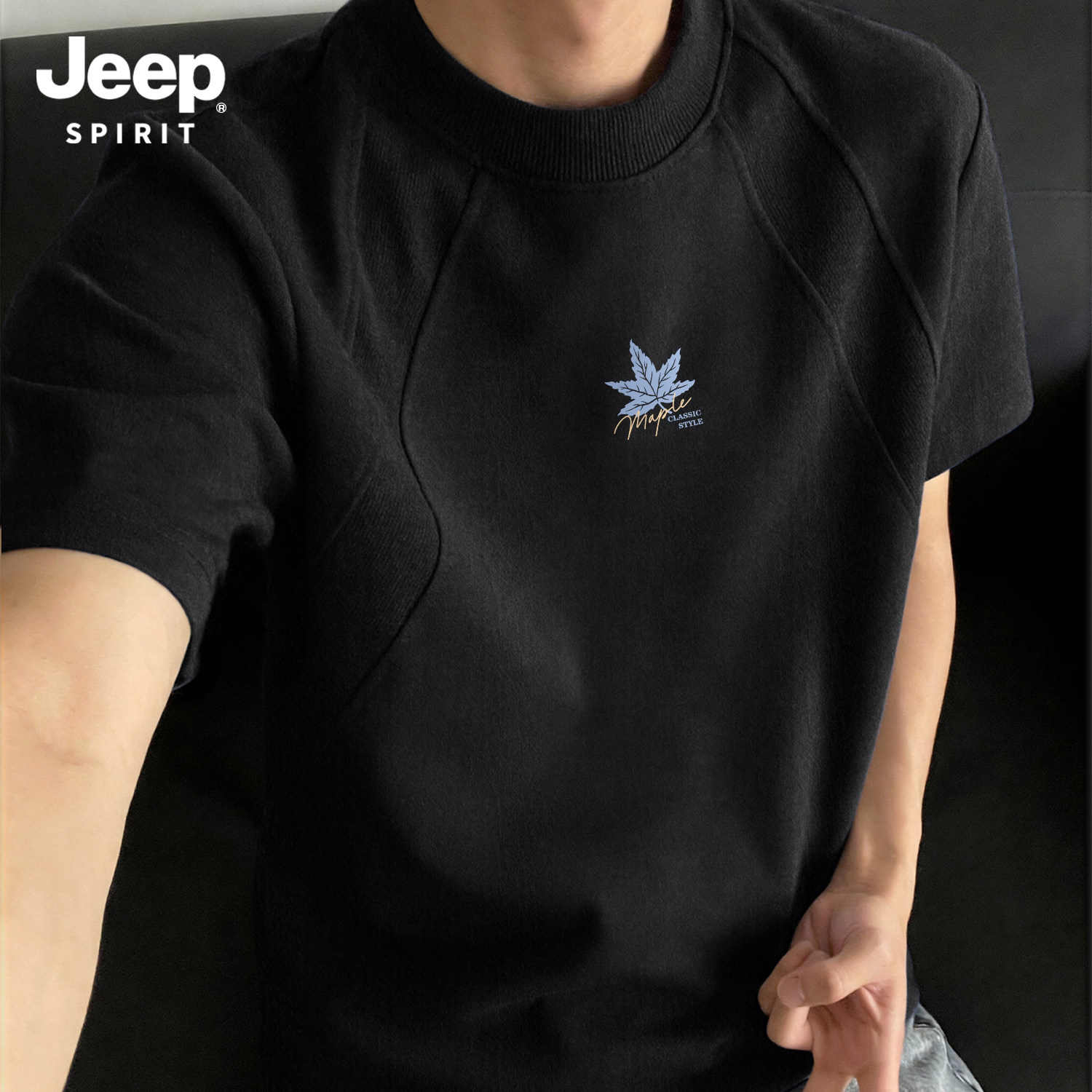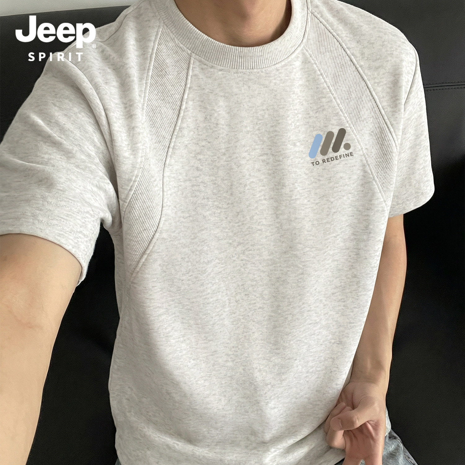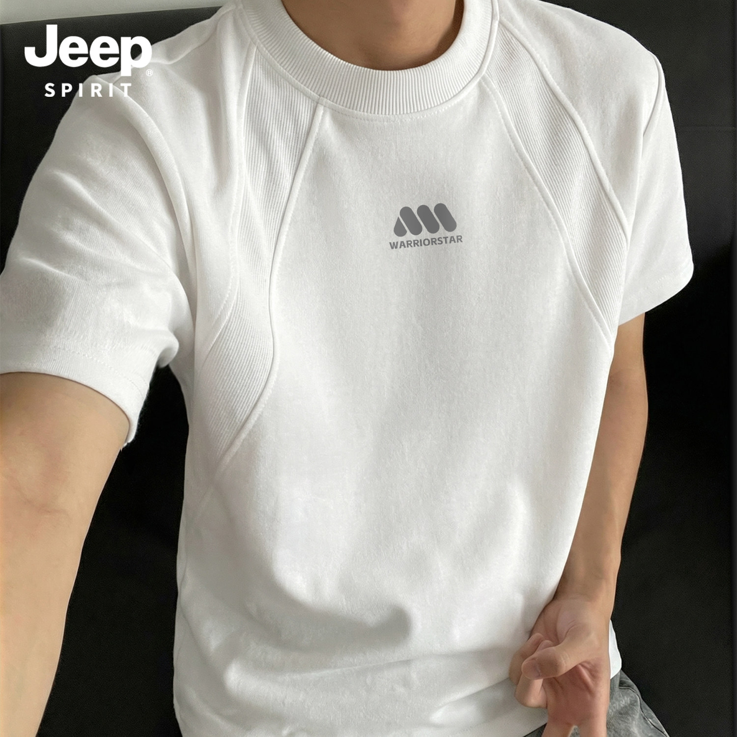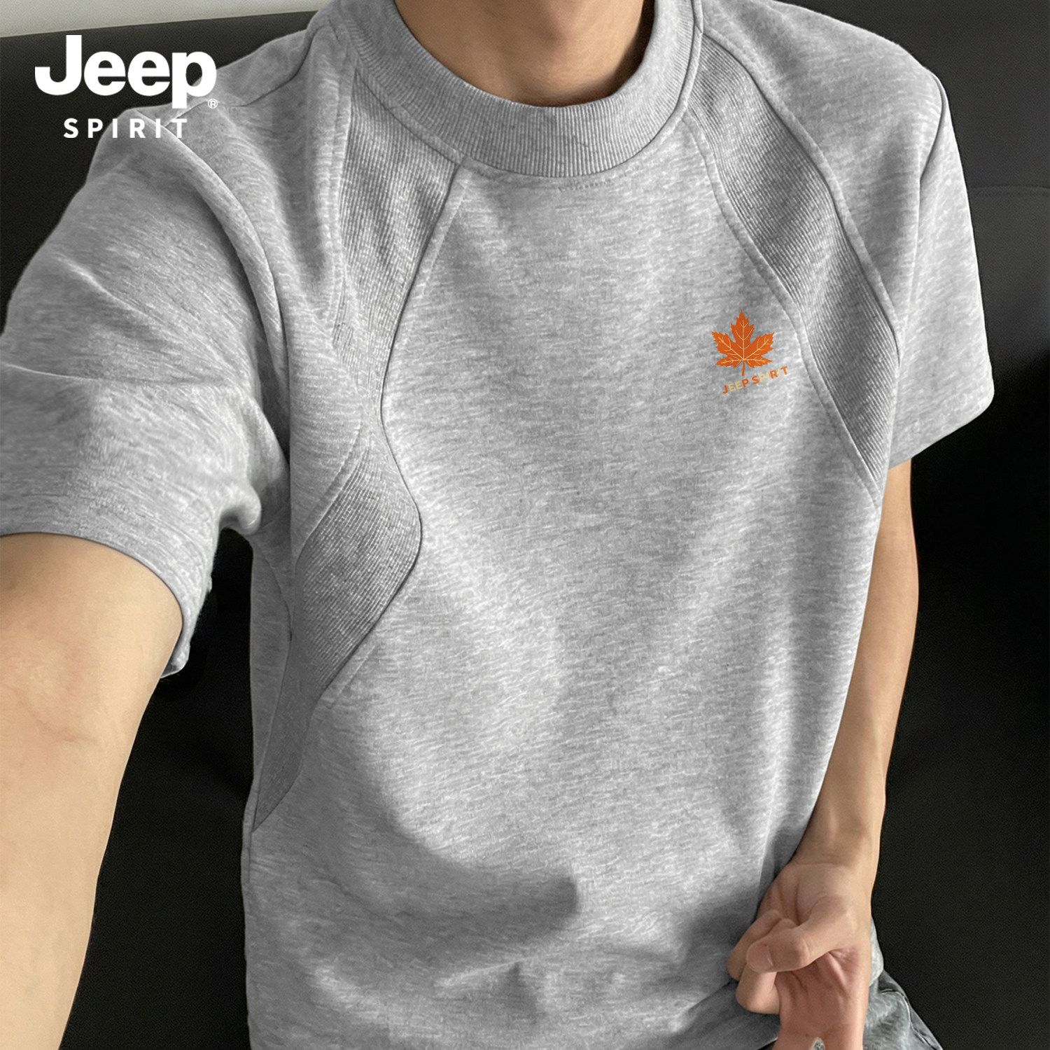 Jeep吉普重磅拼接短袖T恤夏季cleanfit设计感半袖美式宽松五分袖