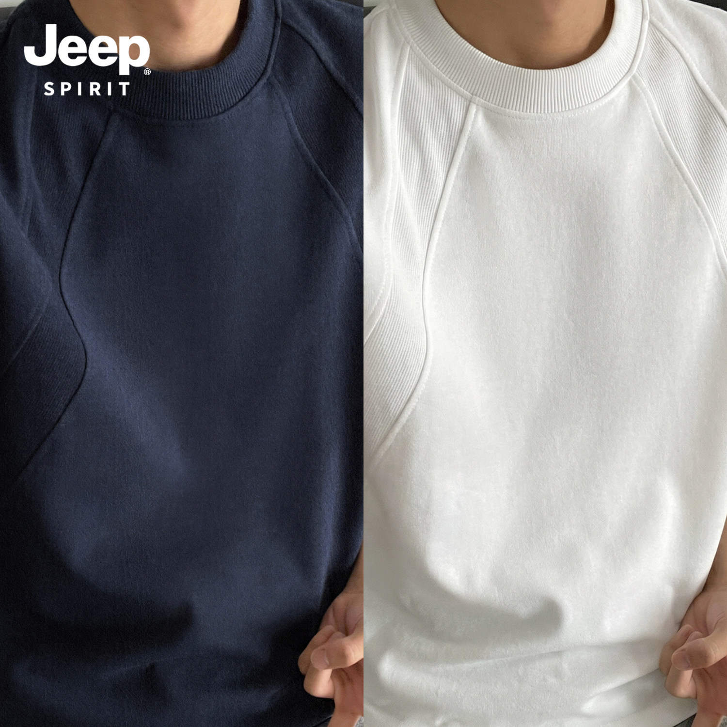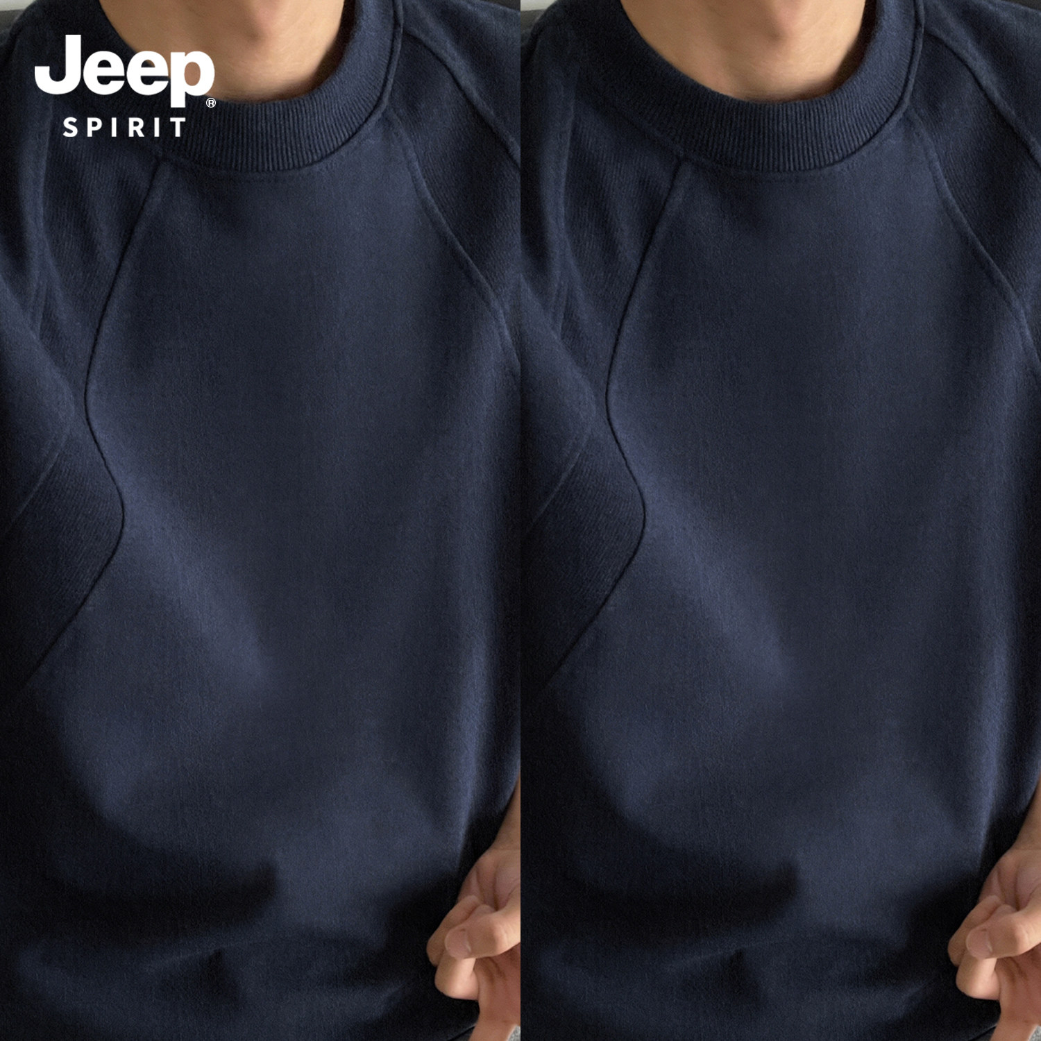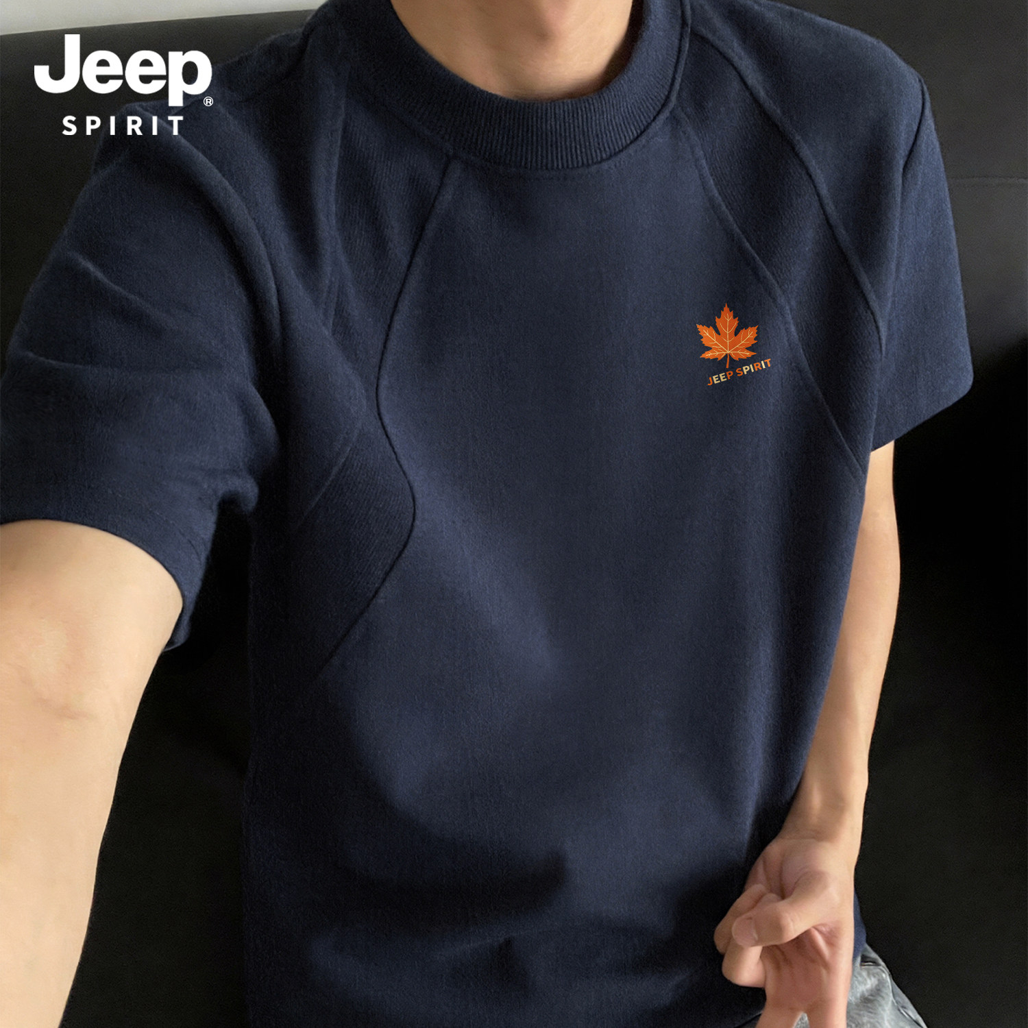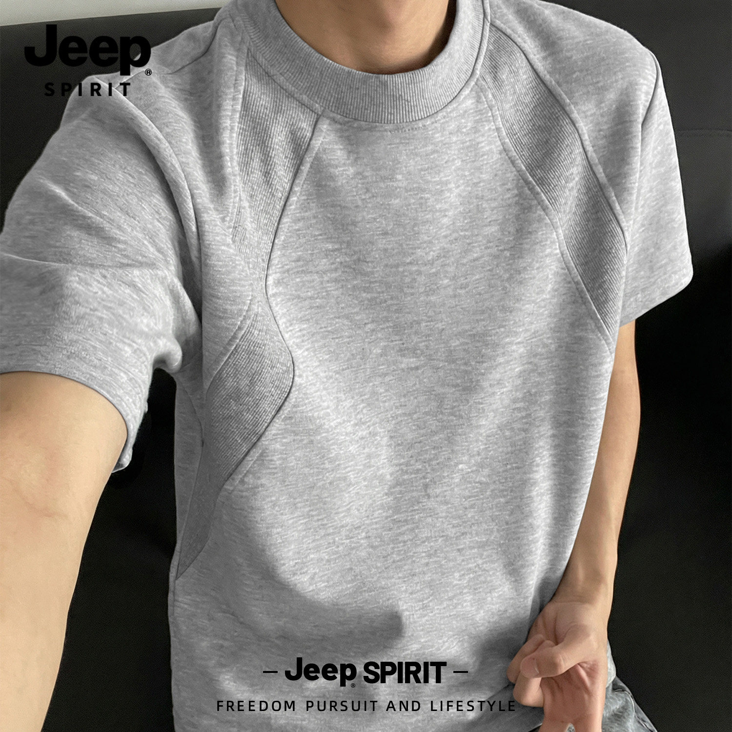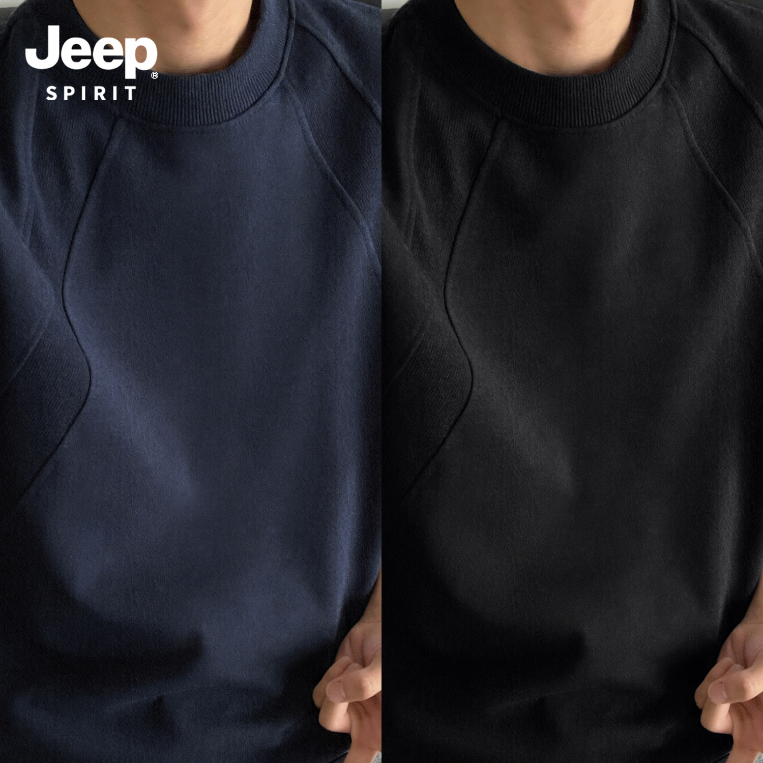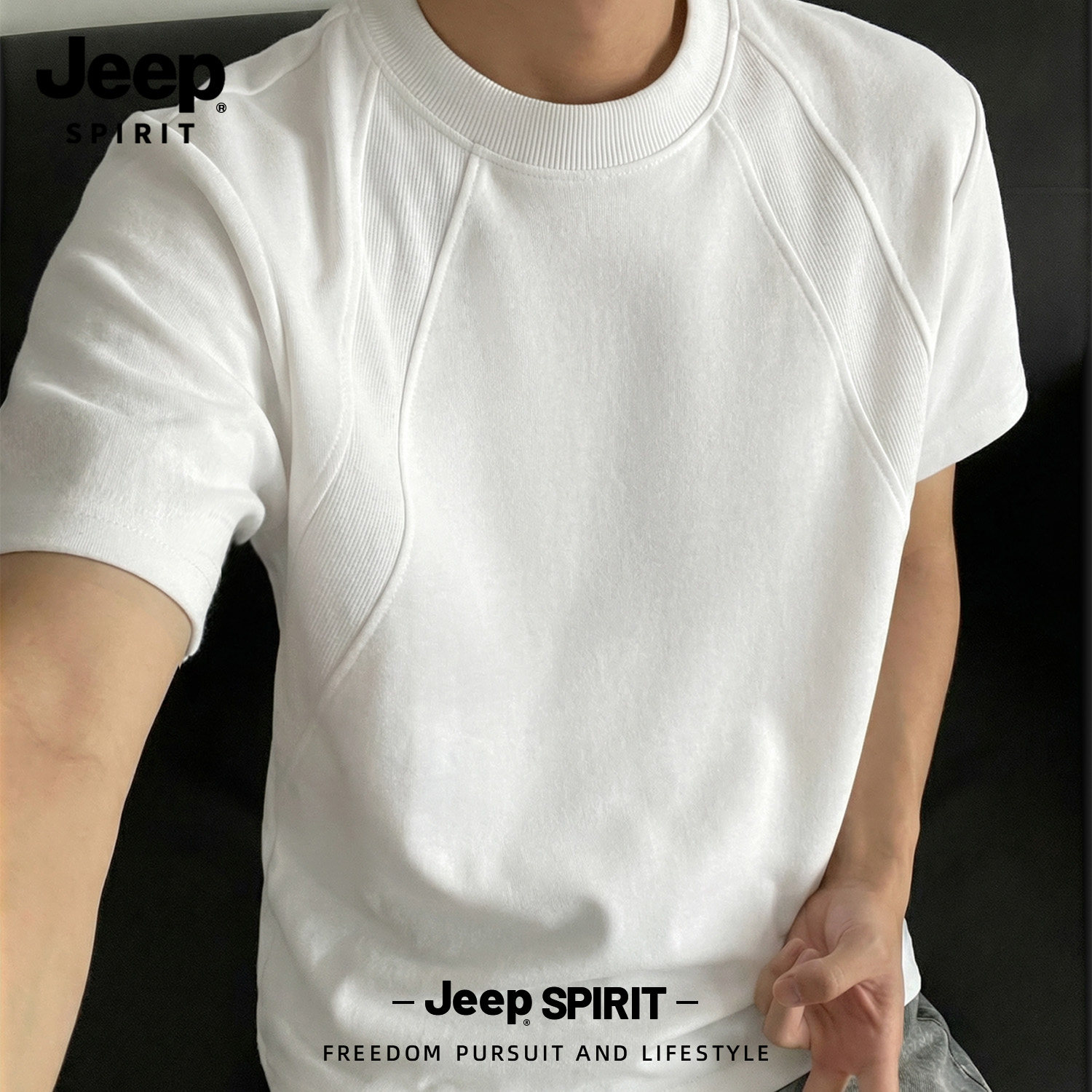 Jeep吉普重磅拼接短袖T恤夏季cleanfit设计感半袖美式宽松五分袖