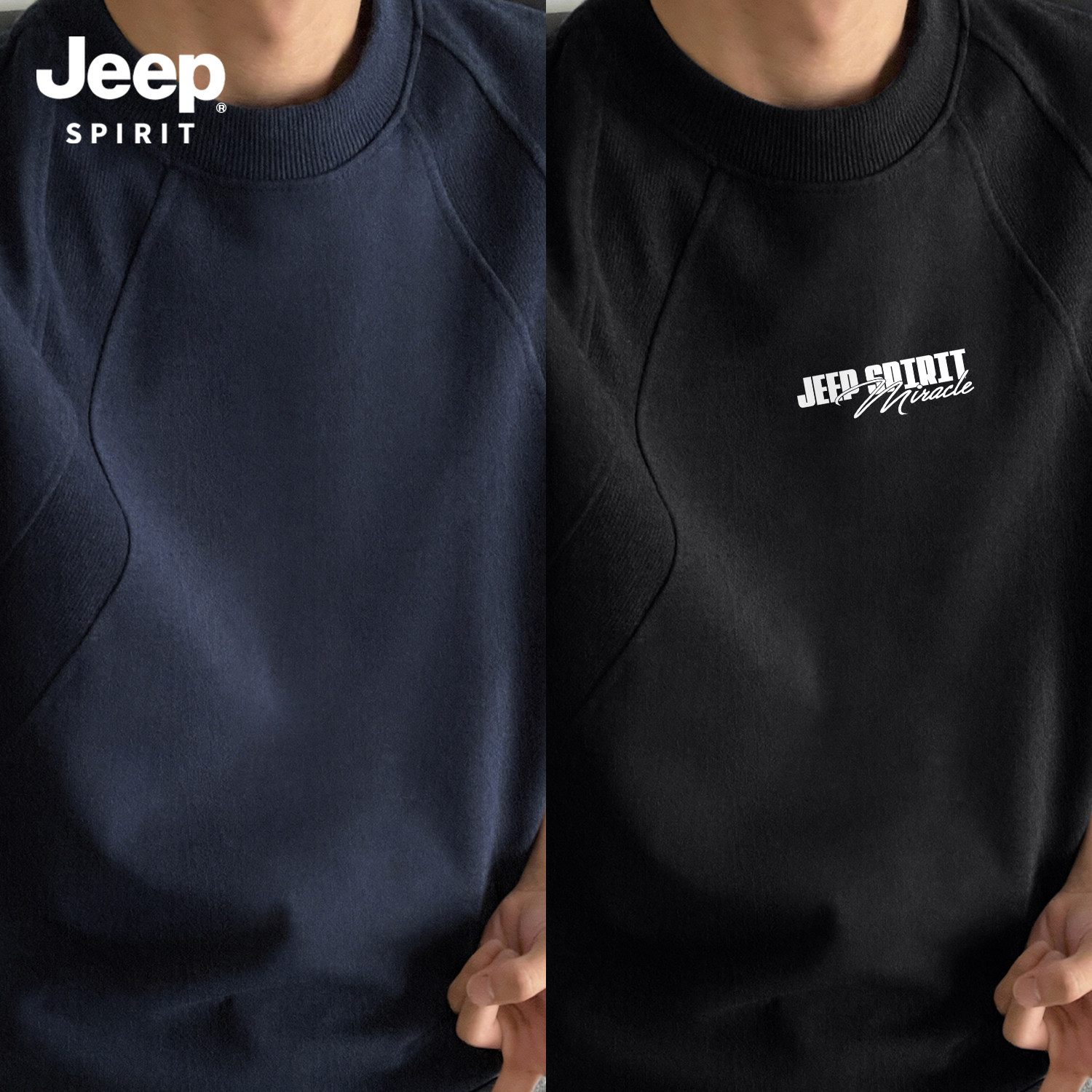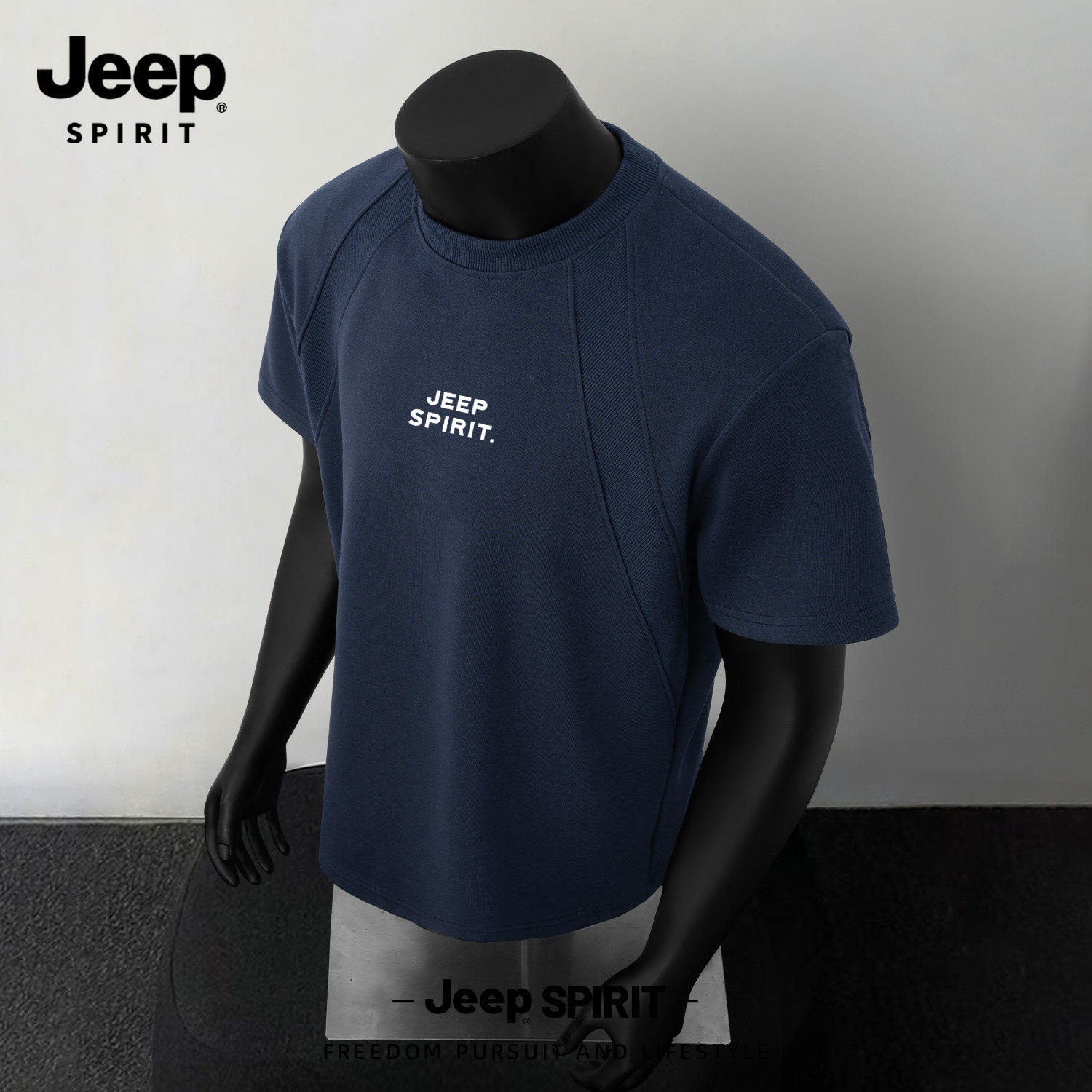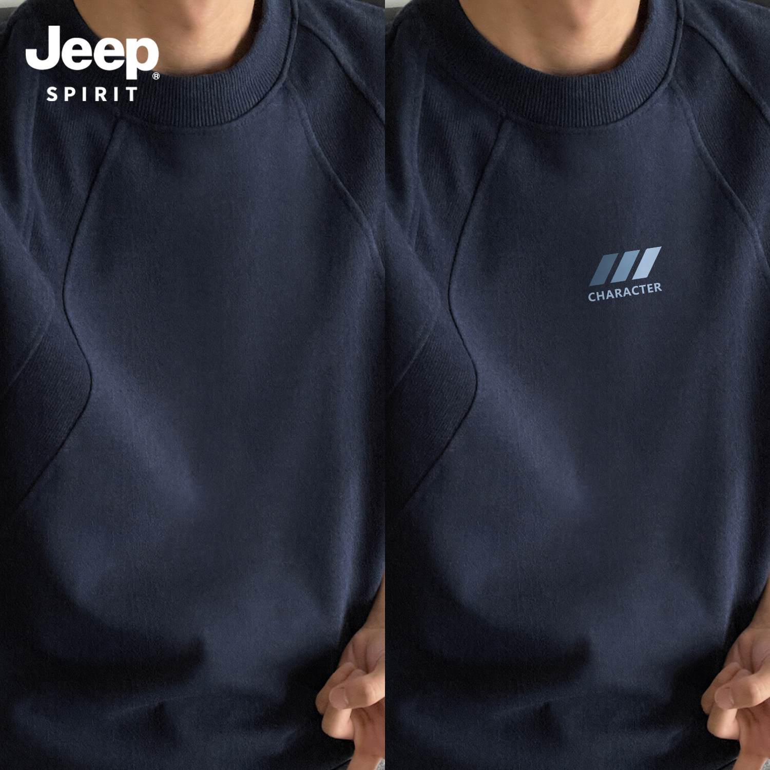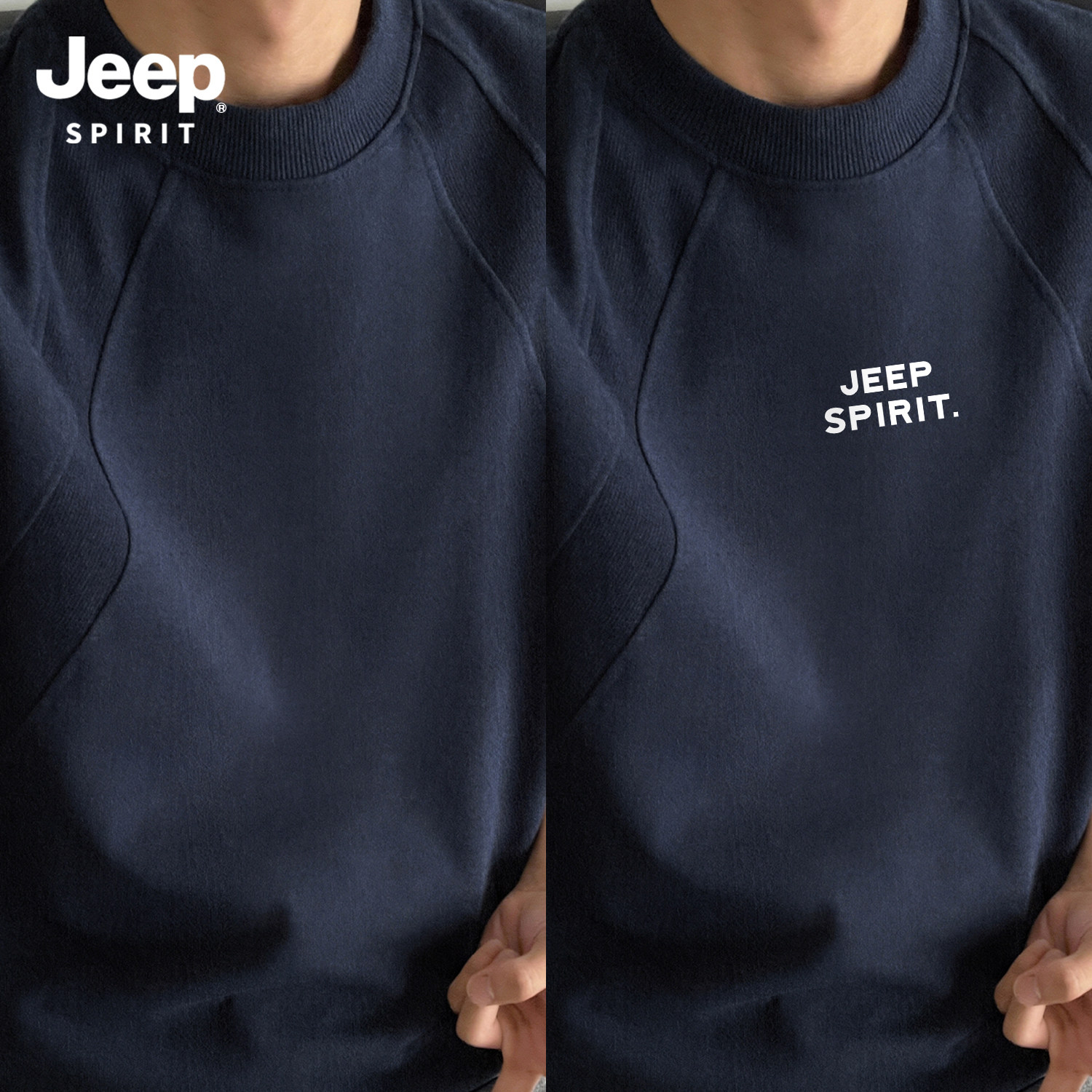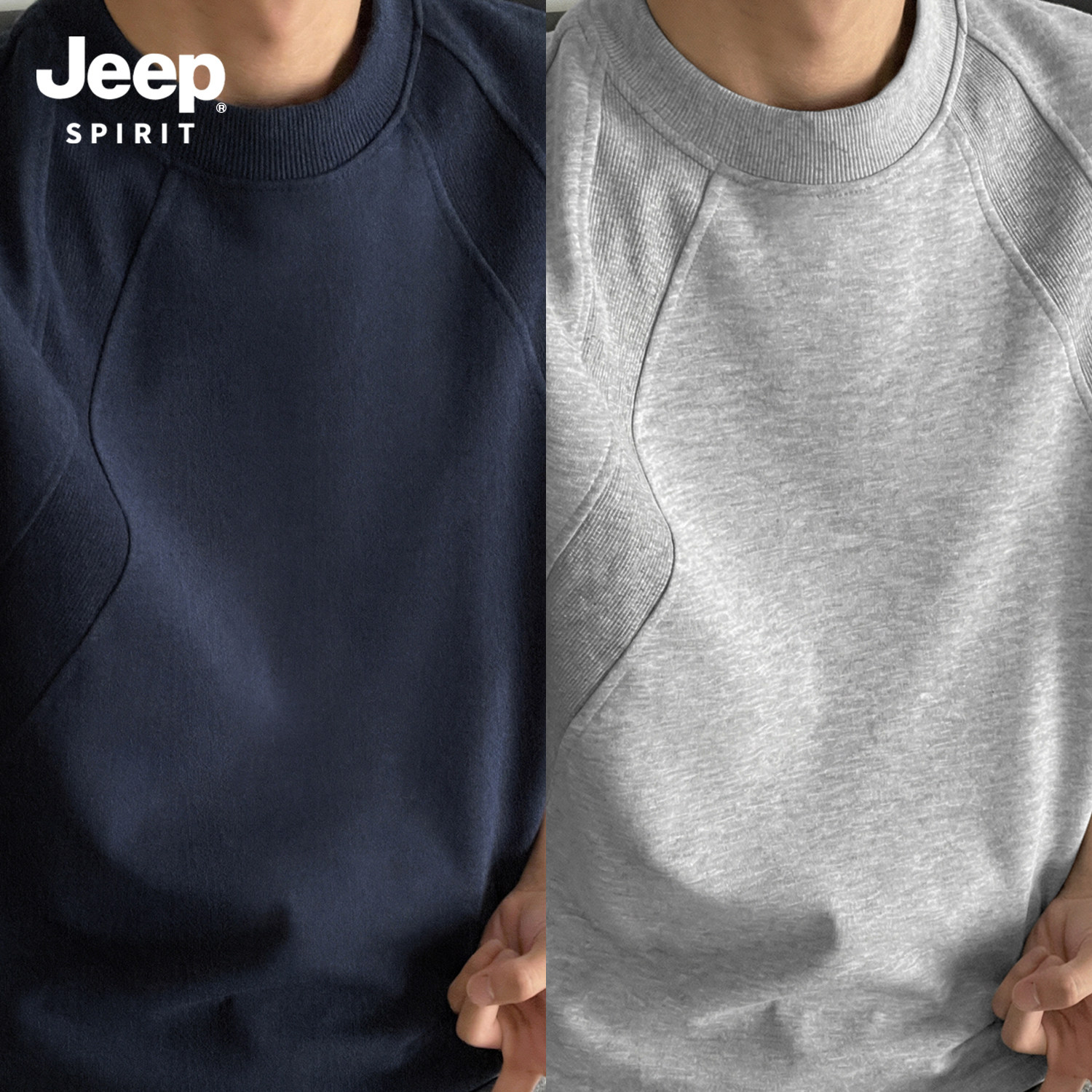 Jeep吉普重磅拼接短袖T恤夏季cleanfit设计感半袖美式宽松五分袖
