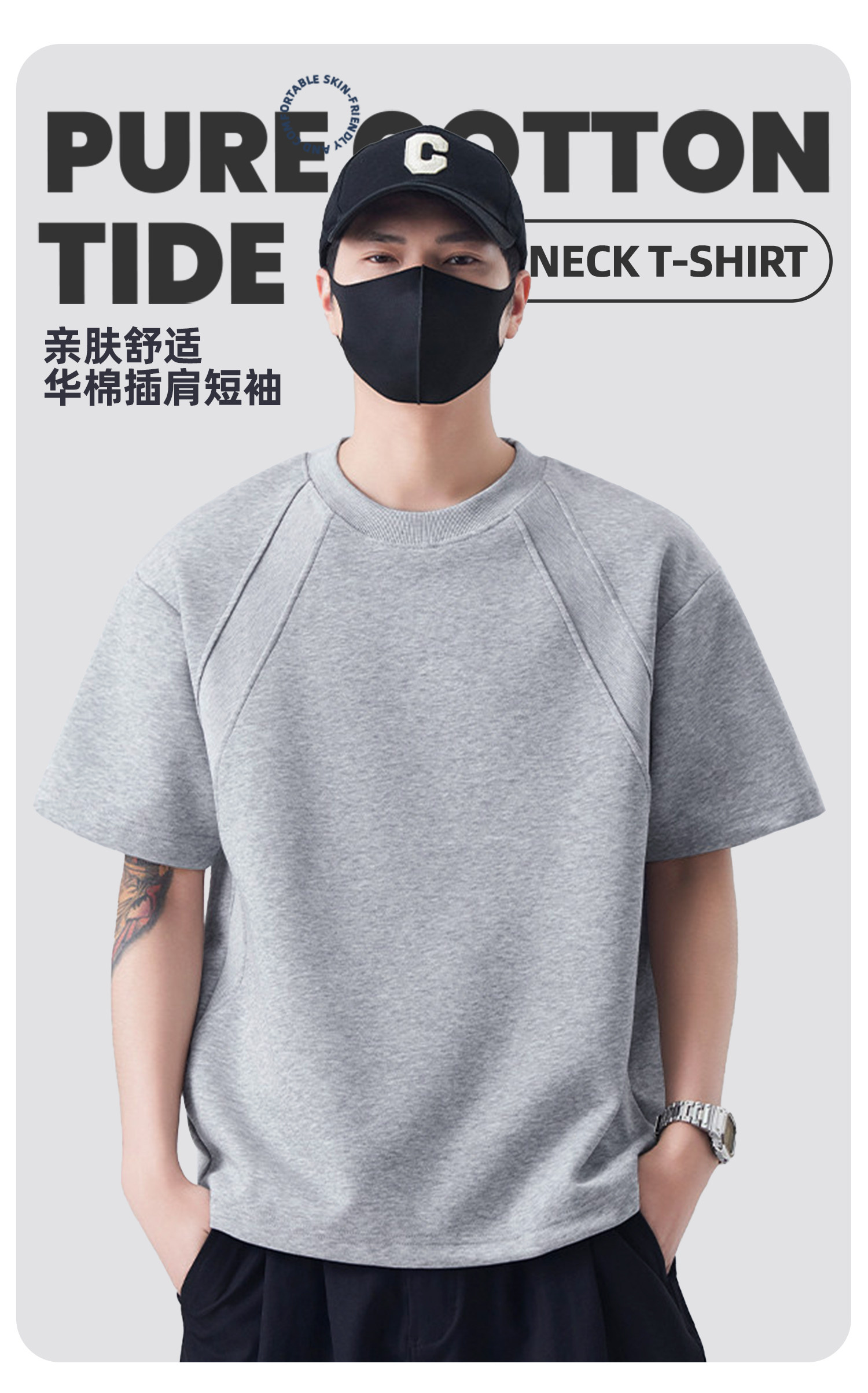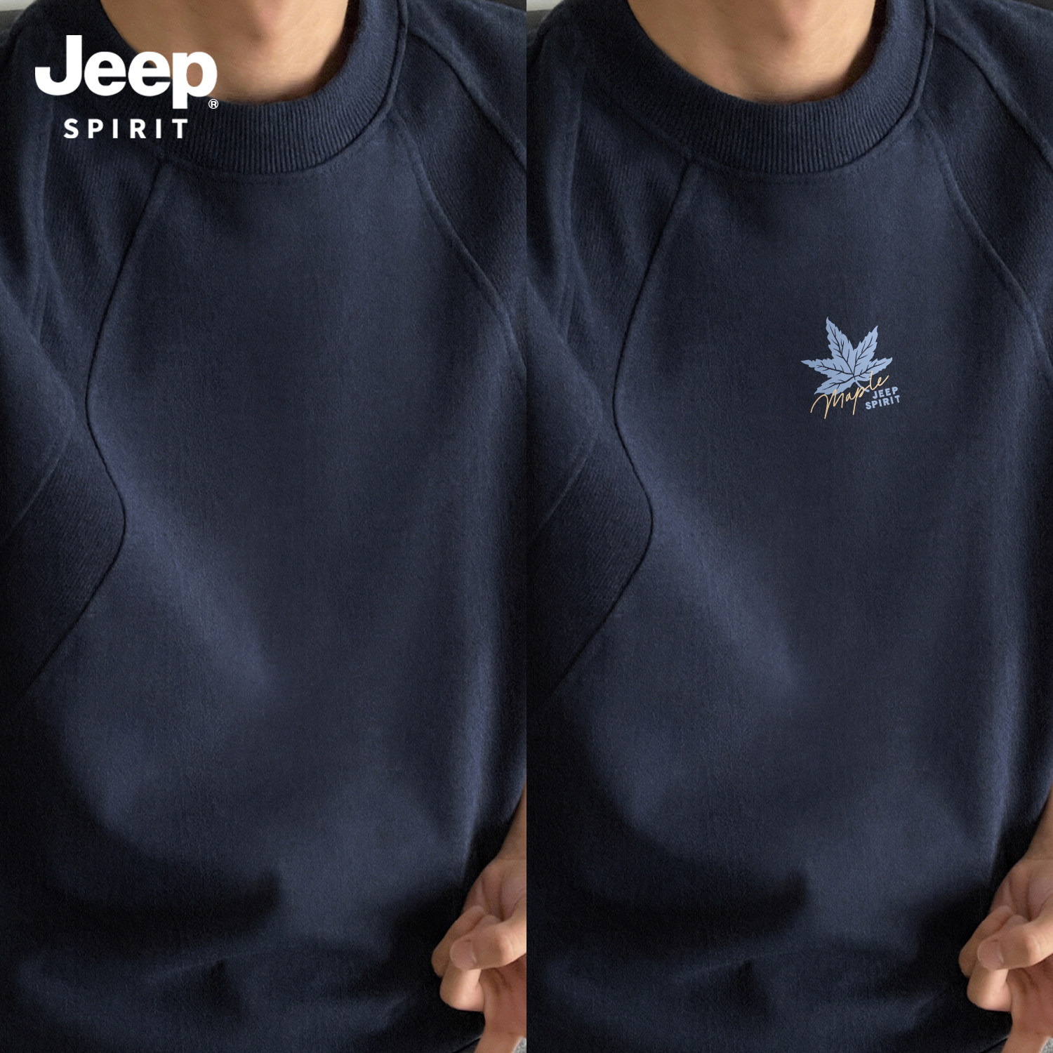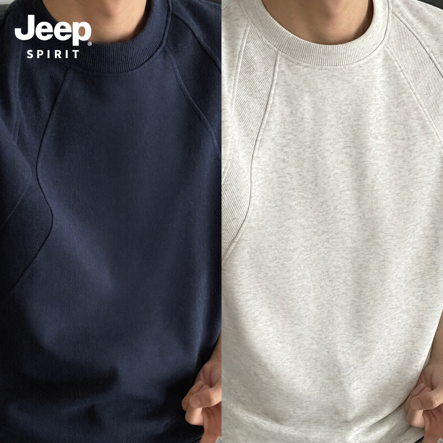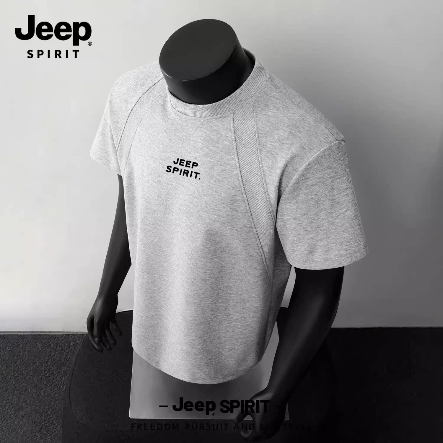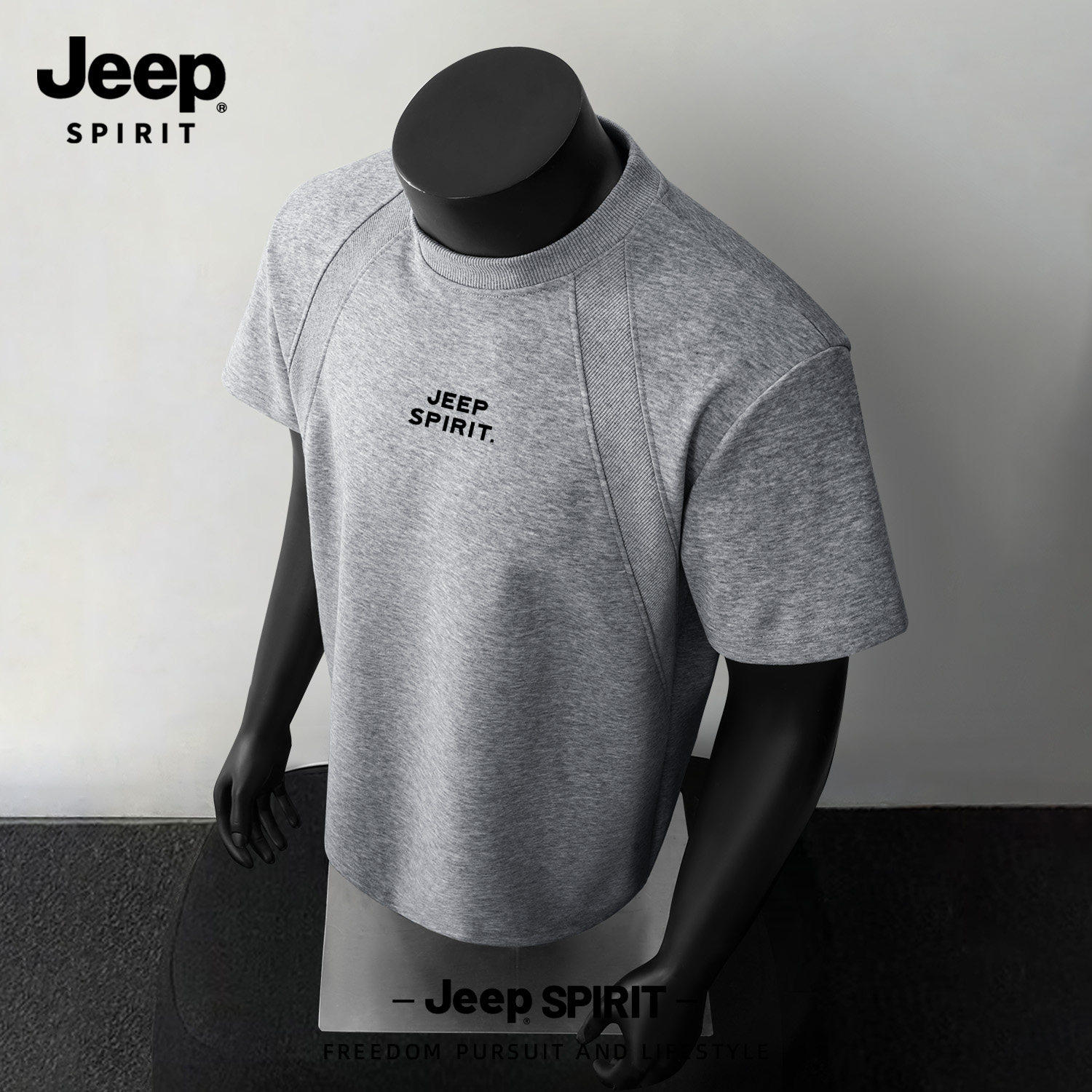 Jeep吉普重磅拼接短袖T恤夏季cleanfit设计感半袖美式宽松五分袖