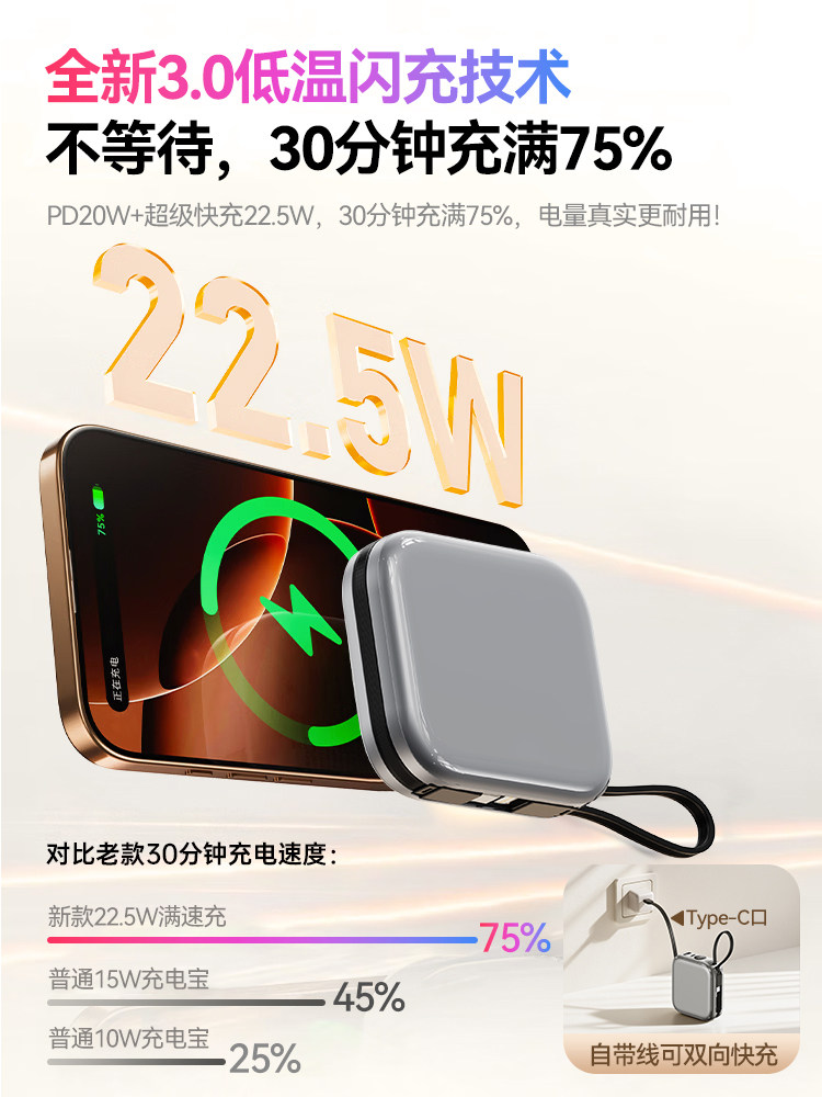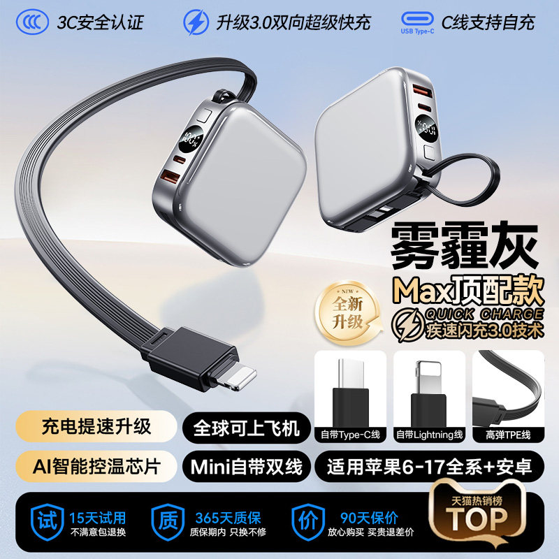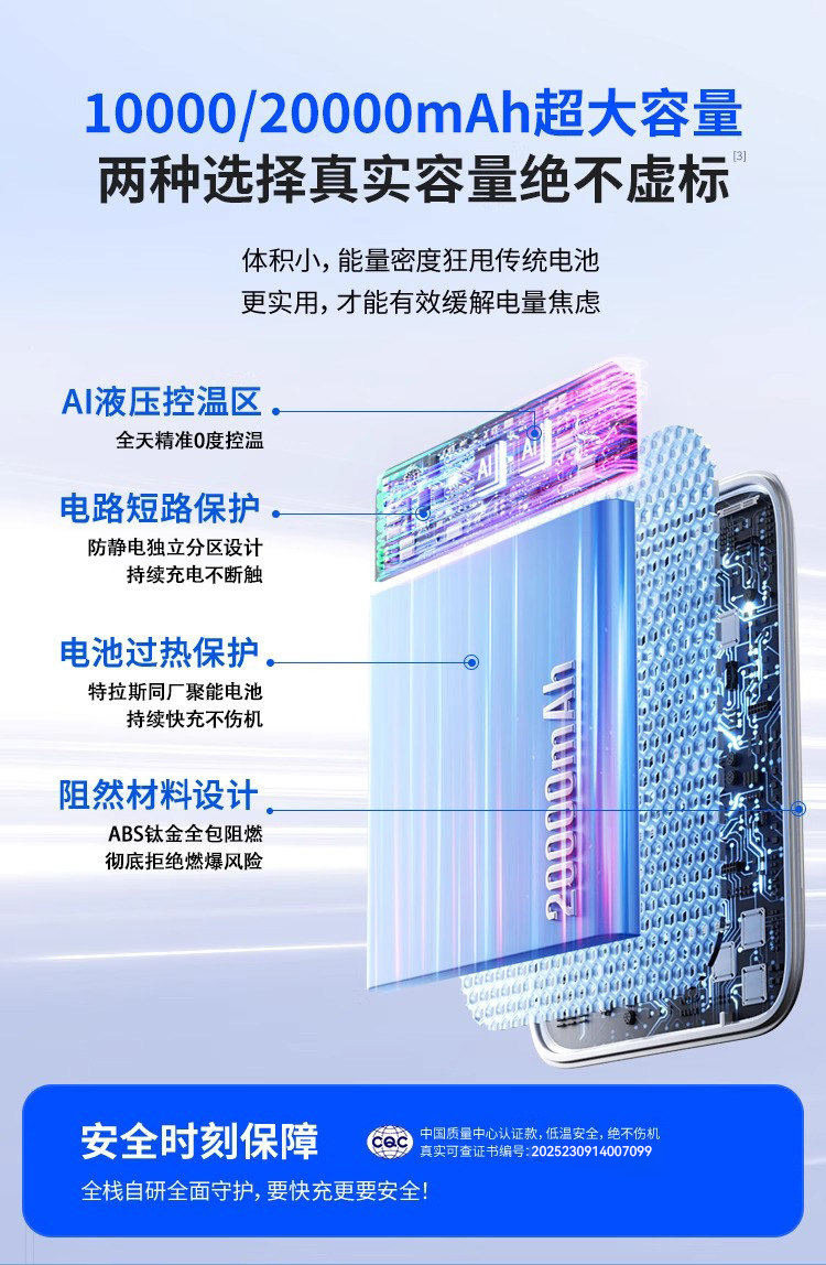 【国标3C认证充电宝】外奇2026新款可上飞机20000毫安迷你大容量移动电源适用苹果小米华为快充飞机高铁专用1