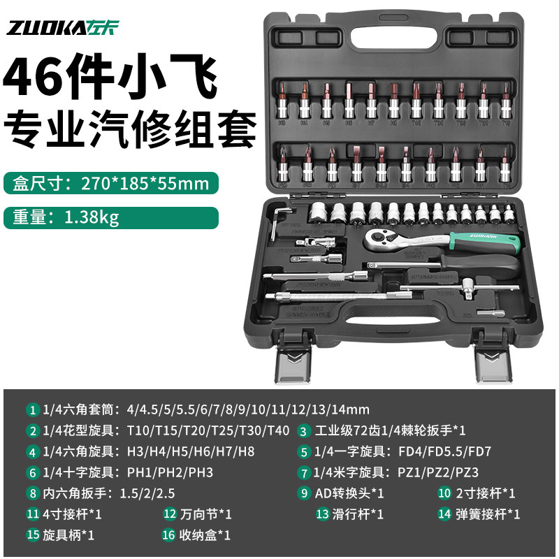 套筒组合棘轮扳手套装汽修工具修车专用小飞套装汽车维修工具全套