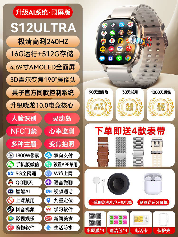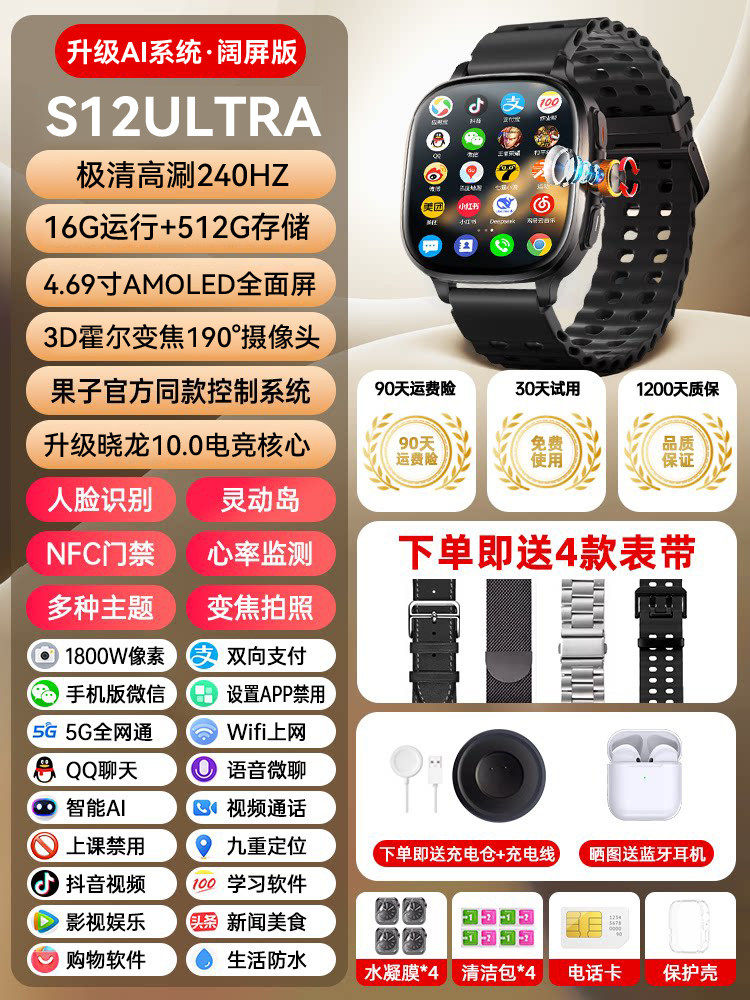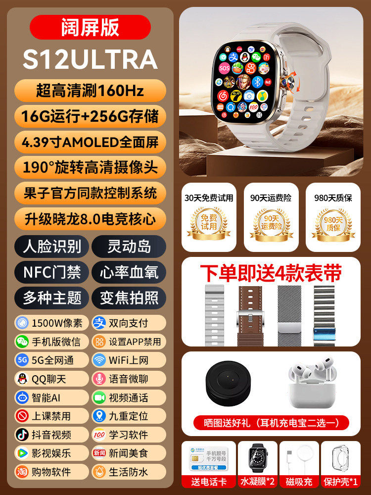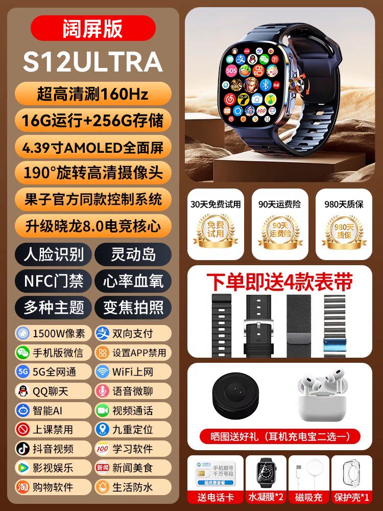 【2026新款·超大阔屏】华强北S12ultra顶配可插卡智能电话手表s11蜂窝版男女士成人初高中生专用watch官方店