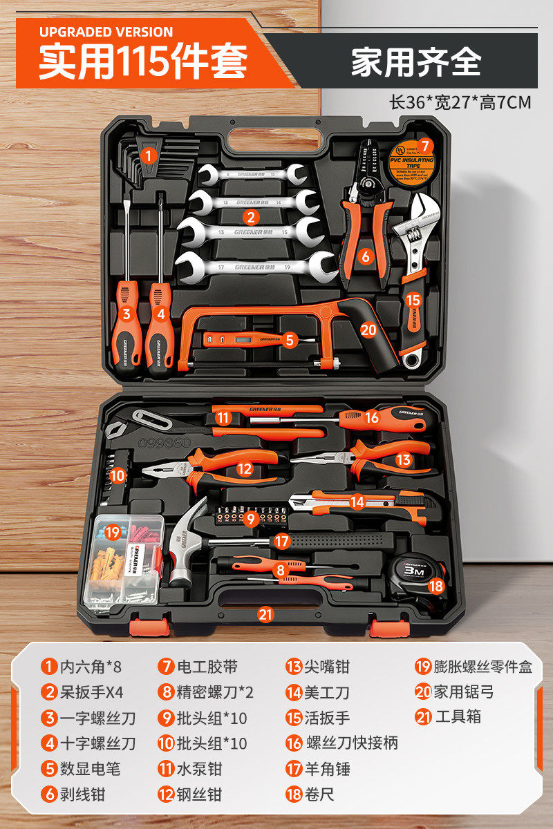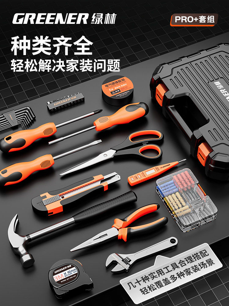 绿林家用工具套装多功能工具箱五金维修大全家庭电工全套车用组合