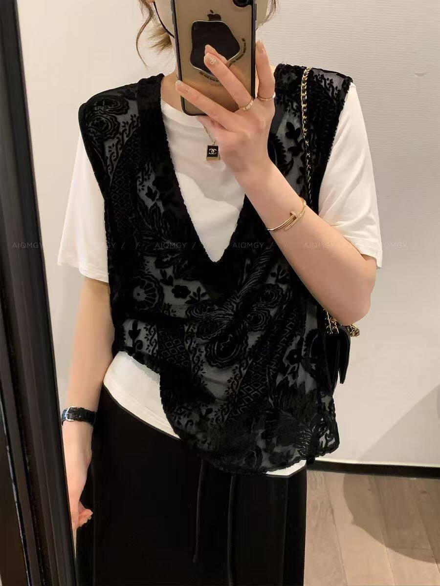 HomeProducts新中式植绒蕾丝背心外搭夏季新款时尚百搭蕾丝马甲叠穿孕妇上衣女