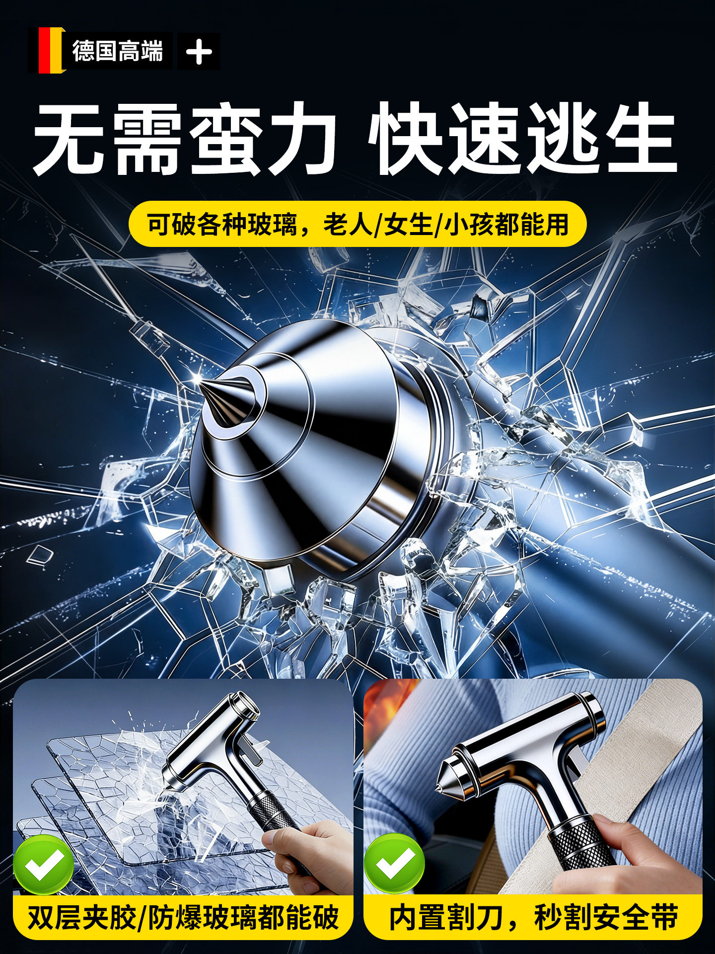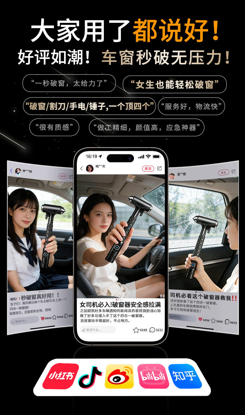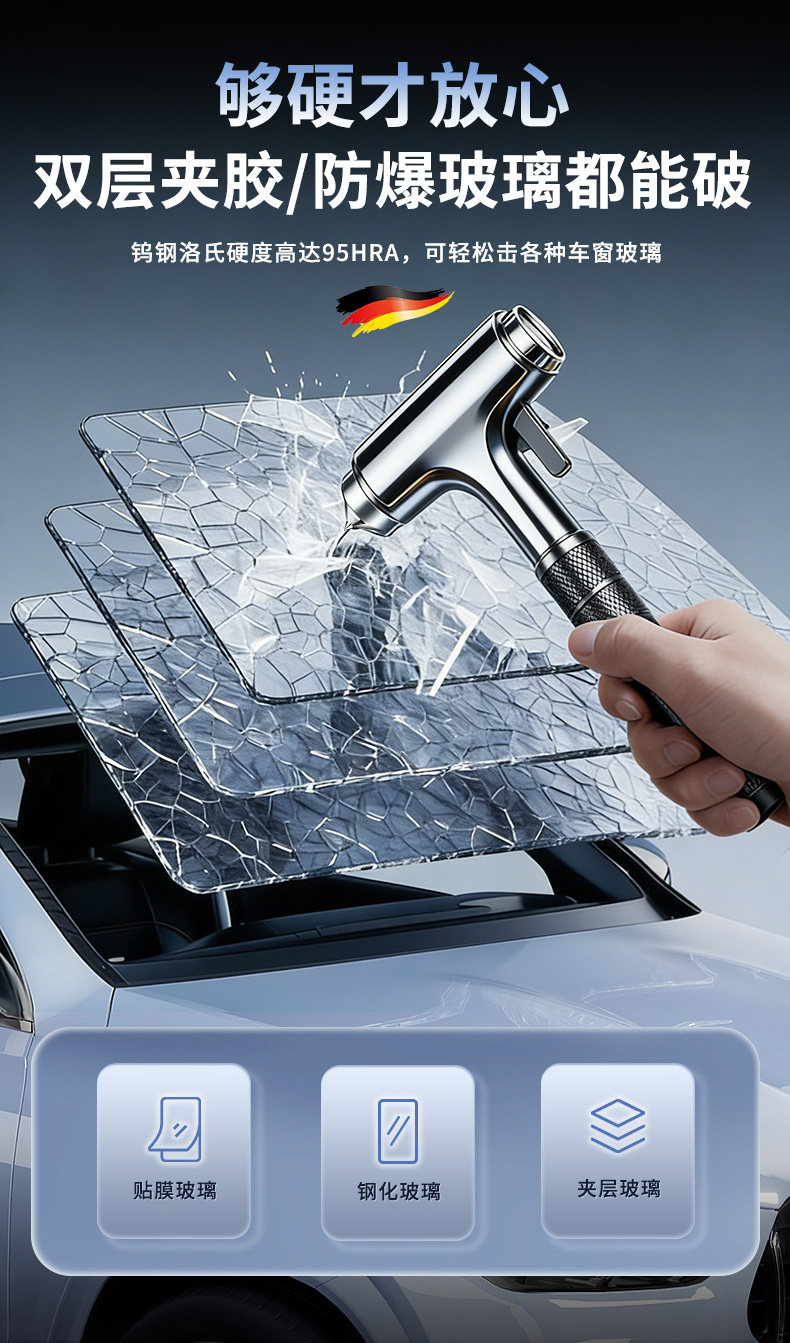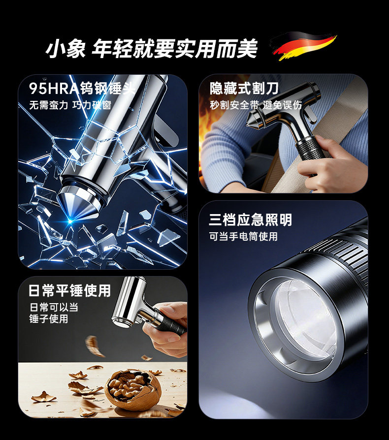 HomeProducts安全锤汽车破窗器带割刀车用逃生神器四合一车载多功能新型救生锤
