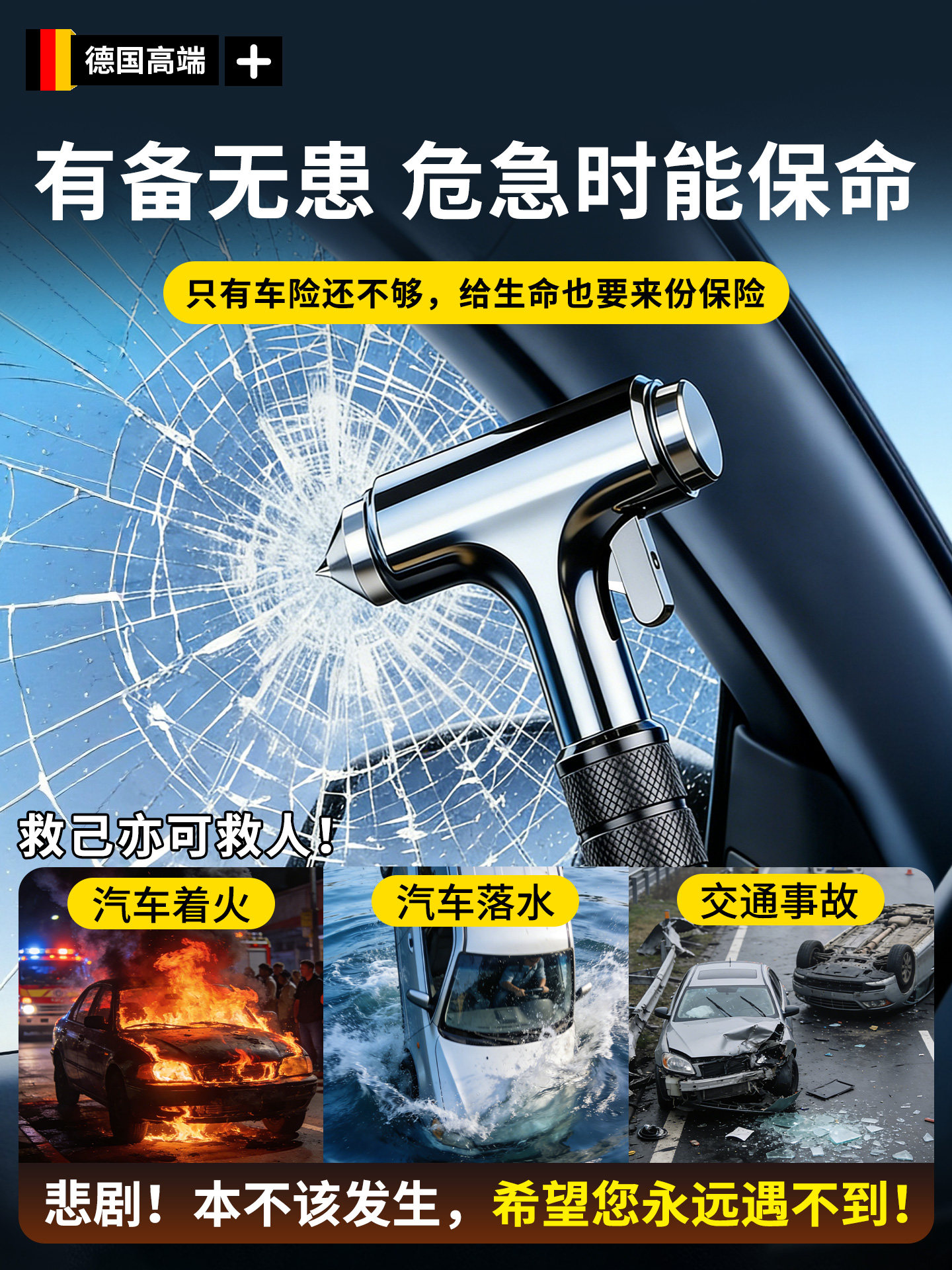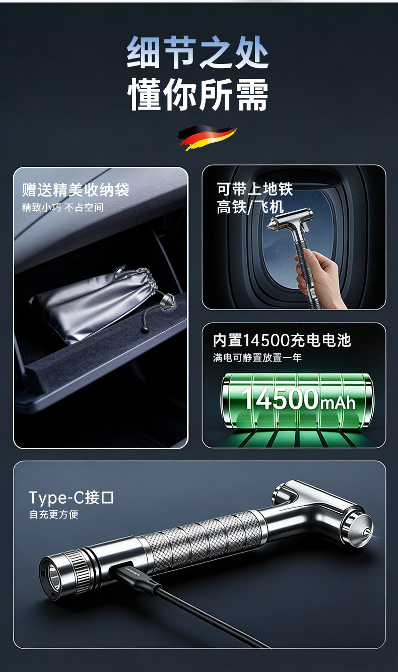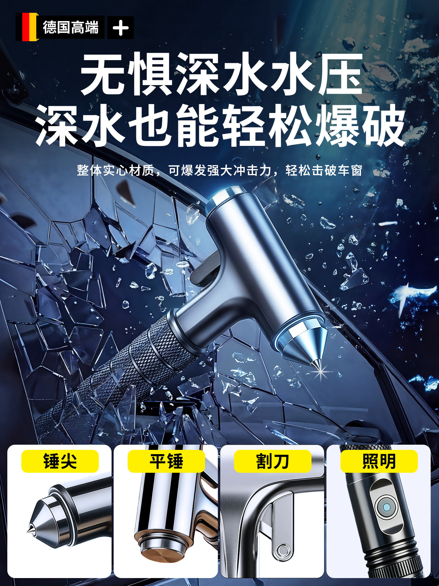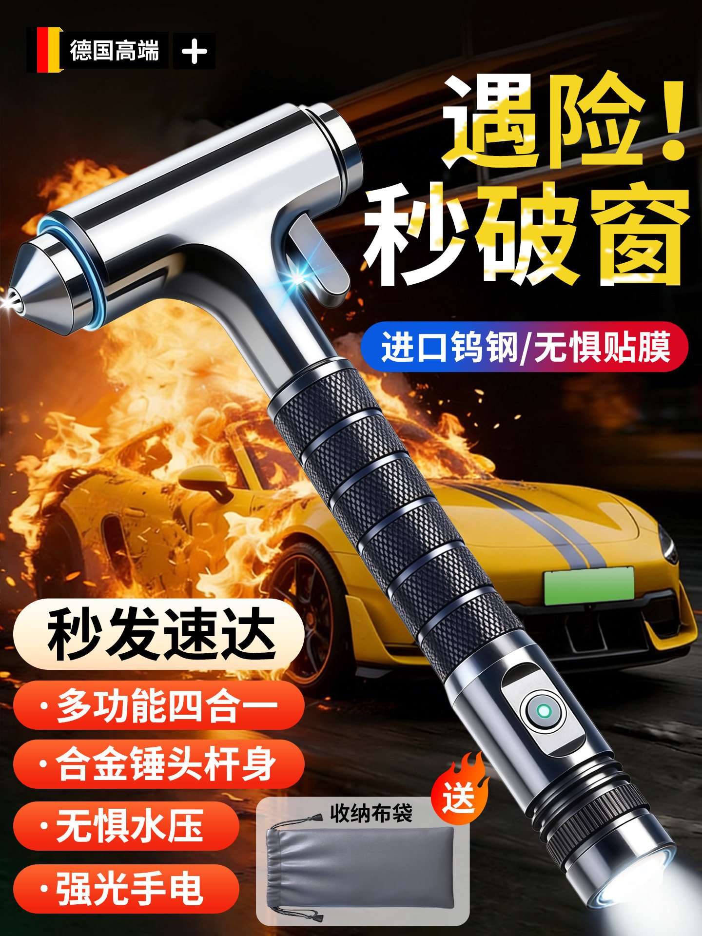 HomeProducts安全锤汽车破窗器带割刀车用逃生神器四合一车载多功能新型救生锤