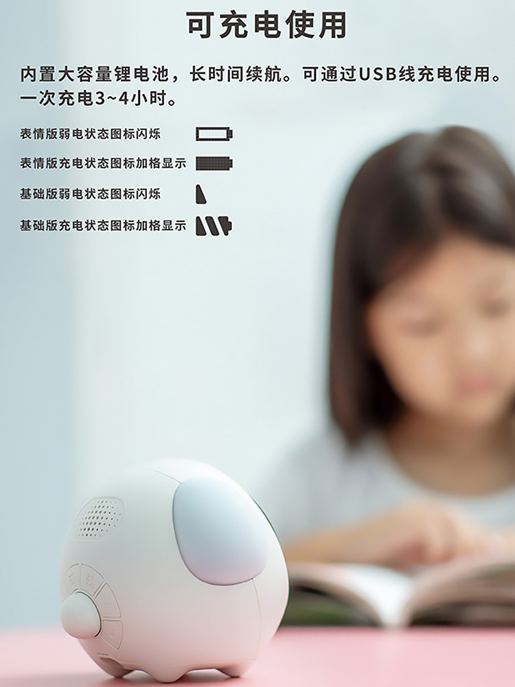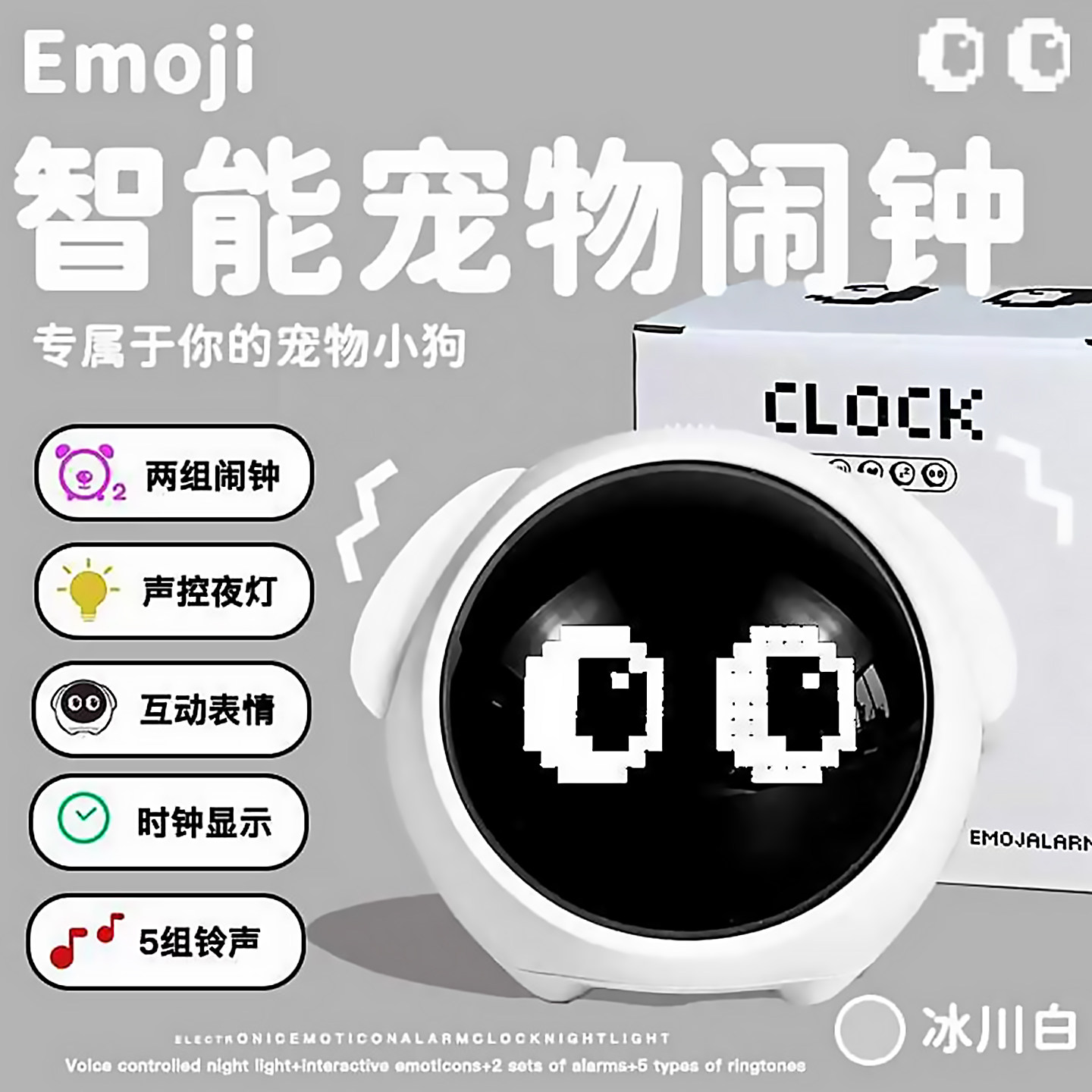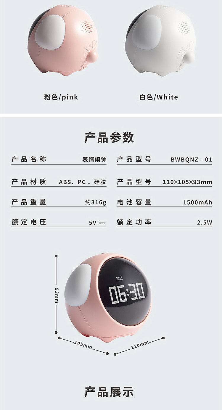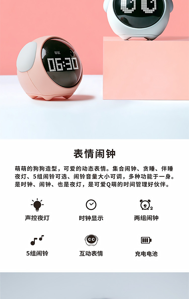 白色宠物闹钟-声控夜灯-互动表情-两组闹钟