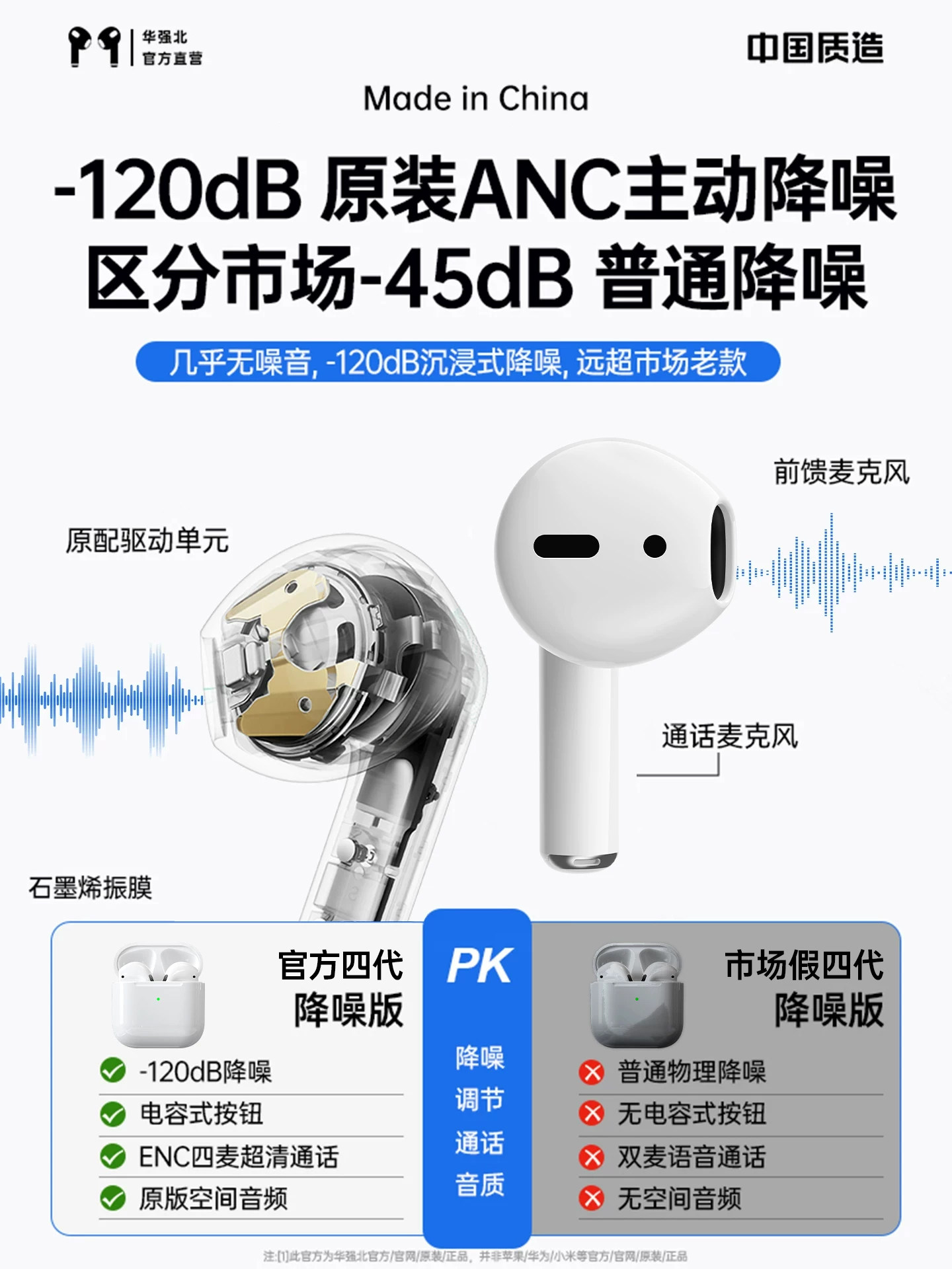 华强北蓝牙耳机七代主动降噪四代2026新款真无线运动原装工厂直营