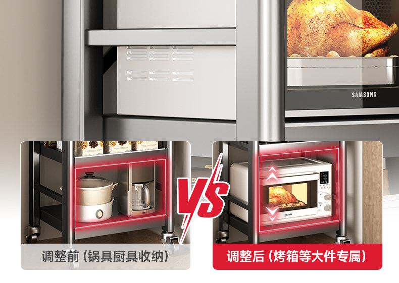美厨物语厨房置物架落地多层夹缝家用烤箱微波炉多功能储物收纳架