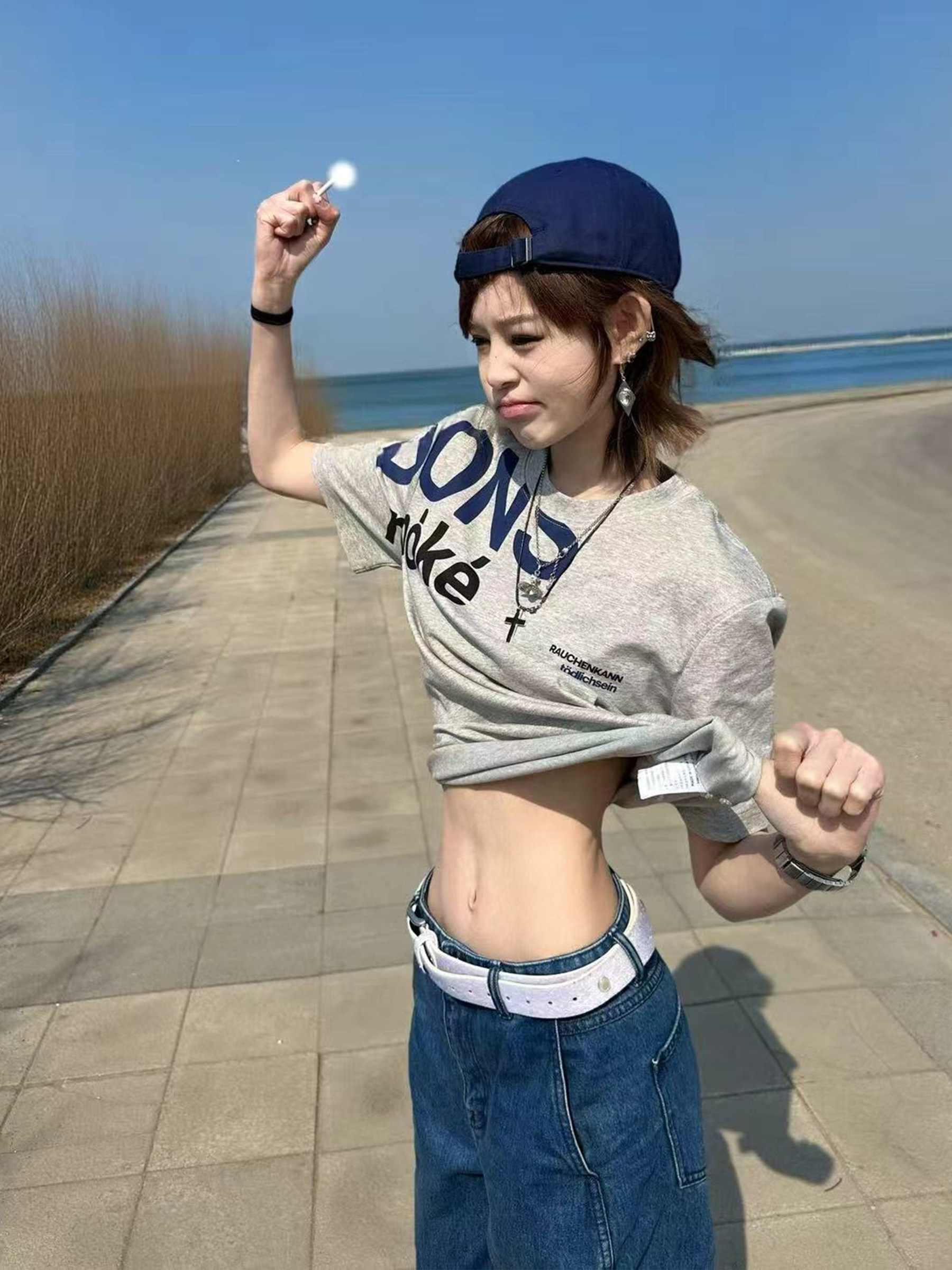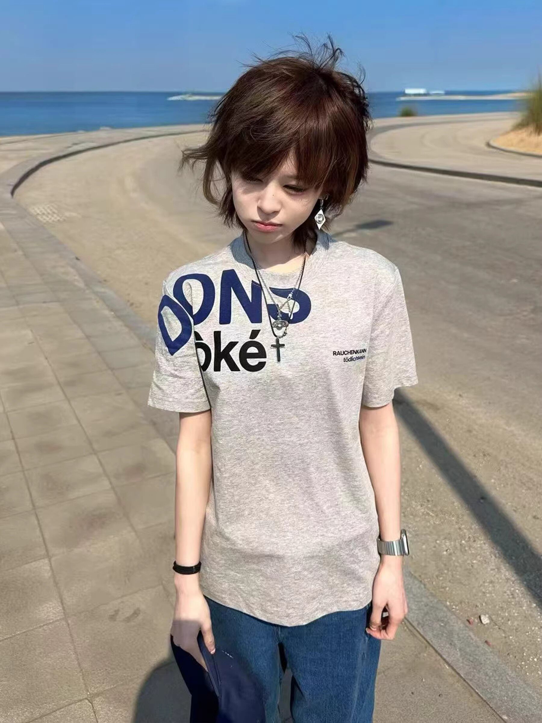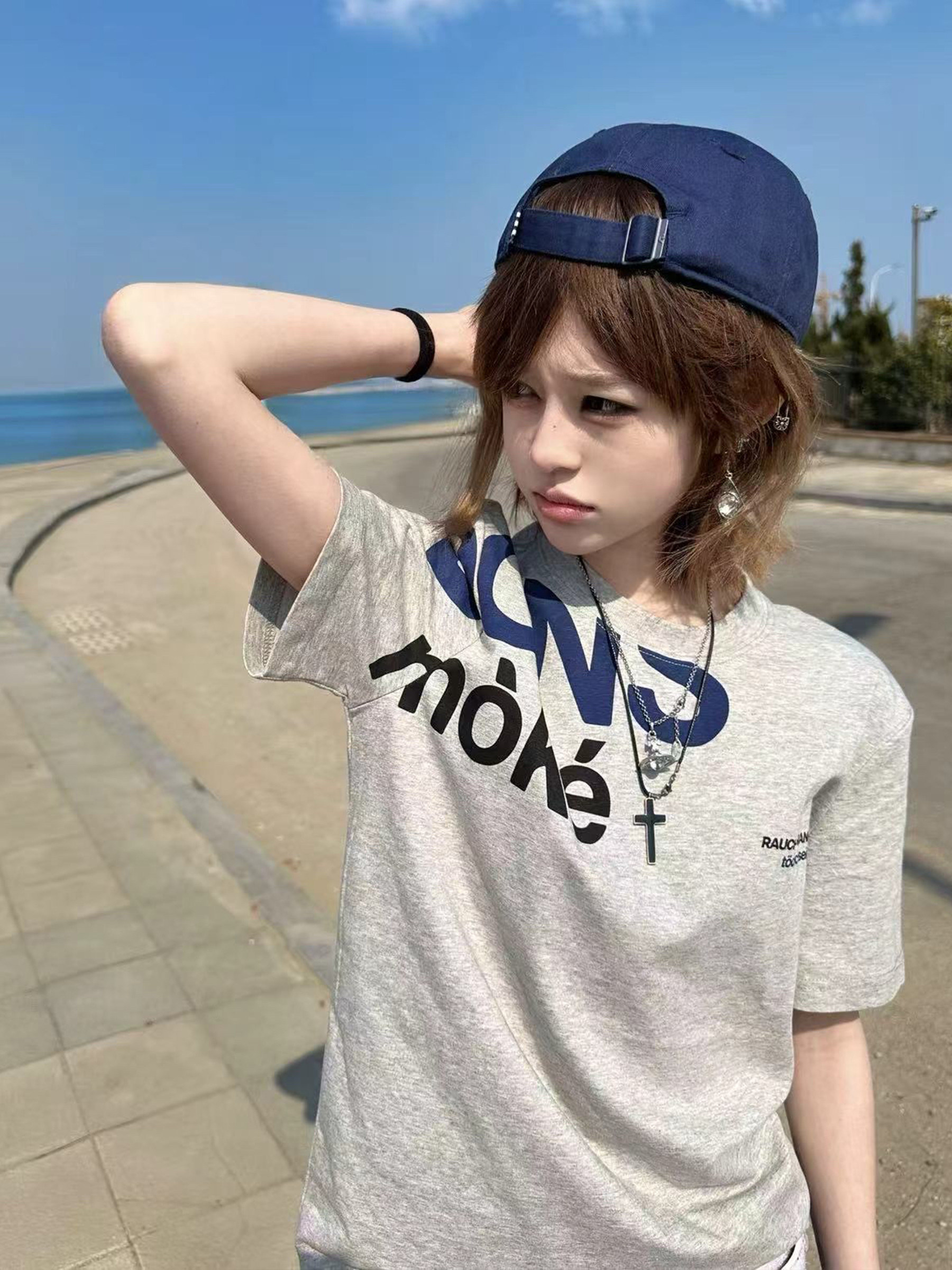 美式韩系字母印花正肩短袖t恤女款夏季宽松休闲百搭运动灰色上衣