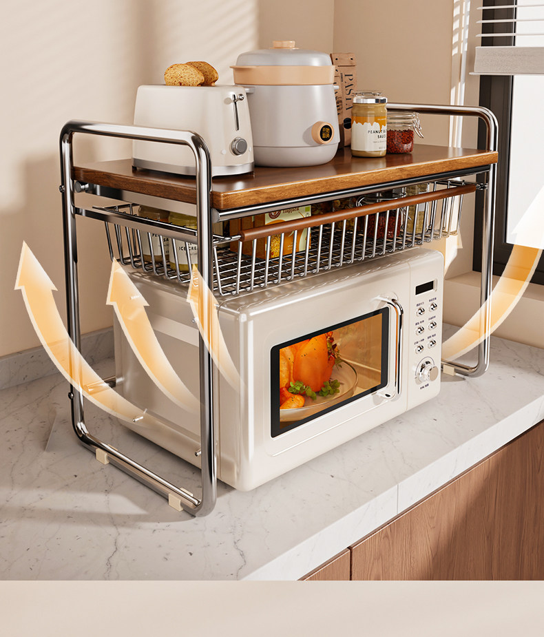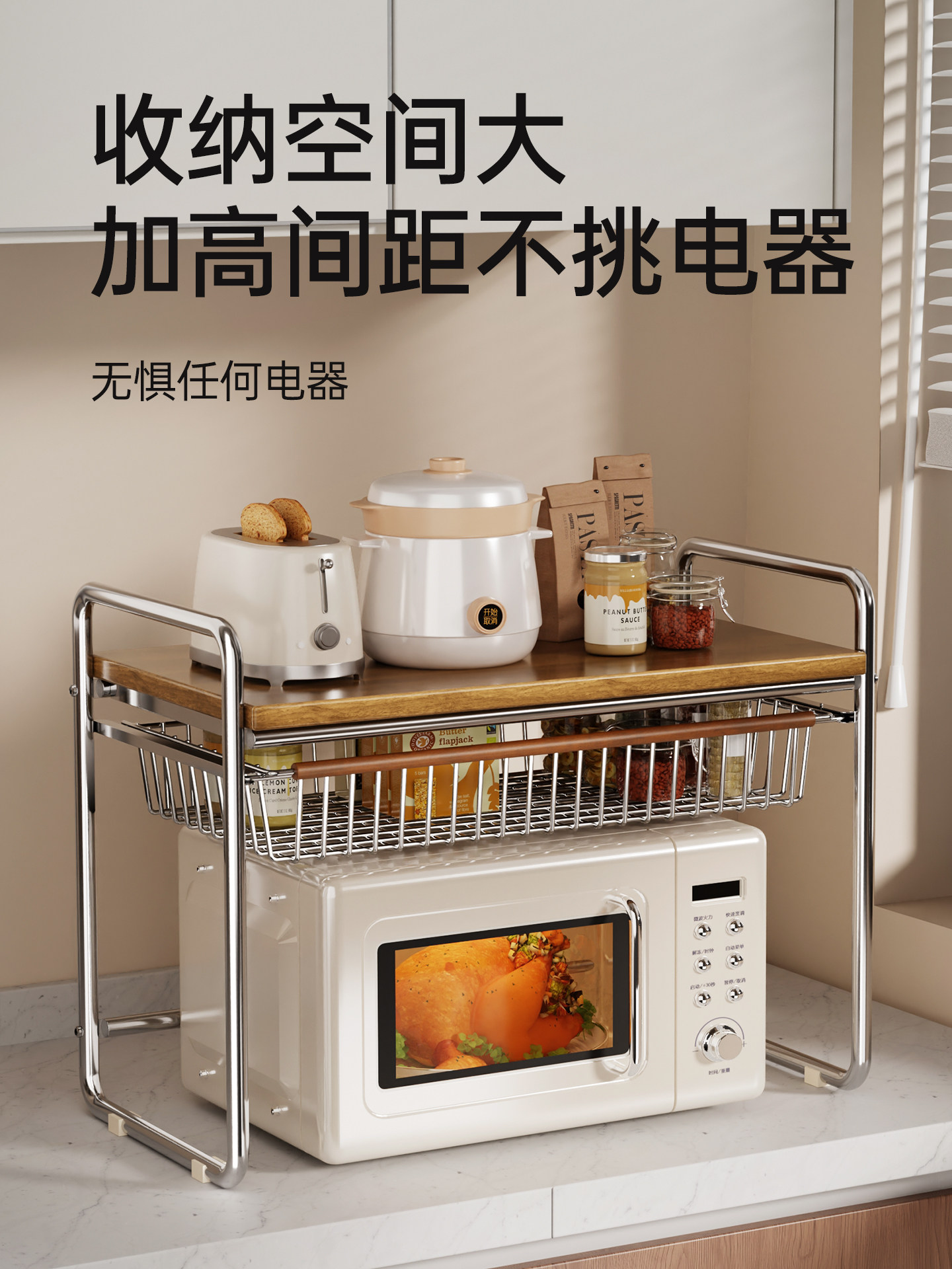 中古风厨房微波炉置物架台面烤箱支架多功能抽拉式电饭煲收纳架子