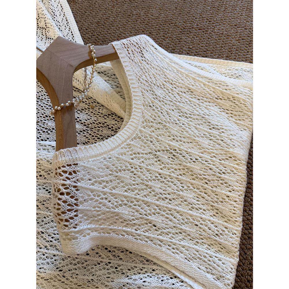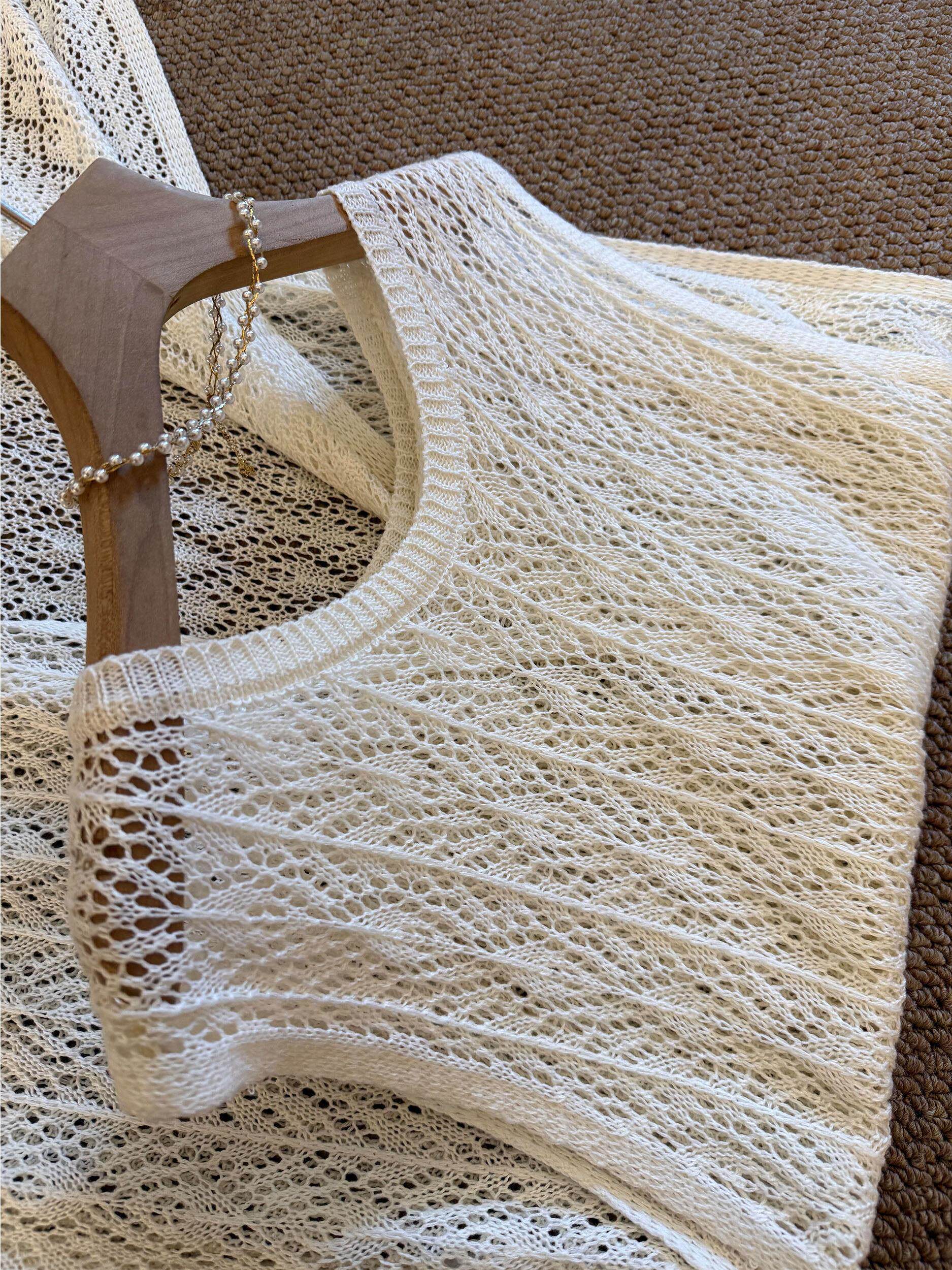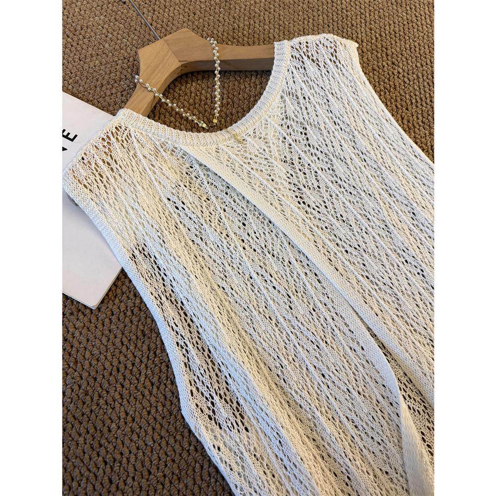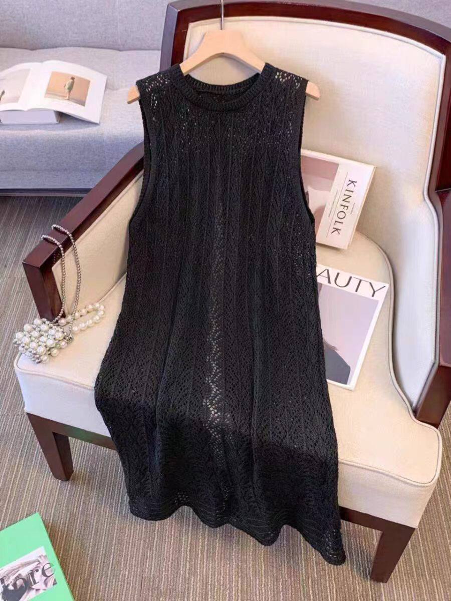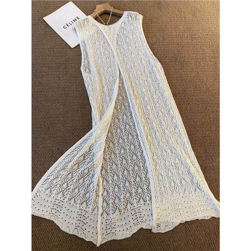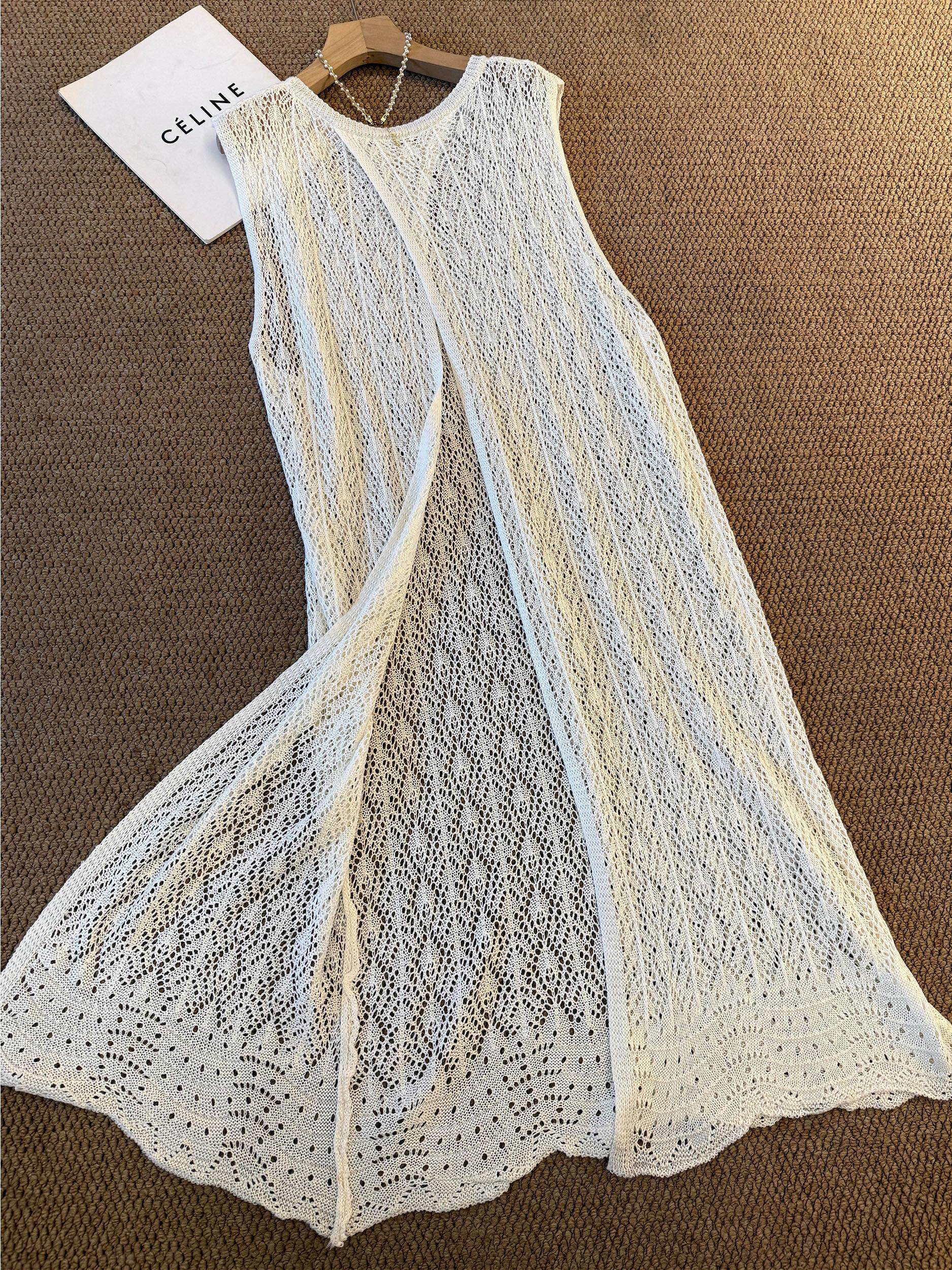 度假风韩系镂空钩花针织背心连衣裙女2026夏季新款无袖叠穿长罩衫
