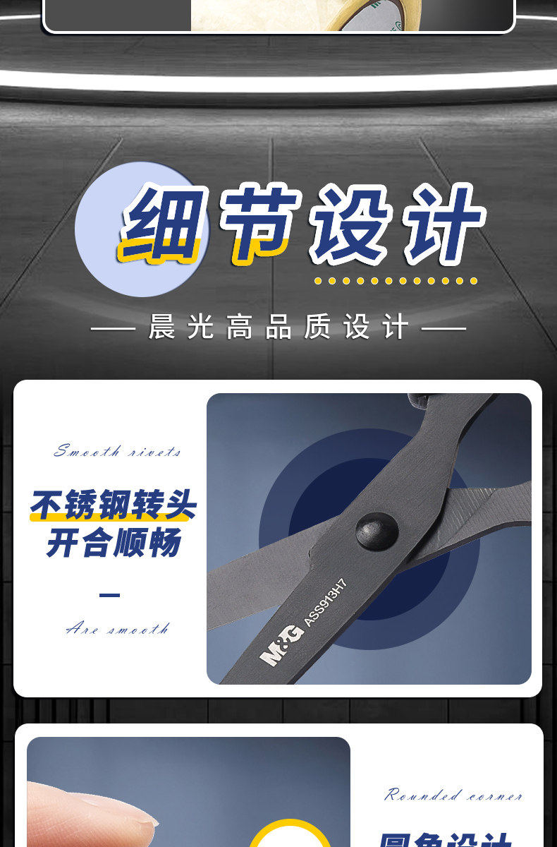 HomeProducts晨光黑刃剪刀宿舍用学生不锈钢家用剪子高颜值小号儿童剪刀安全手工小型办公用品拆快递剪刀美工剪办公用品