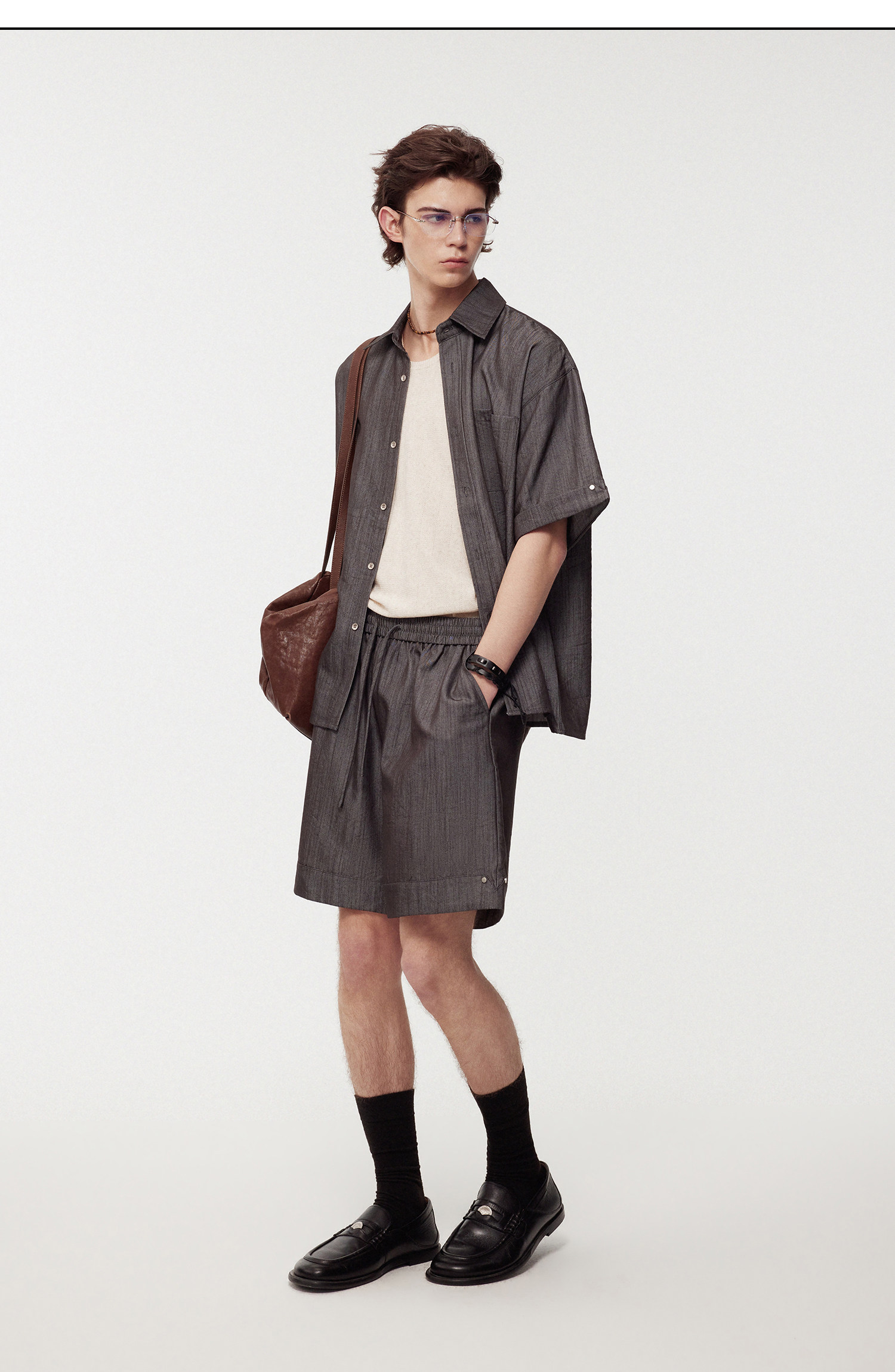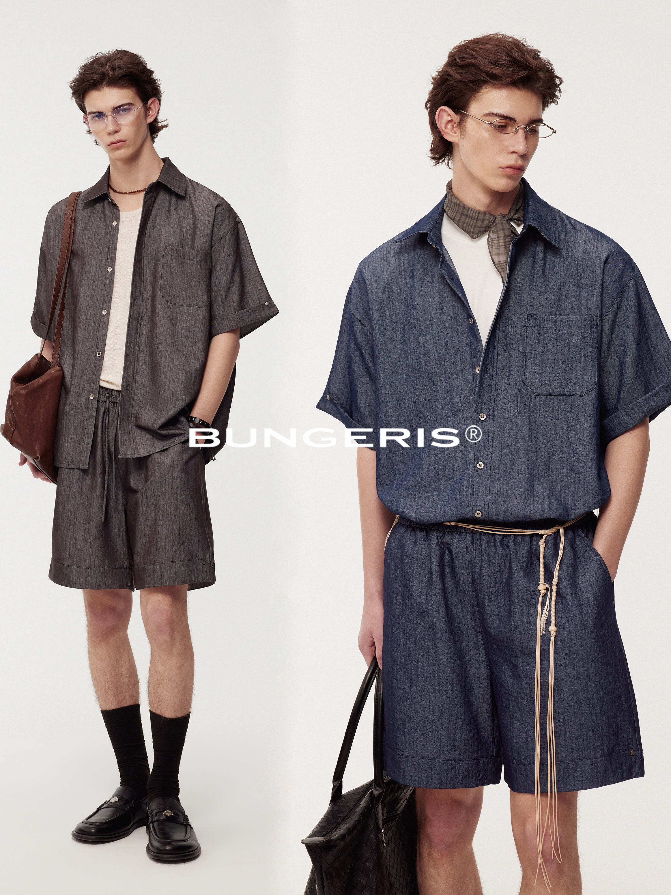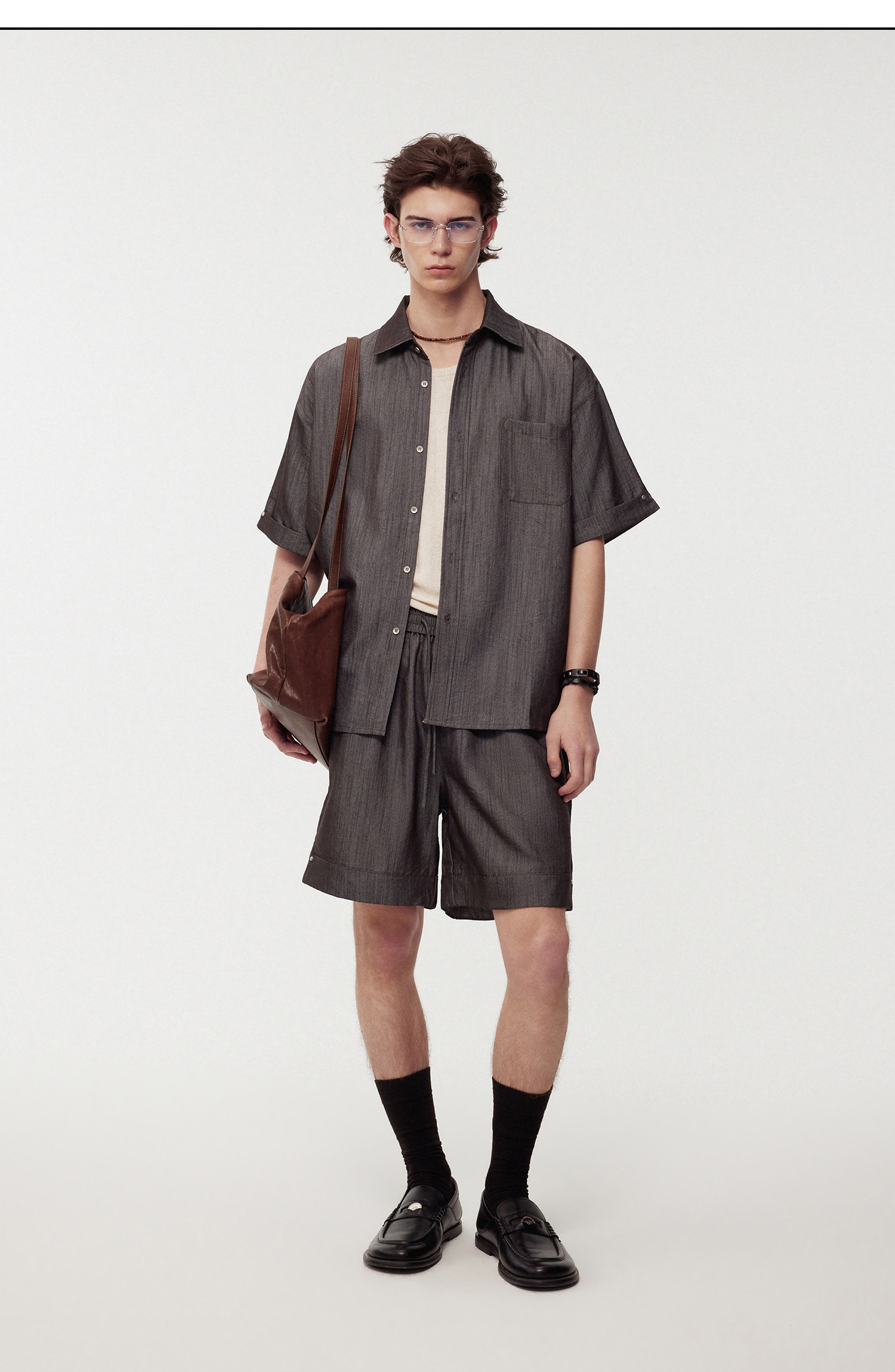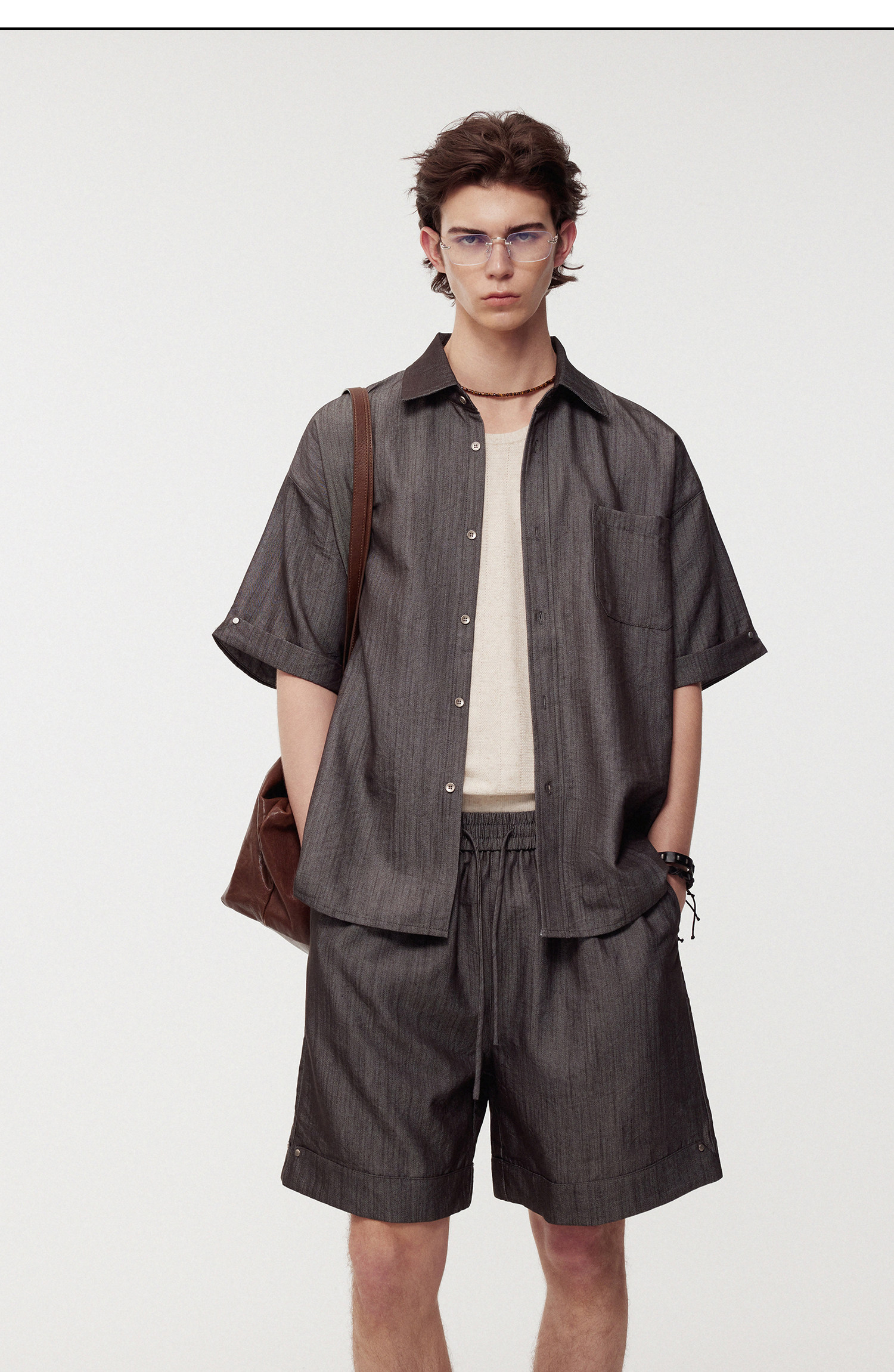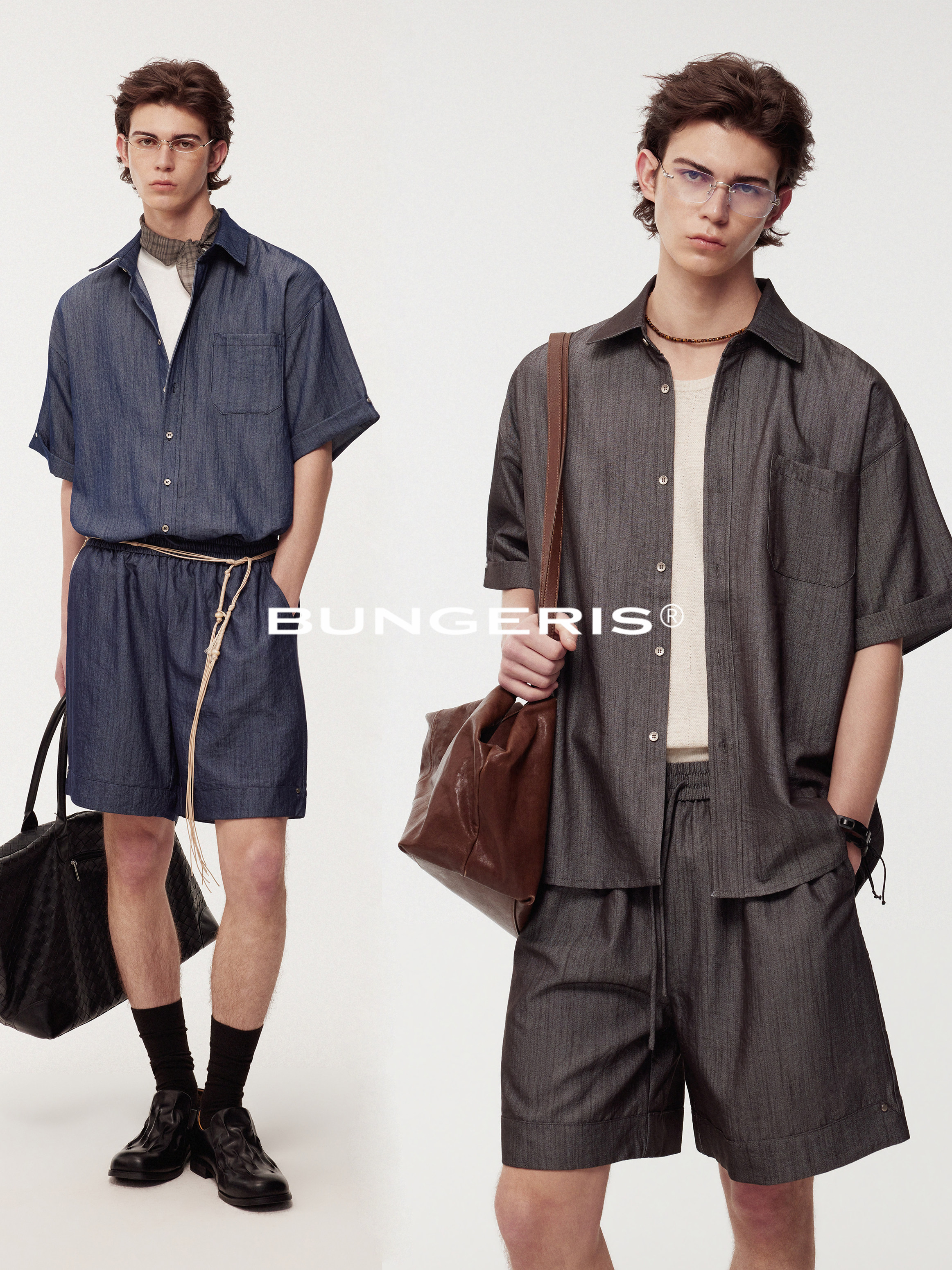 BUNGERIS 「轻奢松弛」老钱风肌理感都市男套装夏季短裤宽松衬衫